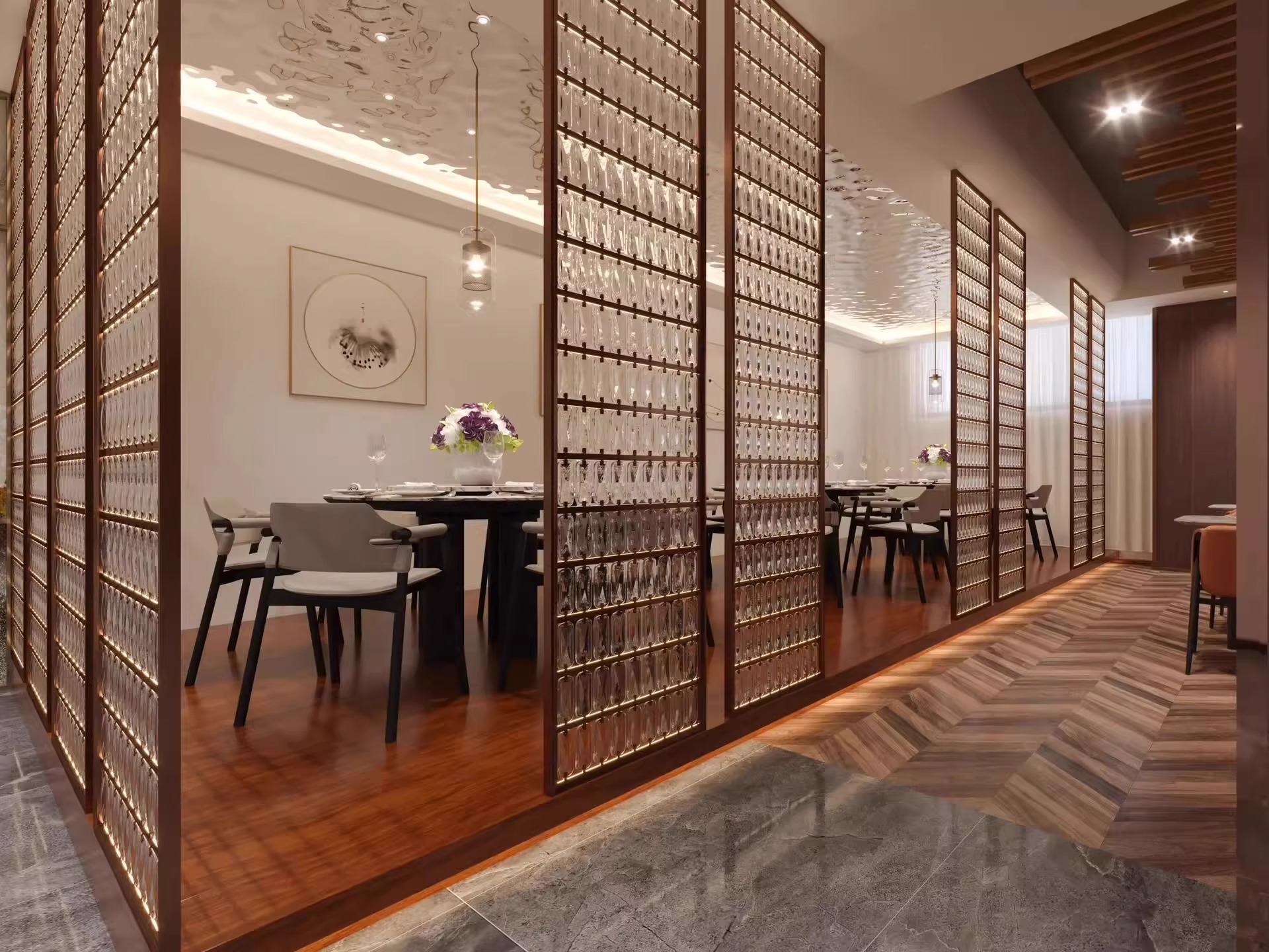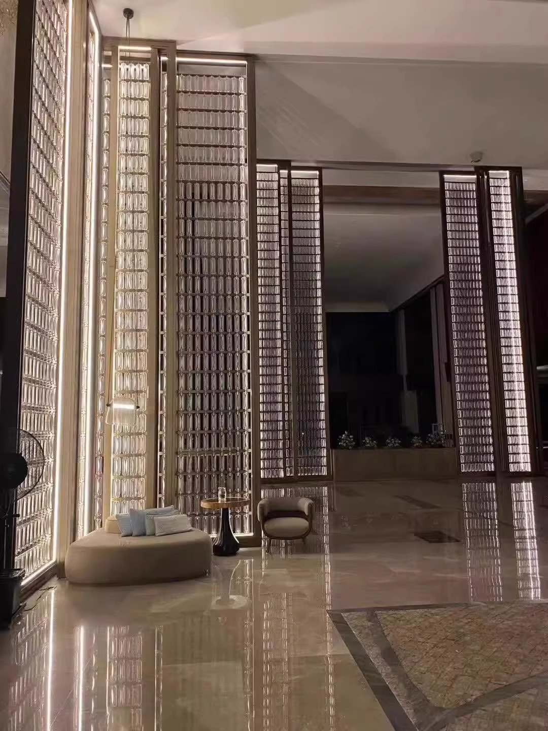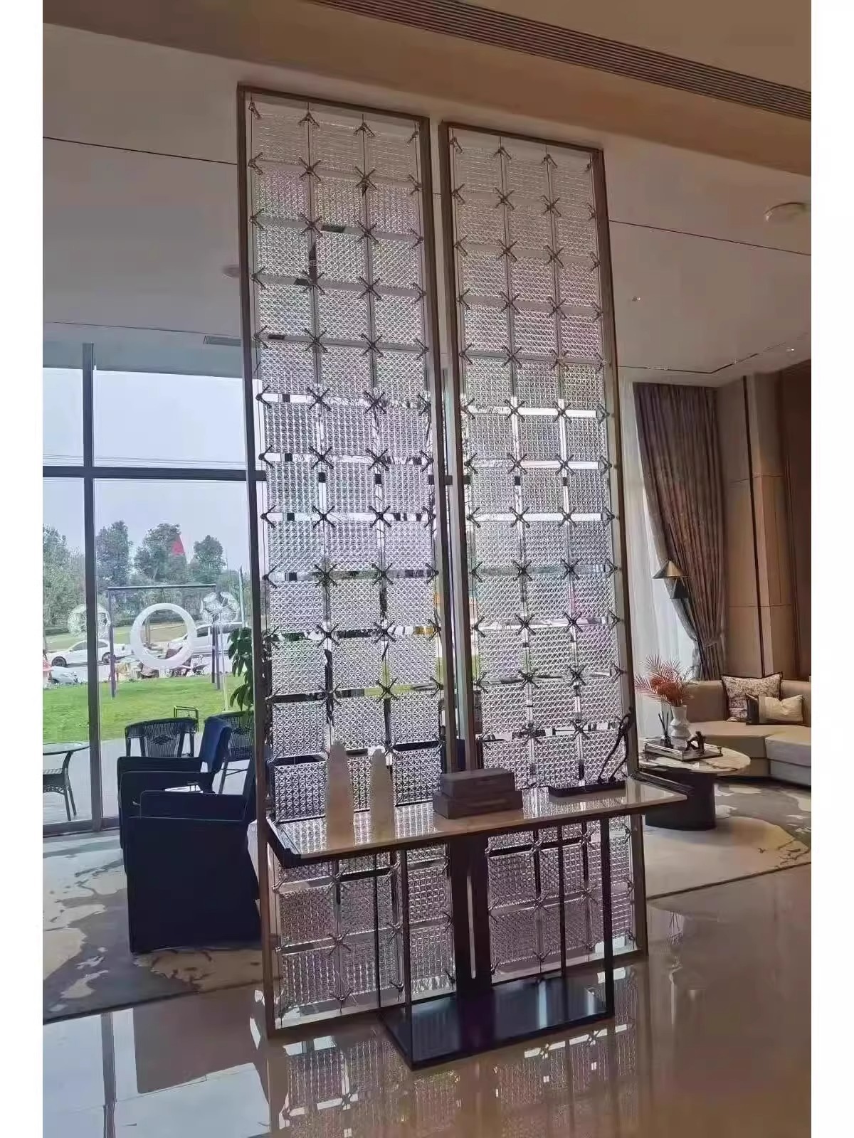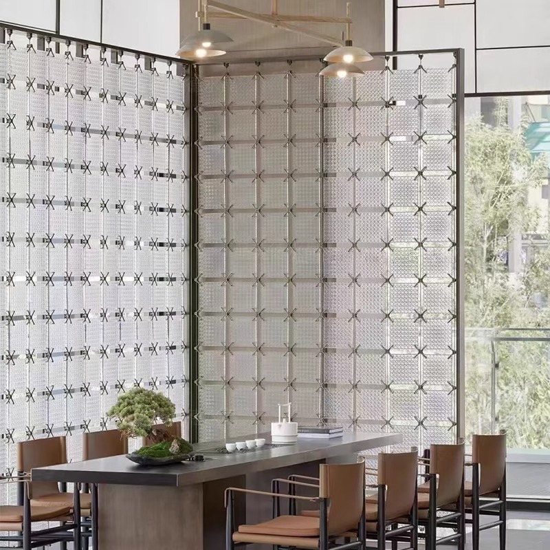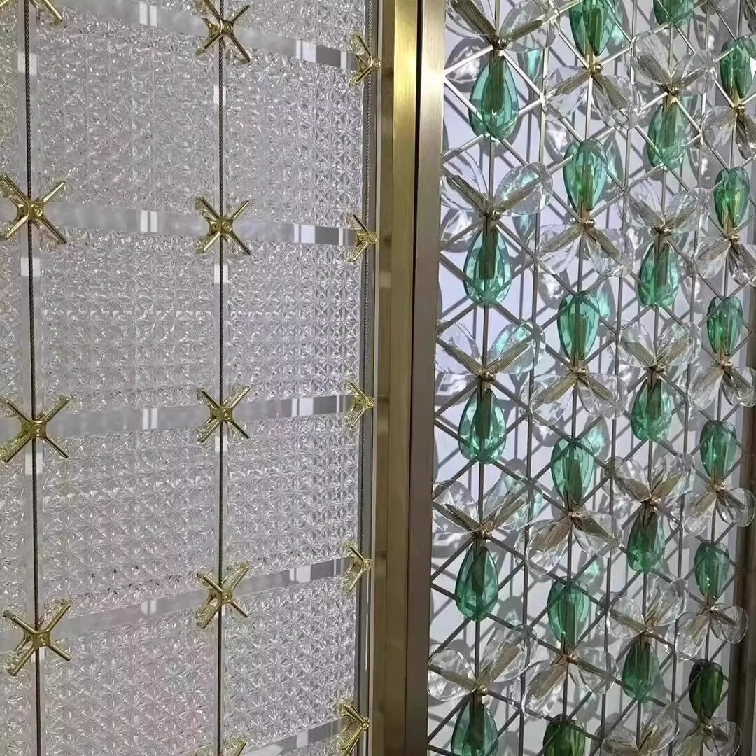 Высококачественная акриловая защитная перегородка, стеклянный кирпич, современный хрустальный стеклянный подвесной экран из нержавеющей стали, экран для ресторана отеля