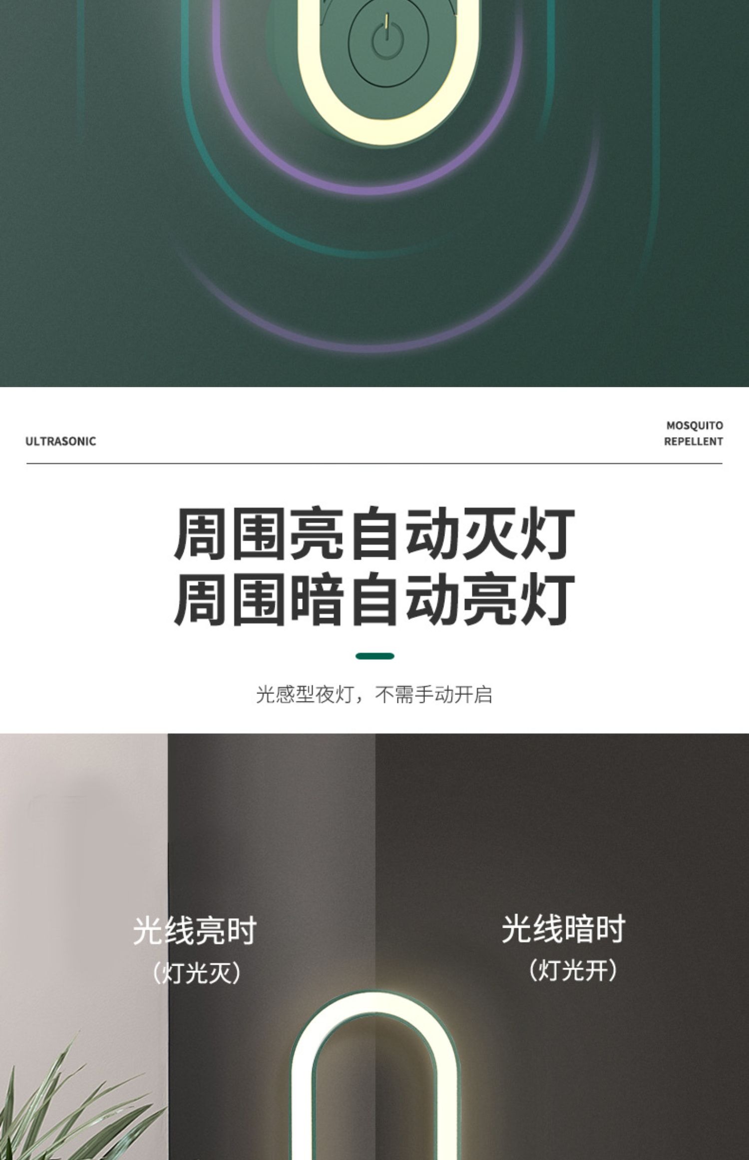 Модернизированная модель — Forest Green [Звуковой репеллент от комаров + светочувствительный ночник для сна + интеллектуальное преобразование частоты] Случайный цвет