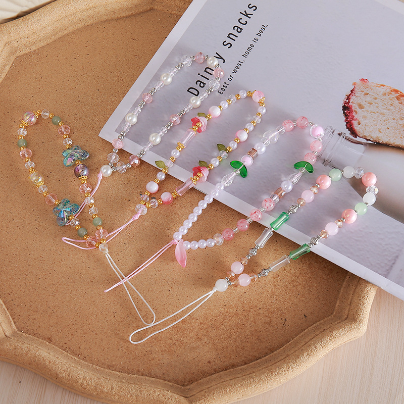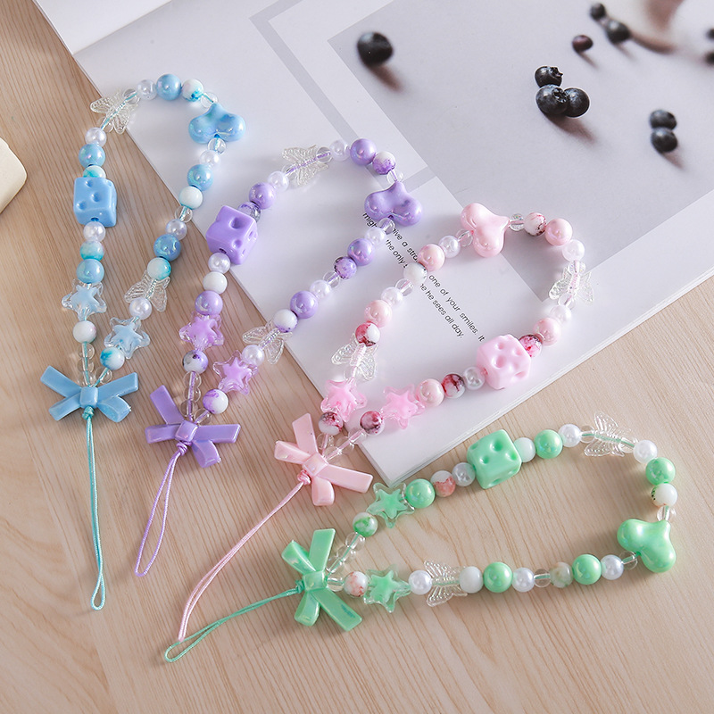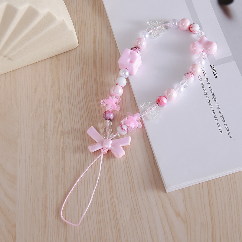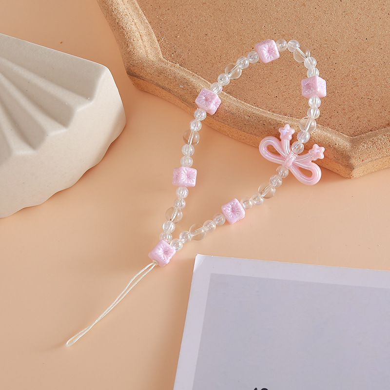 Новый бант из бисера, цепочка для мобильного телефона, чехол для мобильного телефона, подвеска, ремешок на запястье, предотвращающий падение и потерю, короткий ремешок для мобильного телефона