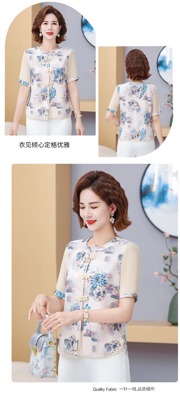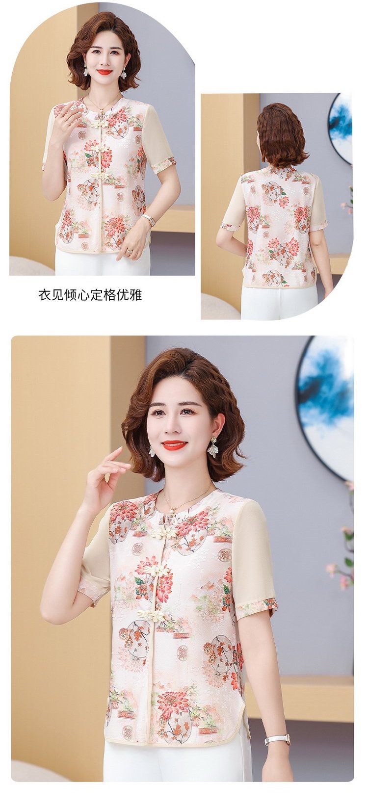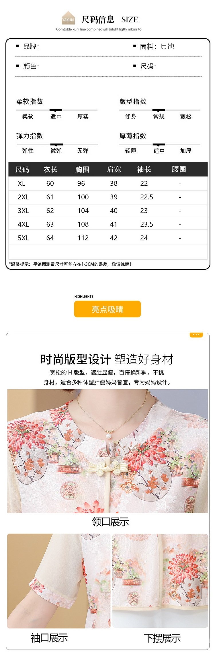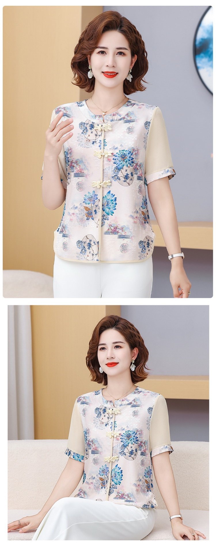 Летние топы 2025 года для мам, новые блузки с лацканами, цветочные шифоновые рубашки, короткие рукава для женщин среднего и пожилого возраста, топы в западном стиле