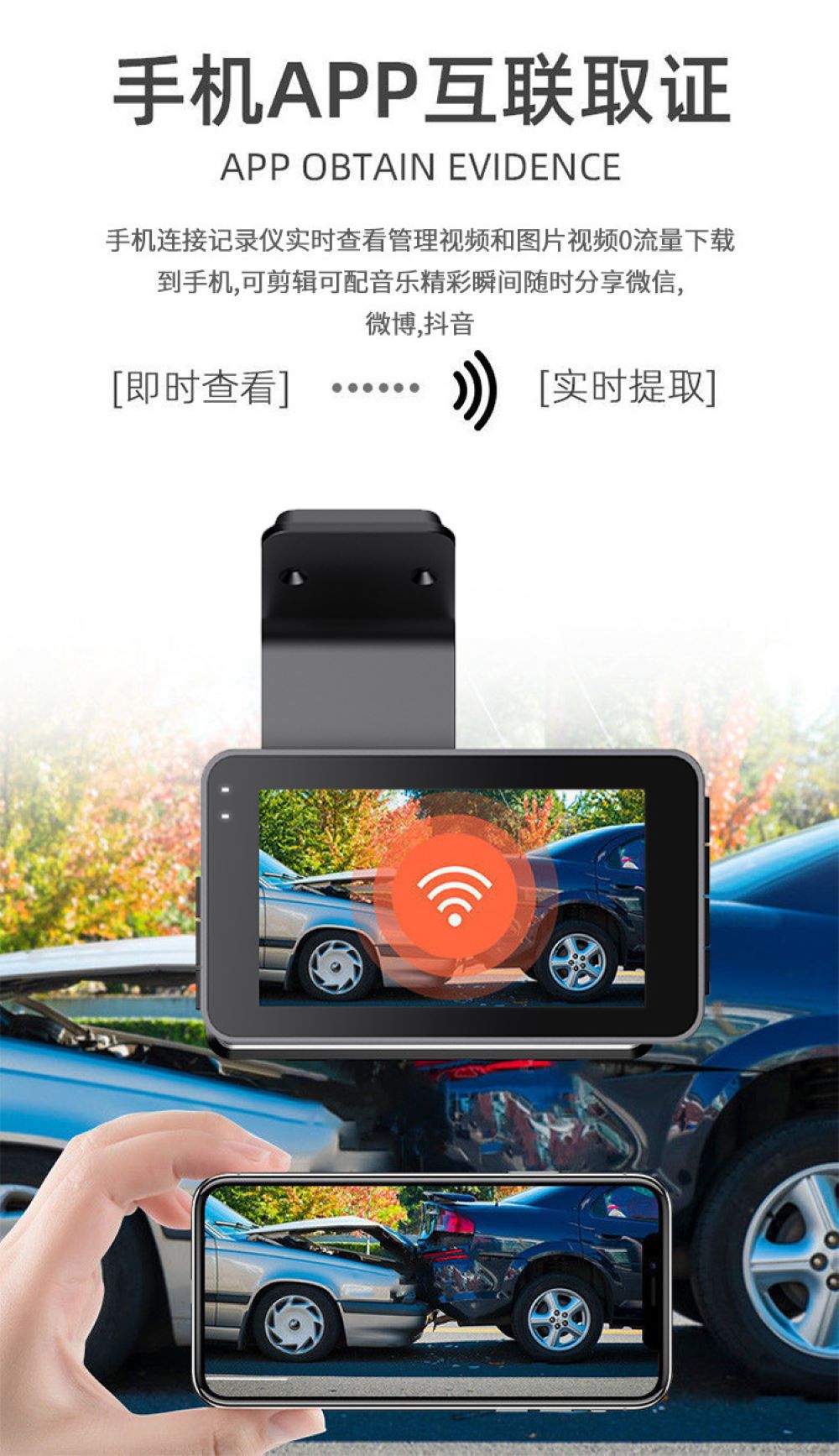 Автомобильный видеорегистратор HD с экраном 3inch 1080p и двойной записью спереди и сзади, Wi-Fi, видеорегистратор ночного видения
