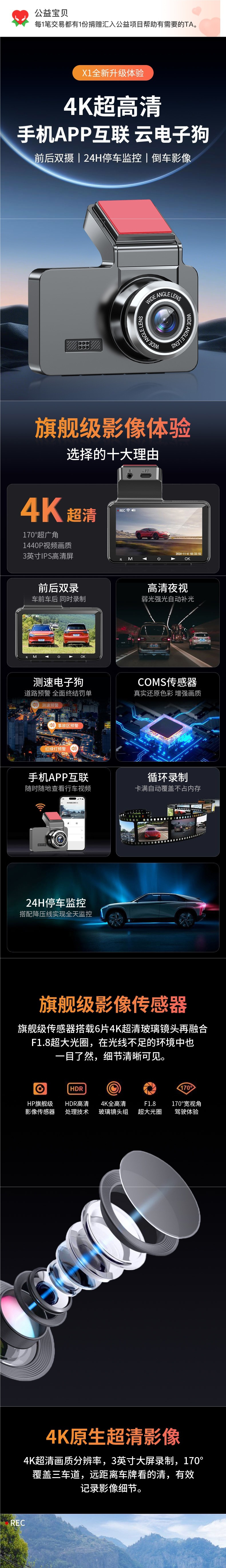 Автомобильный видеорегистратор производителя с панорамным обзором 360 градусов и ночным видением, не требует установки, с циклической записью, только для оптовых закупок, 4K высокое разрешение.