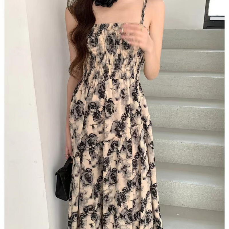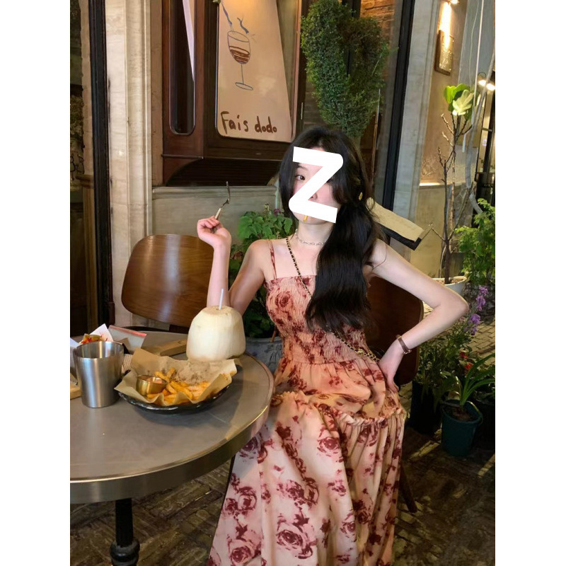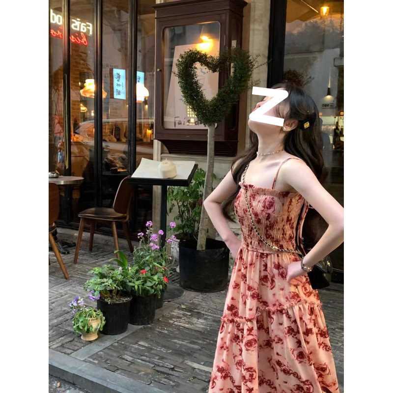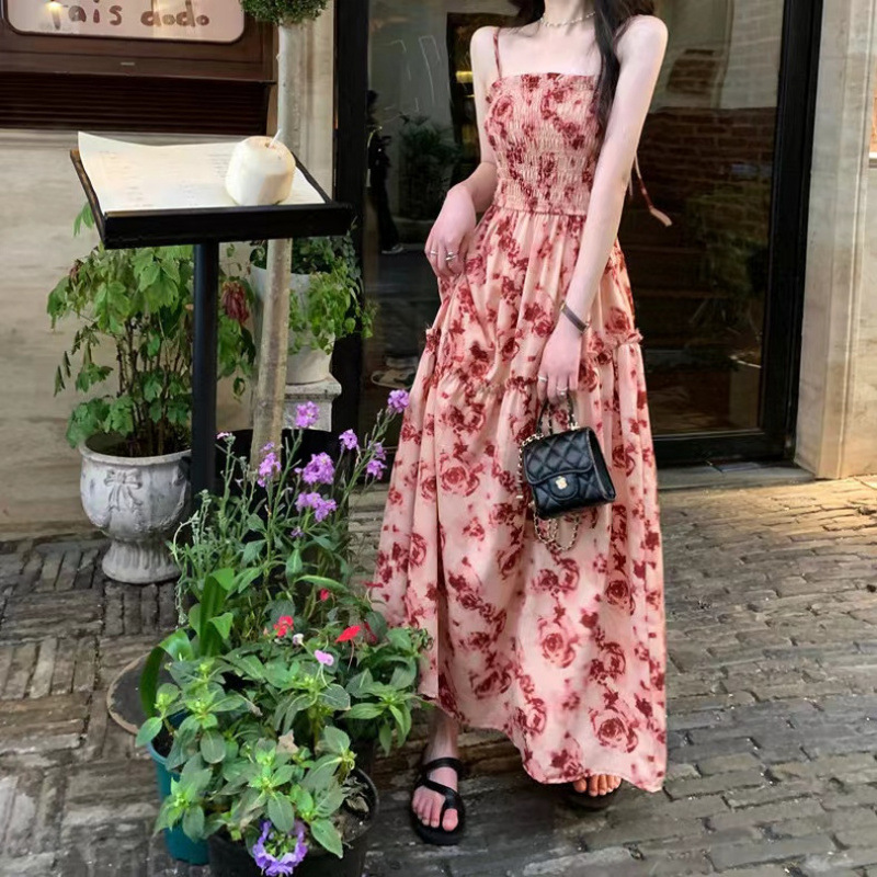 Красивая и стильная юбка-миди с цветочным принтом на подтяжках, лето 2025, новый стиль, высококачественное платье с подолом для женщин