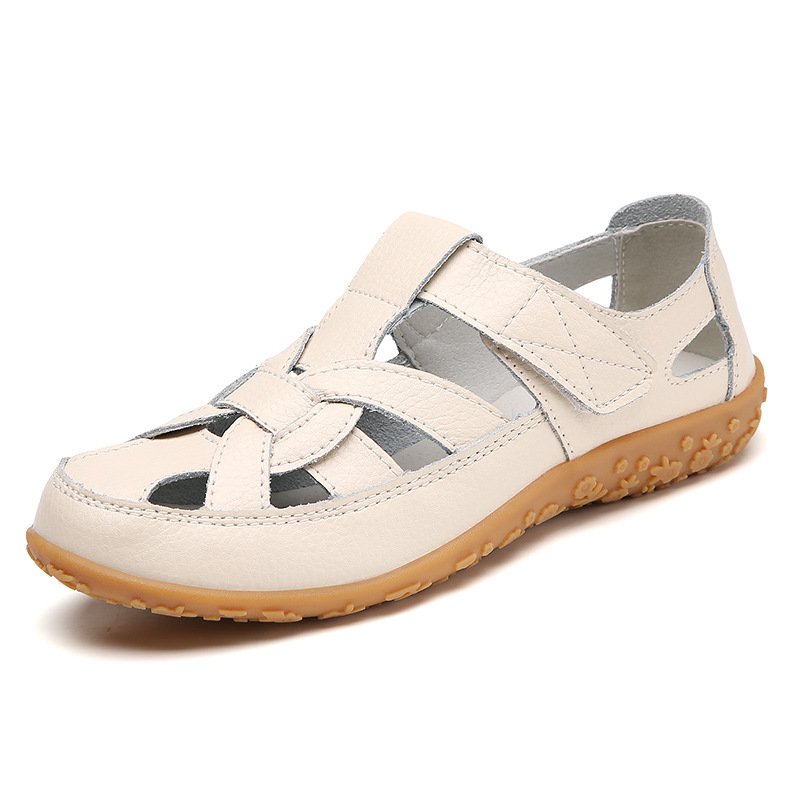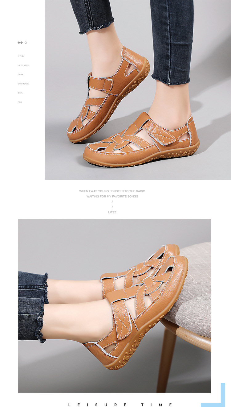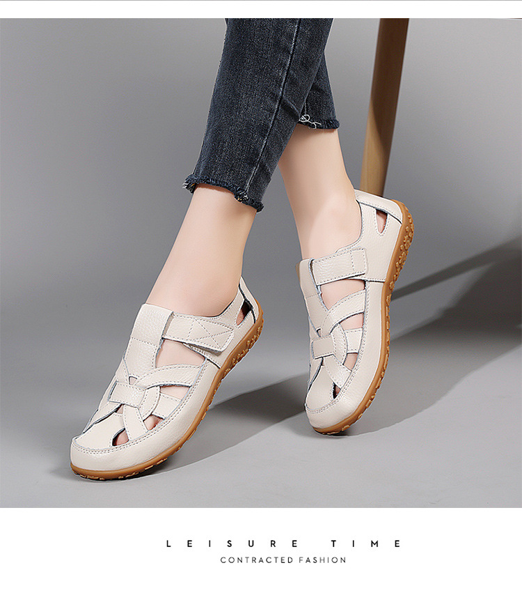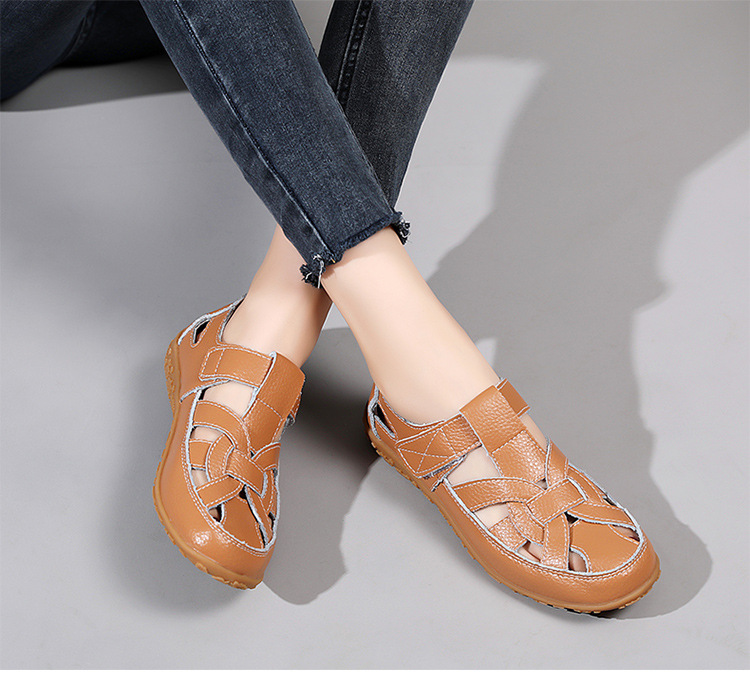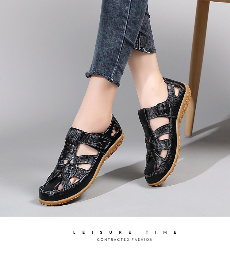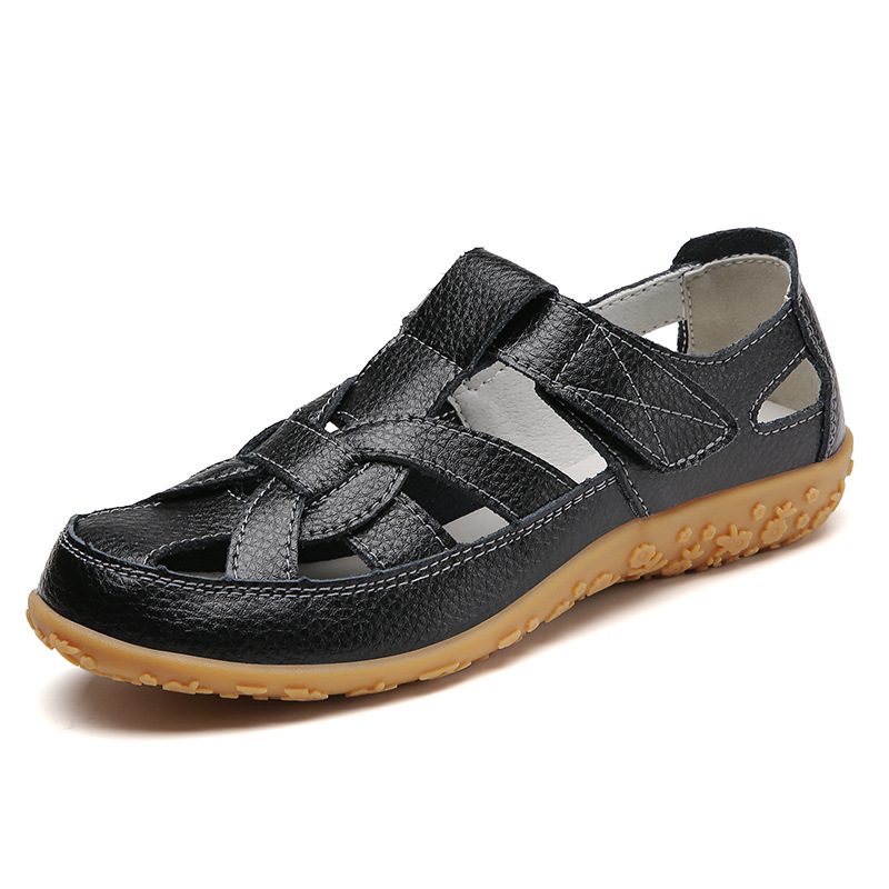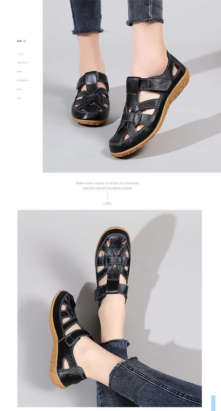 Женские плоские сандалии 2025, новые летние сандалии Baotou для мам, с мягкой подошвой, вырезом, из натуральной кожи, большие размеры.