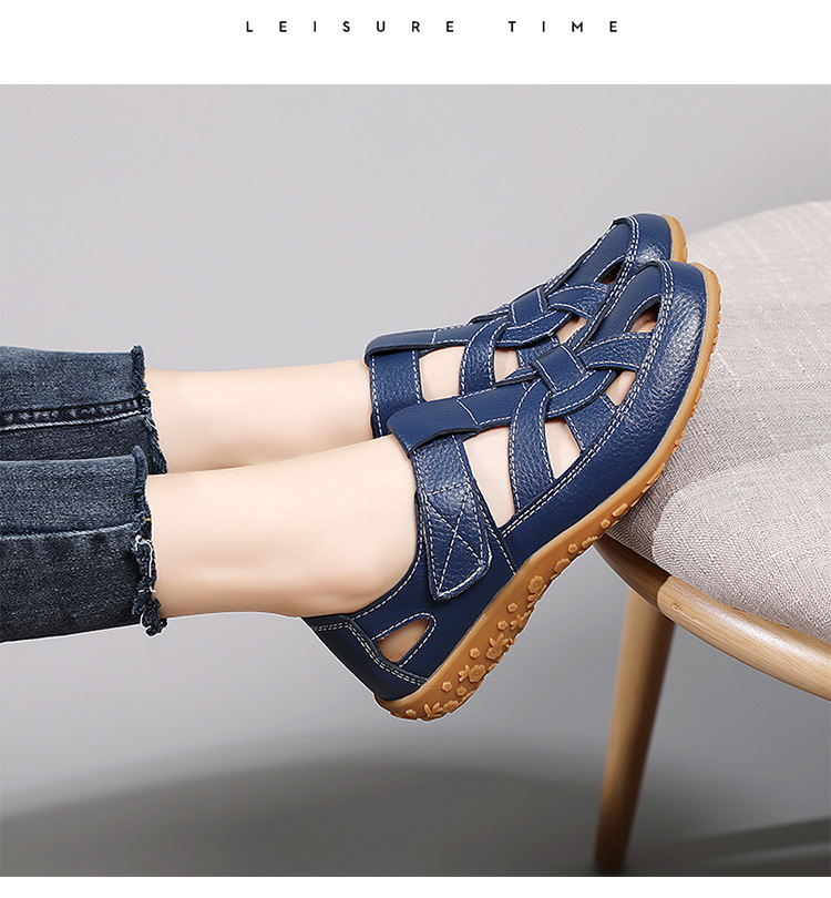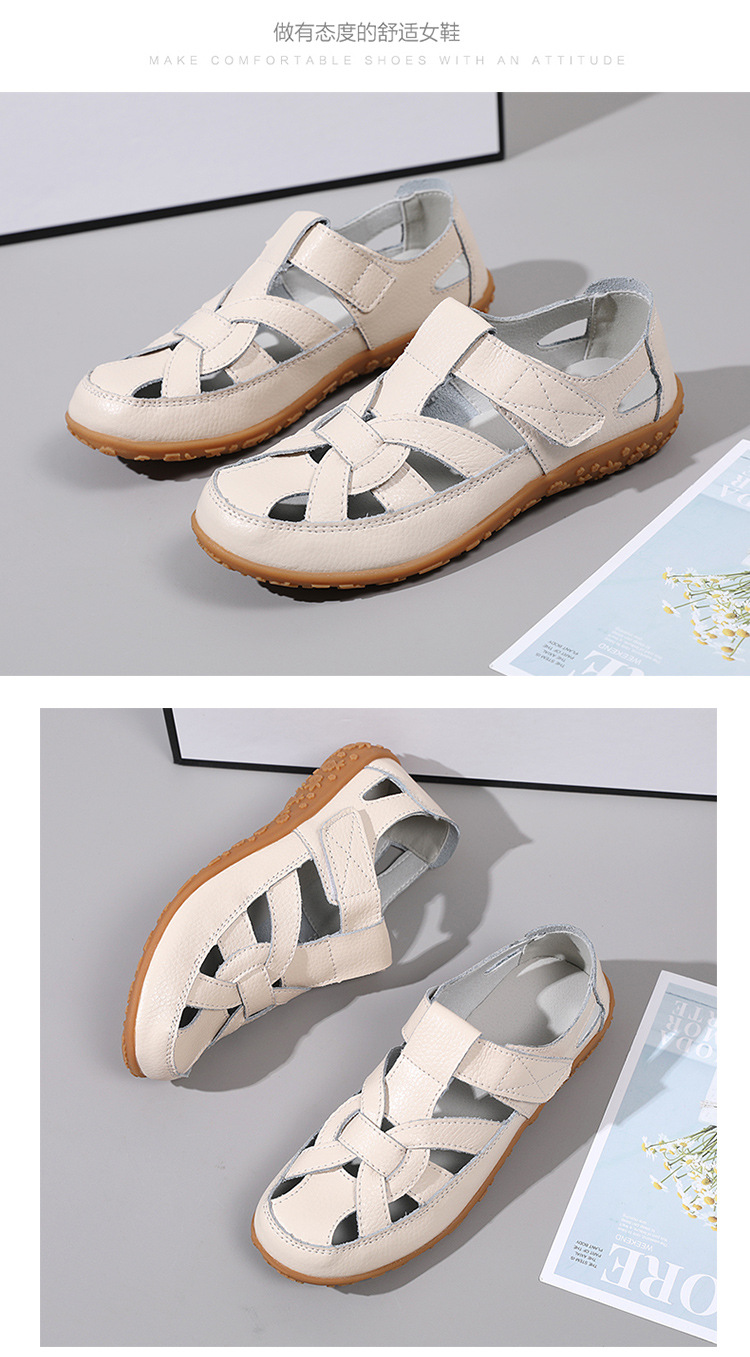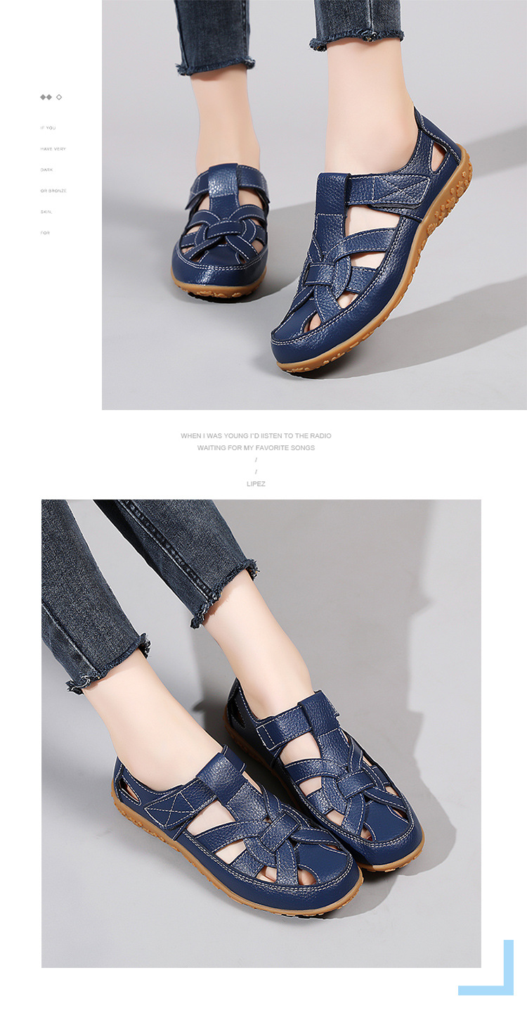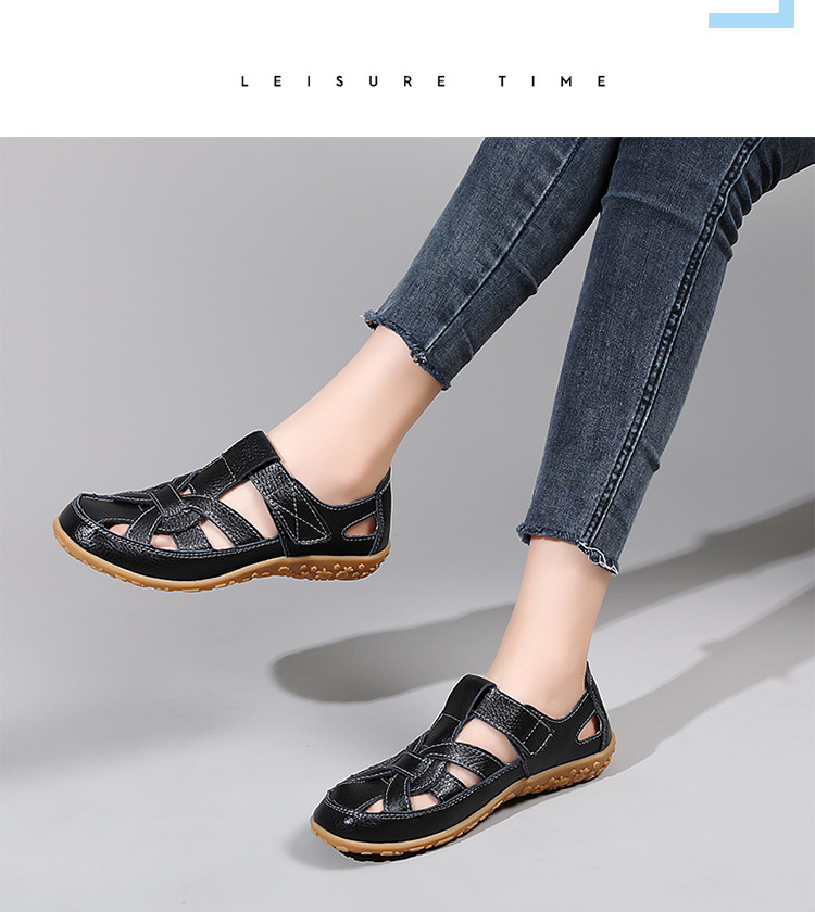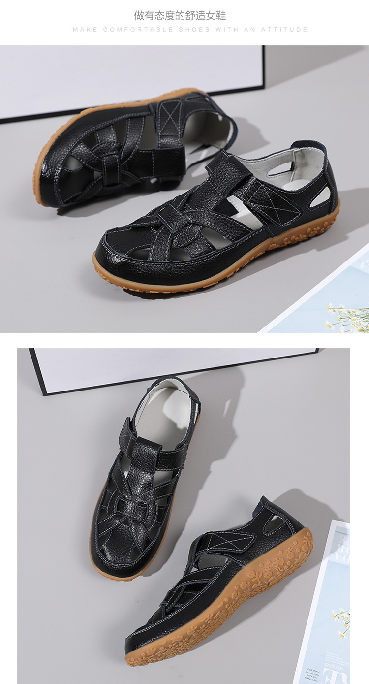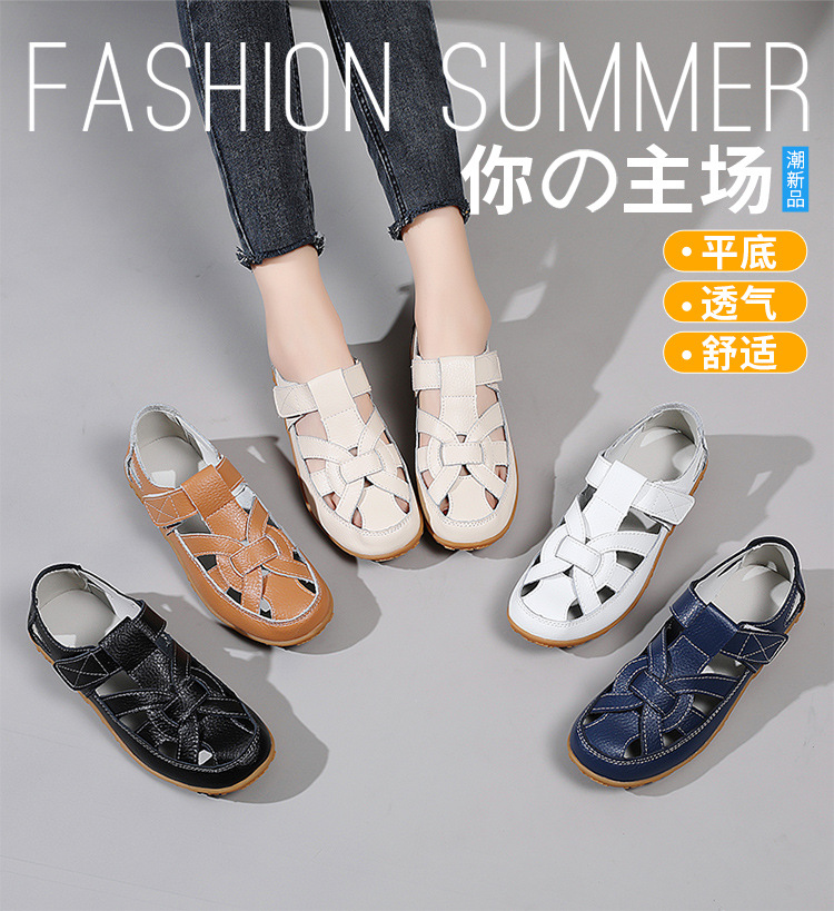 Женские плоские сандалии 2025, новые летние сандалии Baotou для мам, с мягкой подошвой, вырезом, из натуральной кожи, большие размеры.