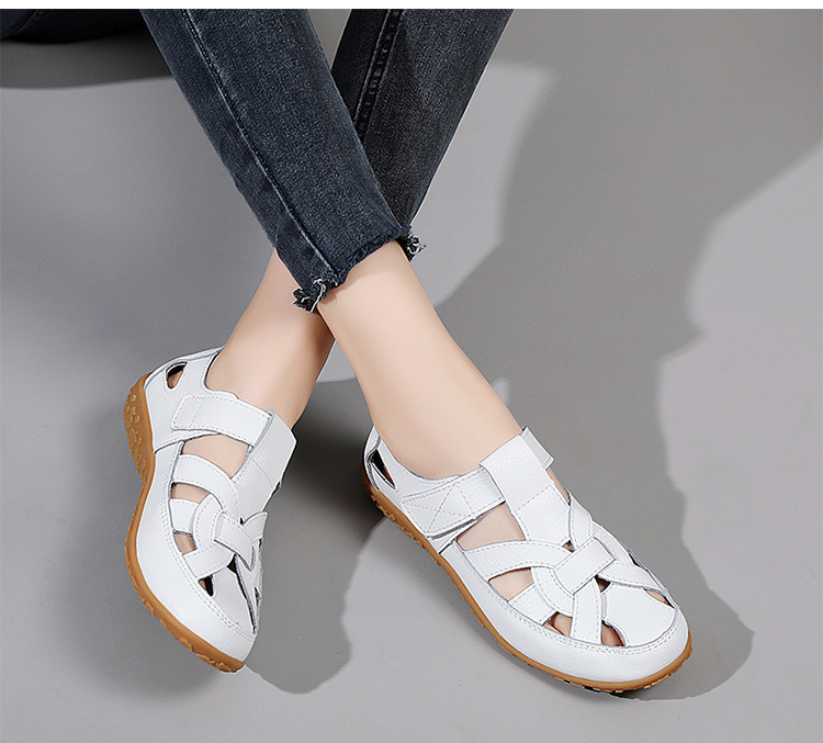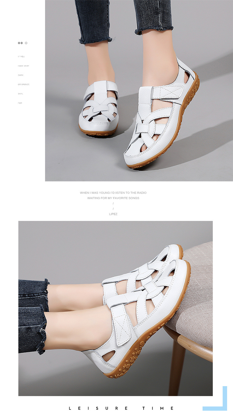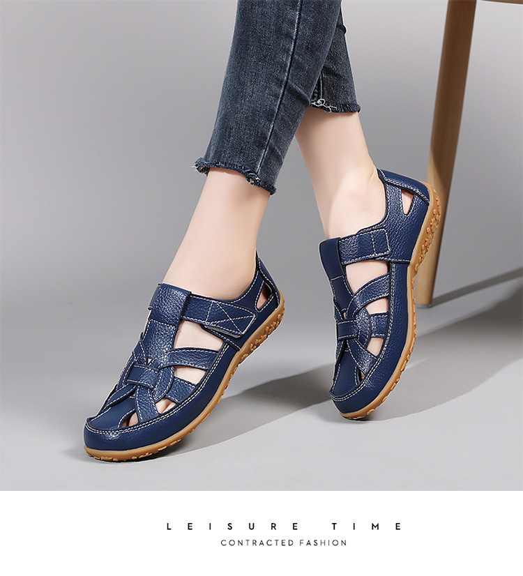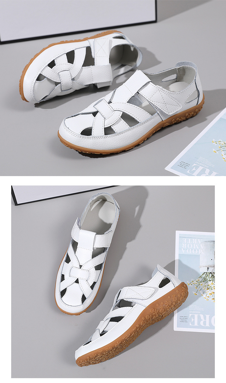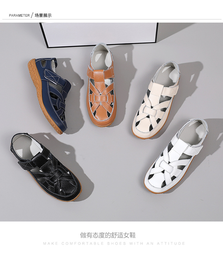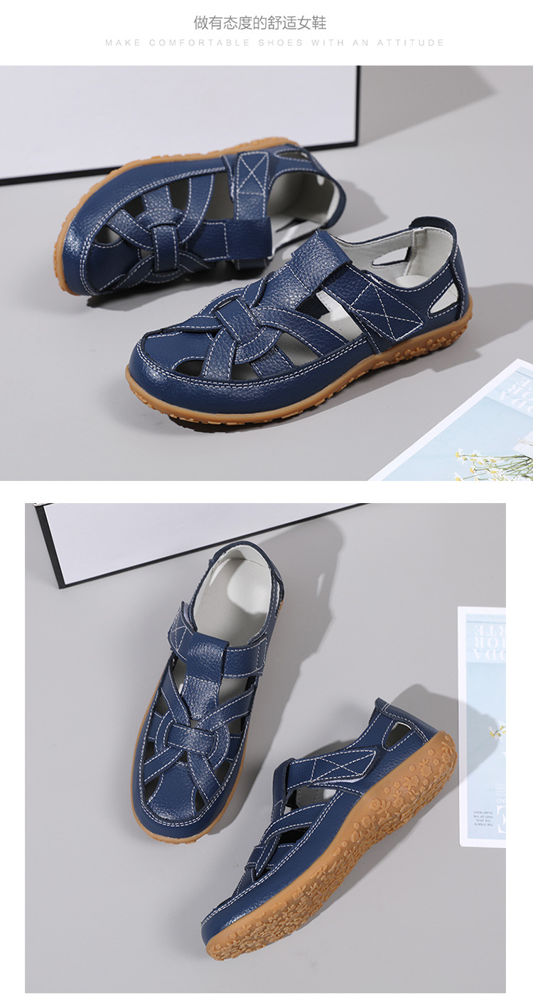 Женские плоские сандалии 2025, новые летние сандалии Baotou для мам, с мягкой подошвой, вырезом, из натуральной кожи, большие размеры.