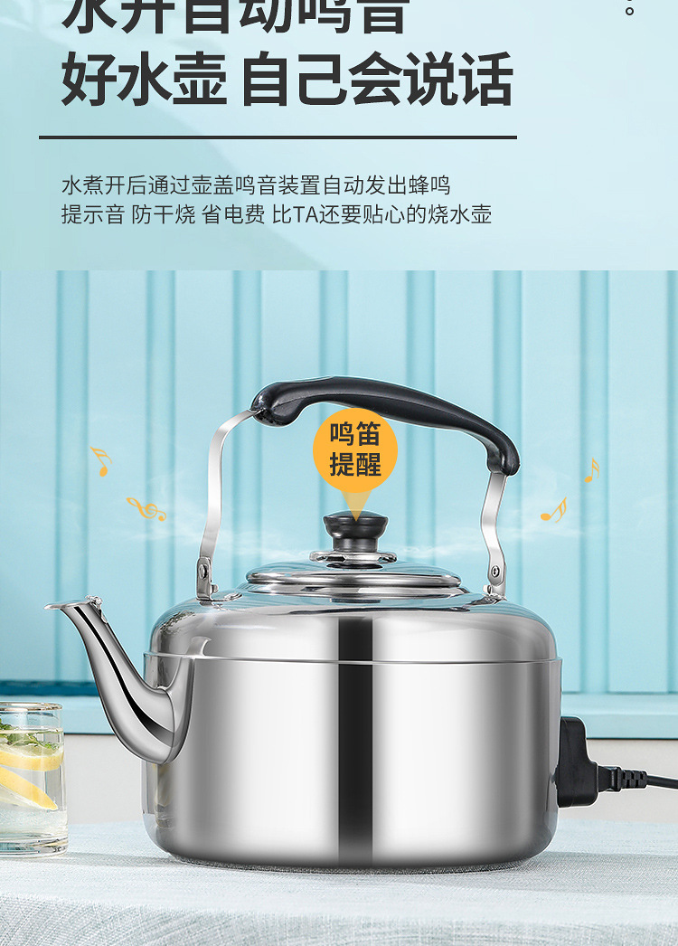 Электрический чайник большой емкости для домашнего использования, электрический чайник со свистком из нержавеющей стали, электрический чайник для воды.