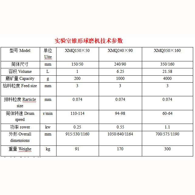 XMQ实验室锥形球磨机适用于实验室湿法磨细矿石或其它物料之用。适用于各种金属和非金属矿石原料化验试样的粉碎加工,凡需做化验粉碎加工的地质、矿山、冶碳、煤炭、建材和电力部门的生产,单位均可选用,同时用于涂料、油墨、燃料、食品工业部门超细磨加工。