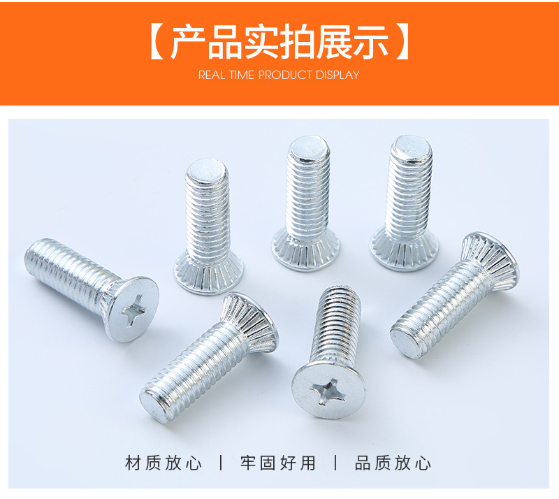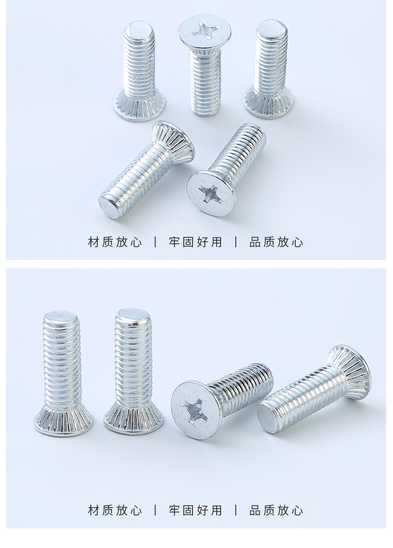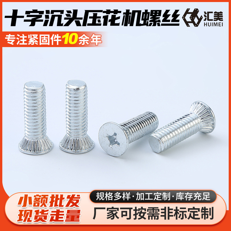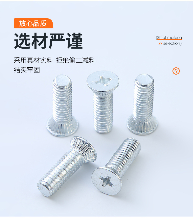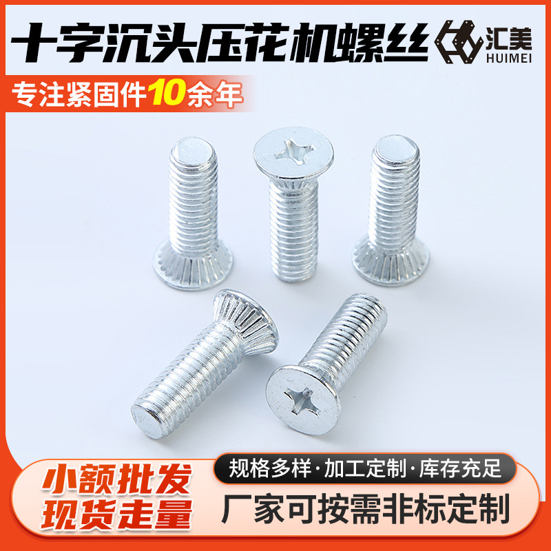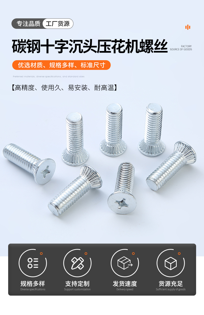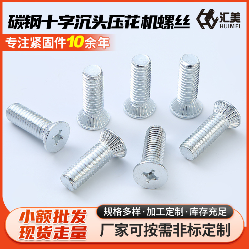 Винты для тиснения с потайной головкой из углеродистой стали. Машина для тиснения с потайной головкой. Зубчатые противоскользящие стопорные винты. Машина для тиснения с плоской головкой.