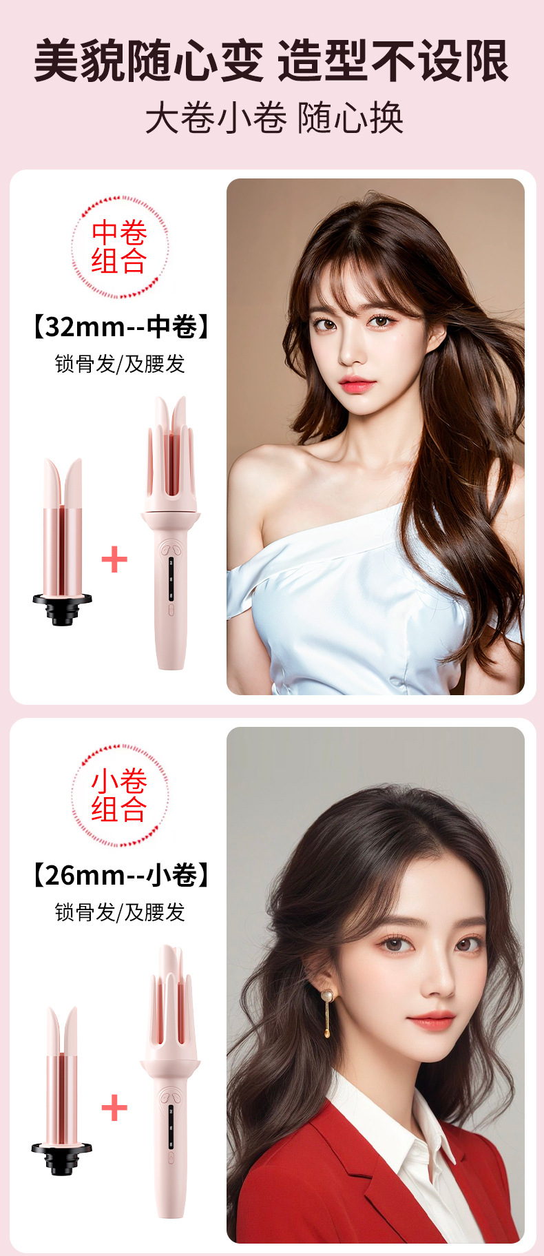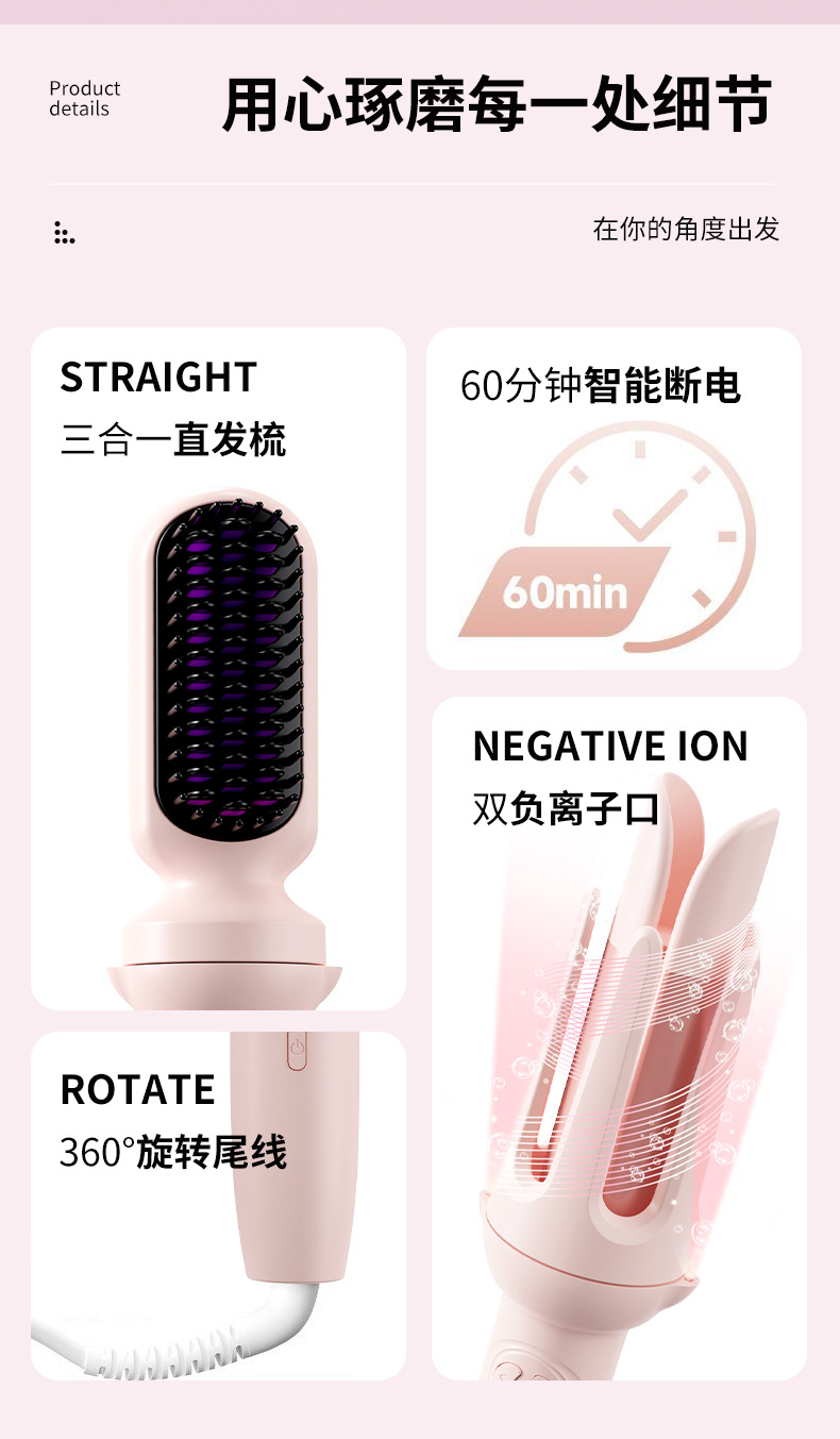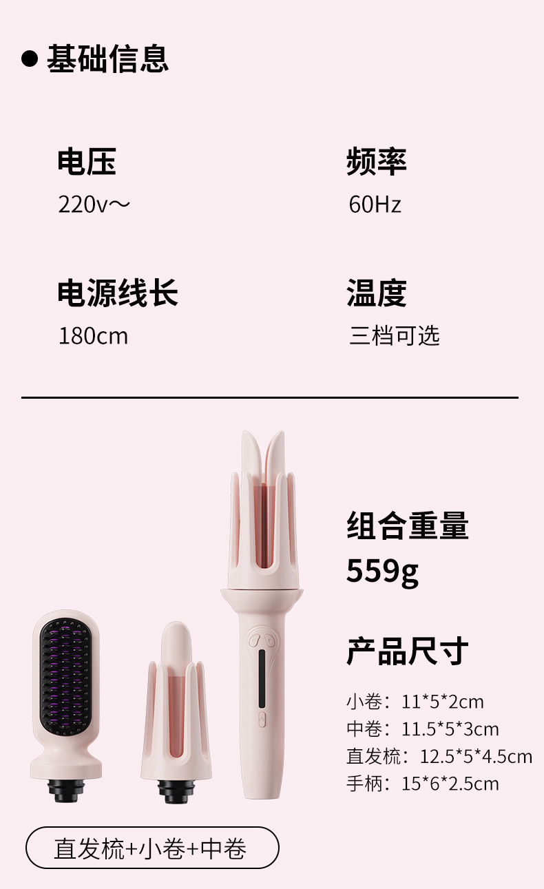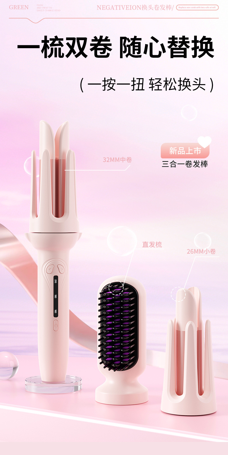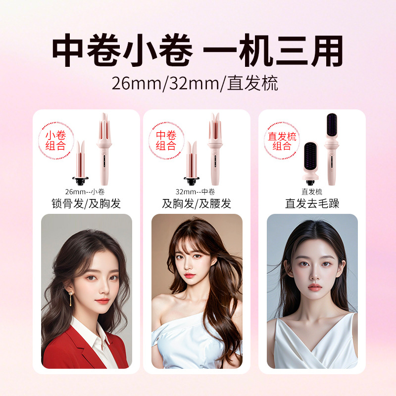 Автоматическая расческа для завивки и выпрямления волос «три в одном» со сменными насадками для завивки и выпрямления волос, многофункциональный прибор для завивки волос, утолщенные щипцы для завивки волос с защитой от химической завивки.