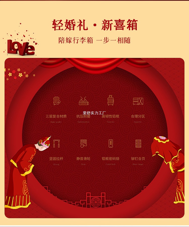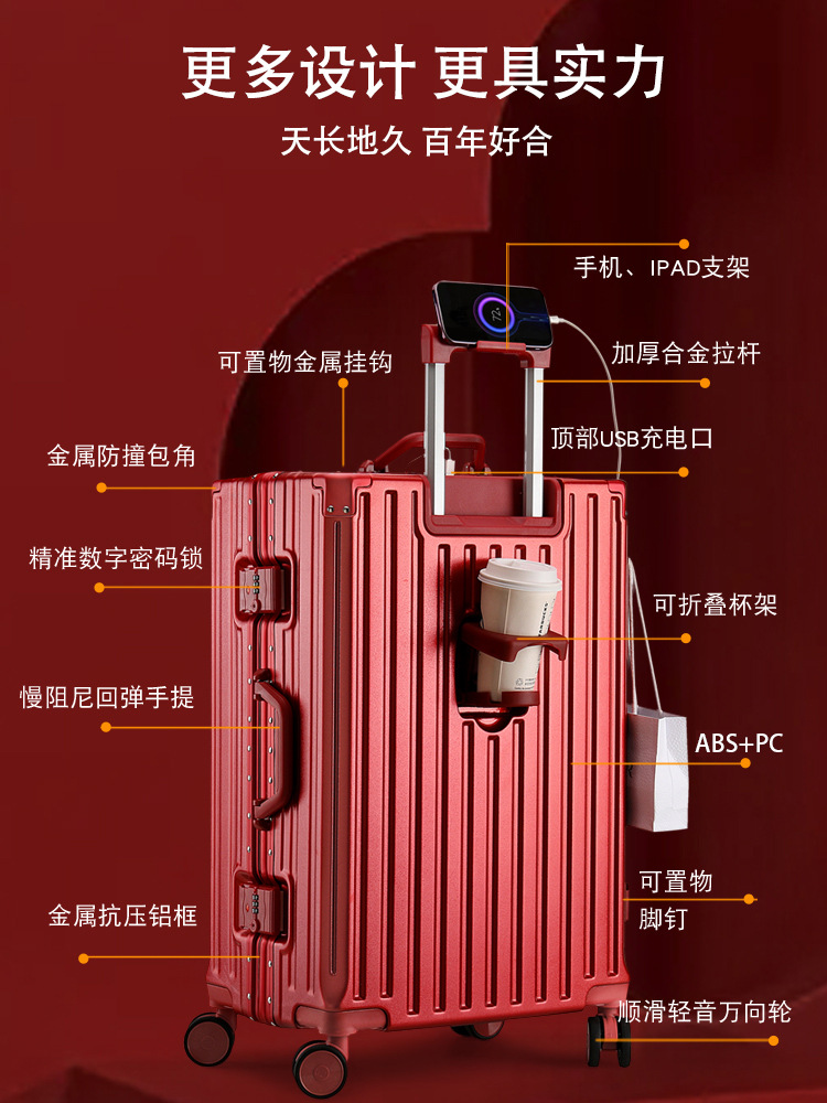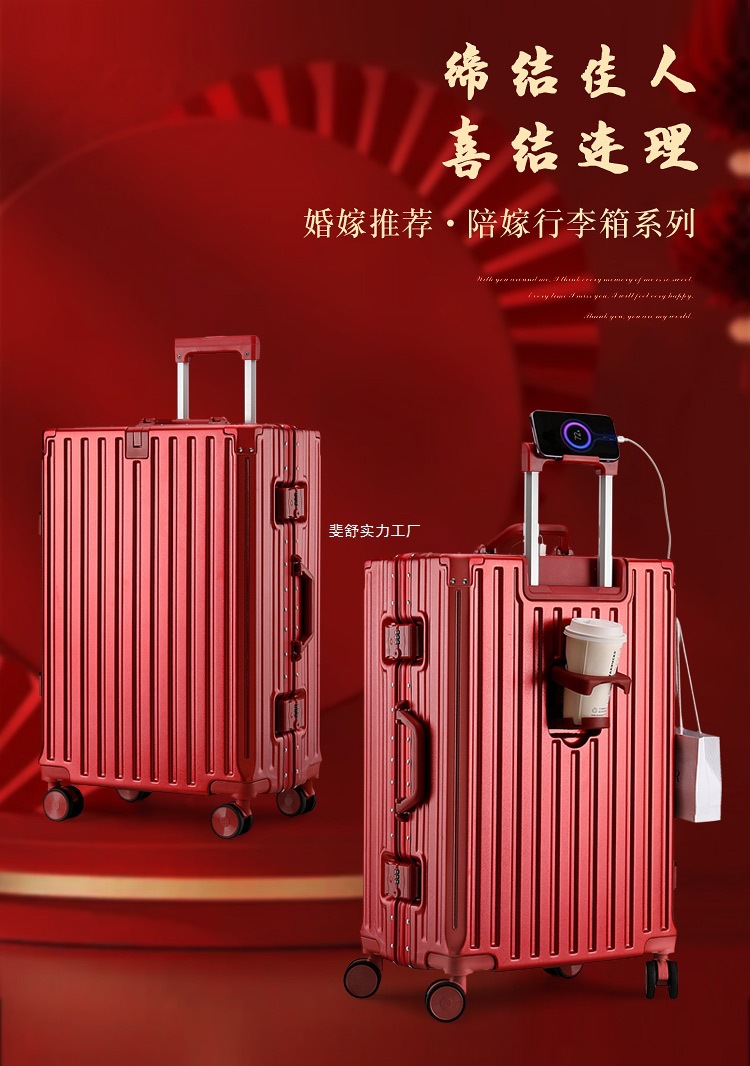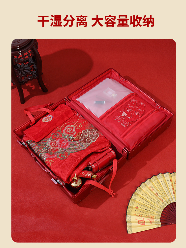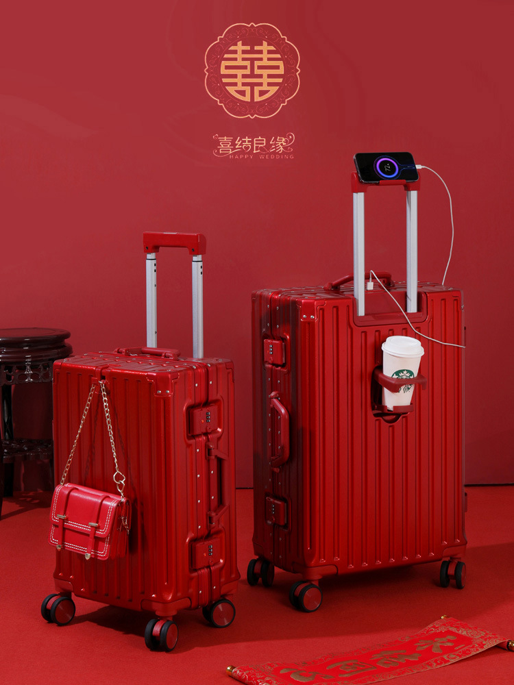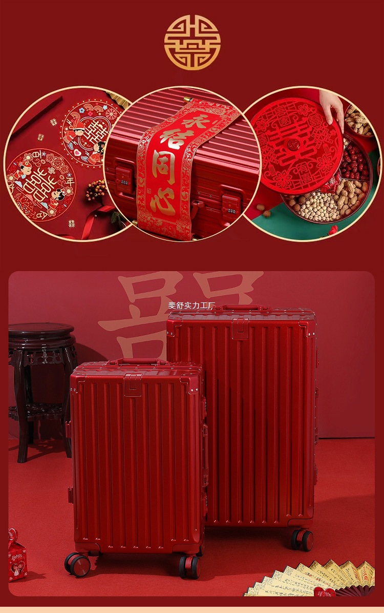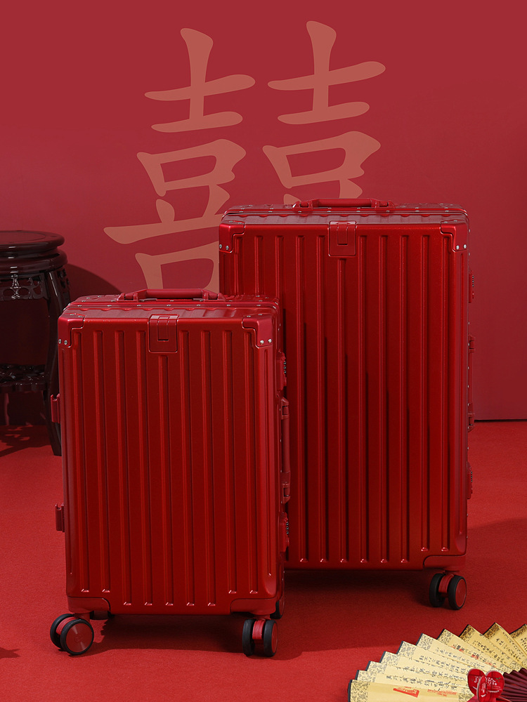 Свадебный чемодан невесты, чемодан для приданого, красный чемодан, чемодан на колесиках, женский чемодан, чемодан для приданого с паролем, 24inch для свадьбы
