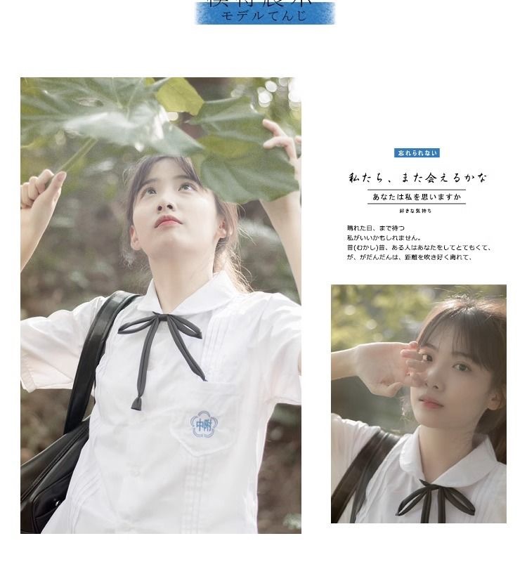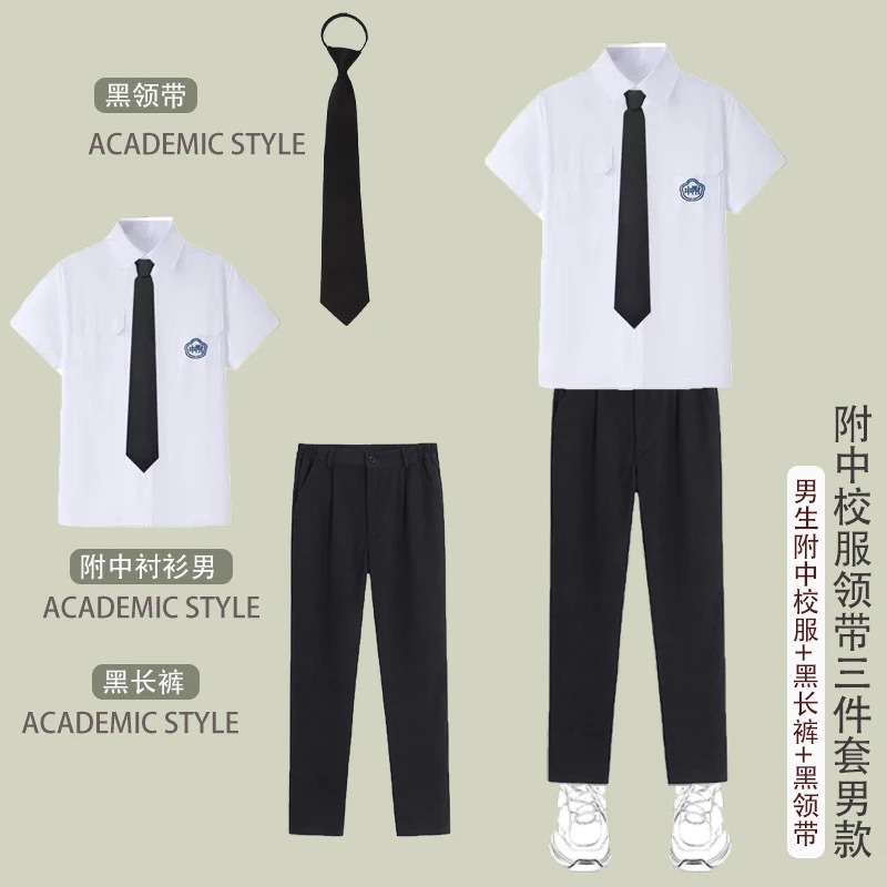 Женские белые рубашки средней школы с короткими рукавами (в комплекте с галстуком-бабочкой); Мужская белая рубашка с короткими рукавами (в комплекте галстук); Женская школьная белая с короткими рукавами + черный крест + черная юбка; Женская школьная белая с короткими рукавами + черный крест + черная юбка миди; Женская школьная белая с короткими рукавами + черный крест + черная длинная юбка; Женская школьная белая с короткими рукавами + черный крест + темно-синяя юбка; Женская школьная белая с короткими рукавами + черный крест + темно-синяя юбка-миди.; Женская школьная белая короткая рукава + черный крест + темно-синяя длинная юбка; Мужская белая рубашка с короткими рукавами + черный галстук + черные брюки.; Мужская белая рубашка с короткими рукавами + черный галстук + темно-синие брюки.; Мужская белая рубашка с короткими рукавами + черный галстук + черные брюки.; Мужская белая рубашка с короткими рукавами + черный галстук + темно-синие брюки.; Женская школьная форма: длинный рукав + черный крестовый узел + черная юбка; Женская школьная форма: белая рубашка с длинным рукавом + черный крестовый узел + темно-синяя юбка; Женская школьная форма: белая рубашка с длинным рукавом + черный крестовый узел + черная миди-юбка; Женская школьная форма: белая рубашка с длинным рукавом + черный крестовый узел + темно-синяя юбка средней длины; Женская школьная форма: длинный рукав + черный крестовый узел + черная длинная юбка; Женская школьная форма: длинный рукав + черный перекрестный узел + темно-синяя длинная юбка; Мужская белая рубашка с длинным рукавом + черный галстук + черные брюки; Мужские рубашки средней длины с длинными рукавами + черный галстук + темно-синие брюки