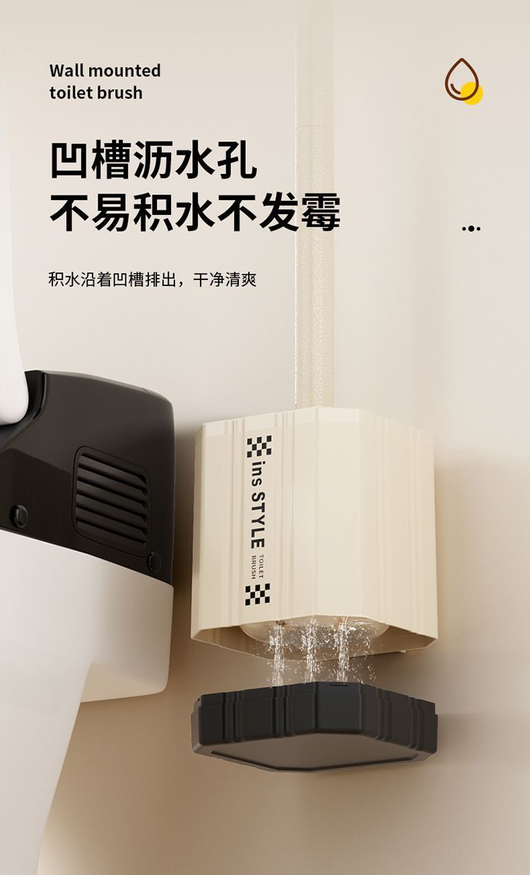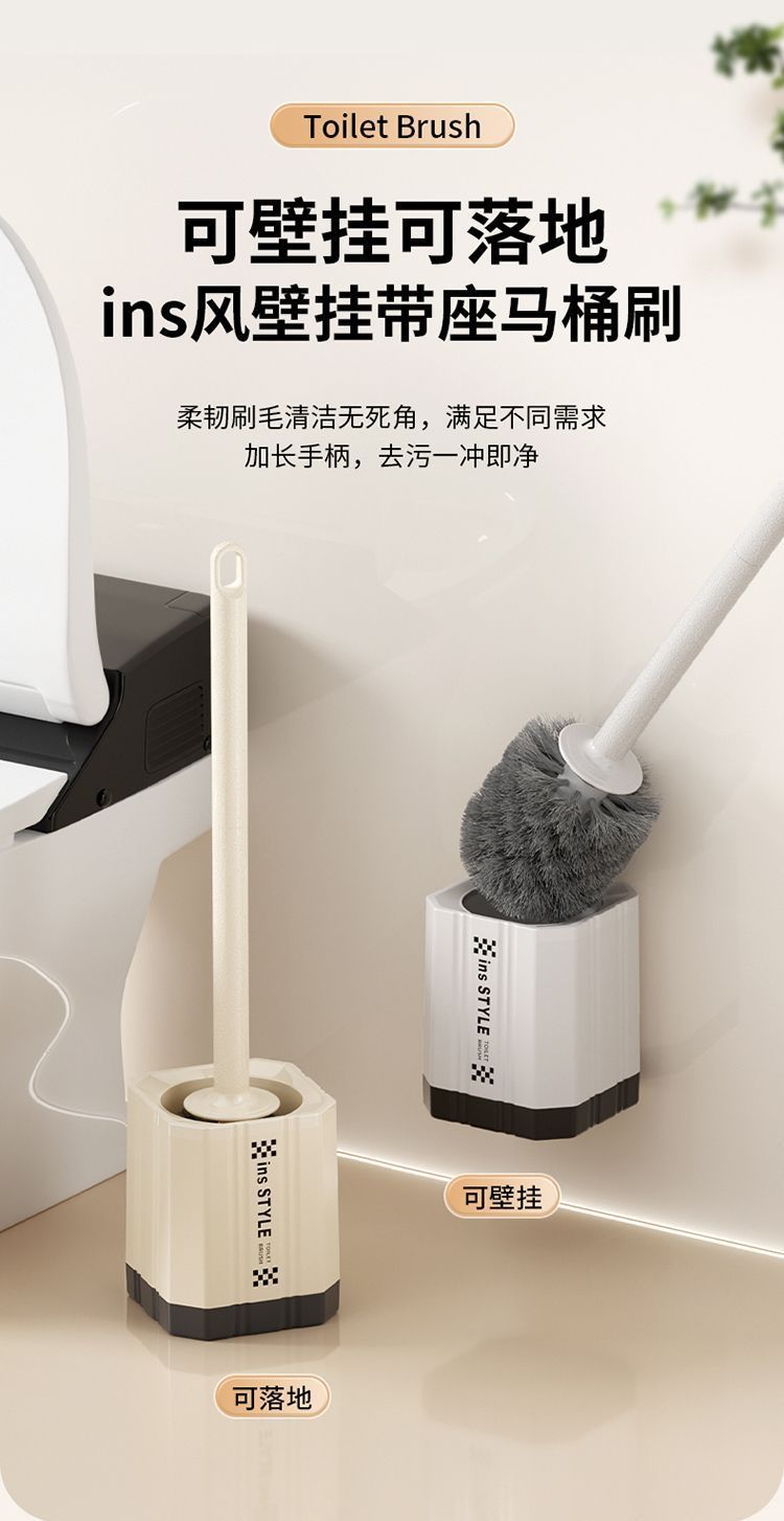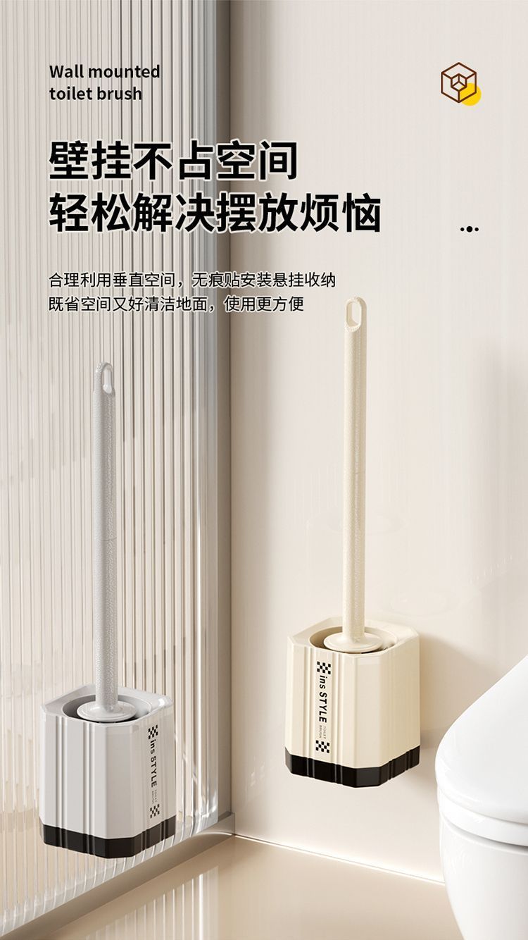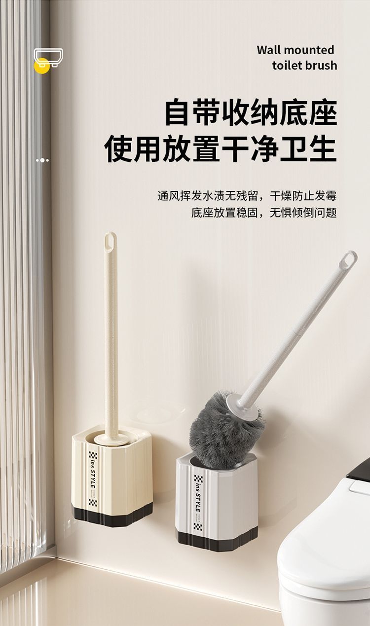 Щетка для унитаза новой модели для домашней ванной комнаты, настенный набор для чистки с длинной ручкой и основанием для труднодоступных мест.