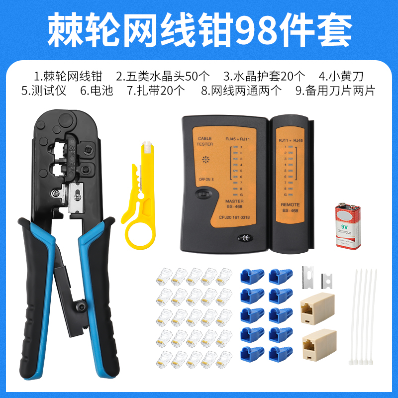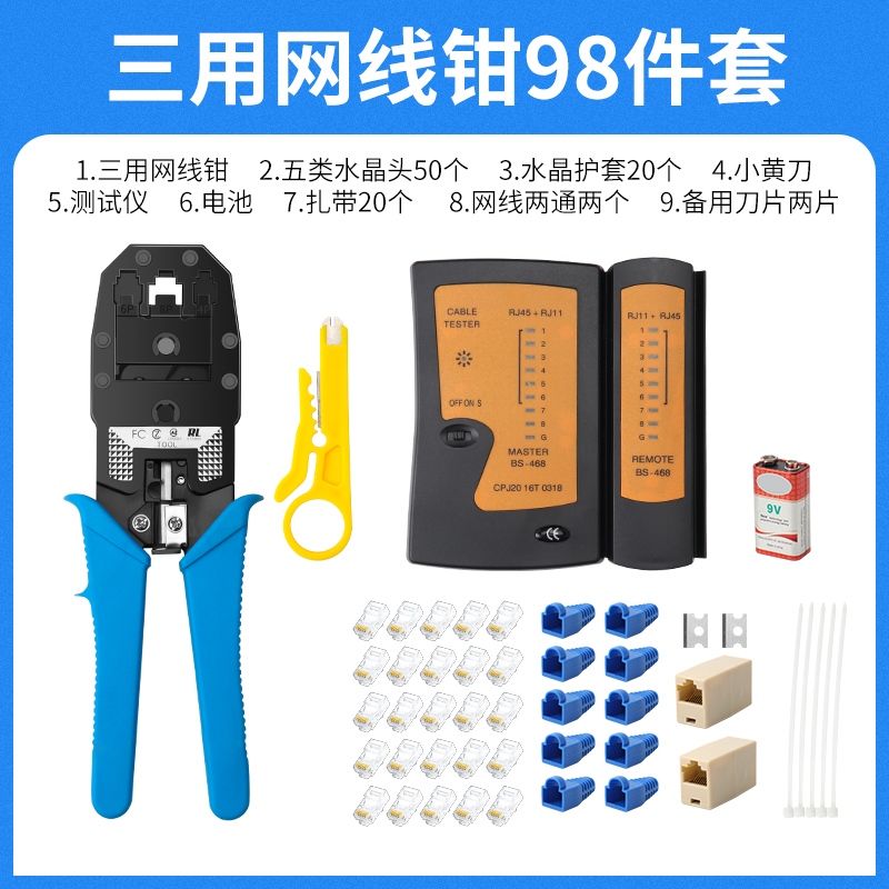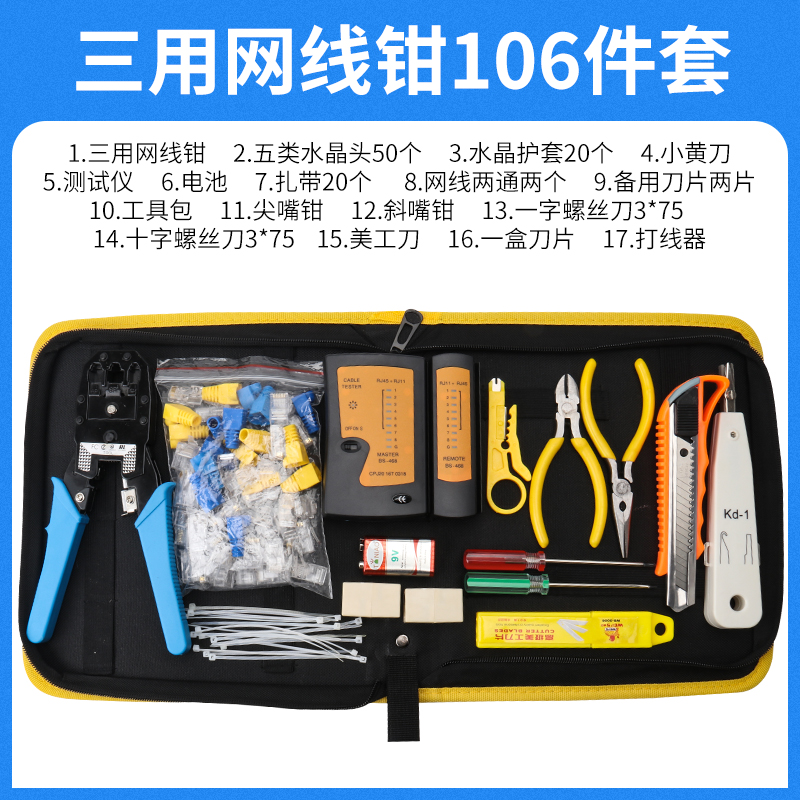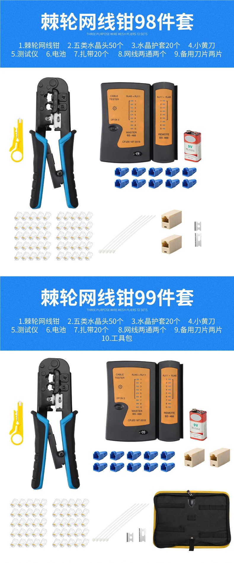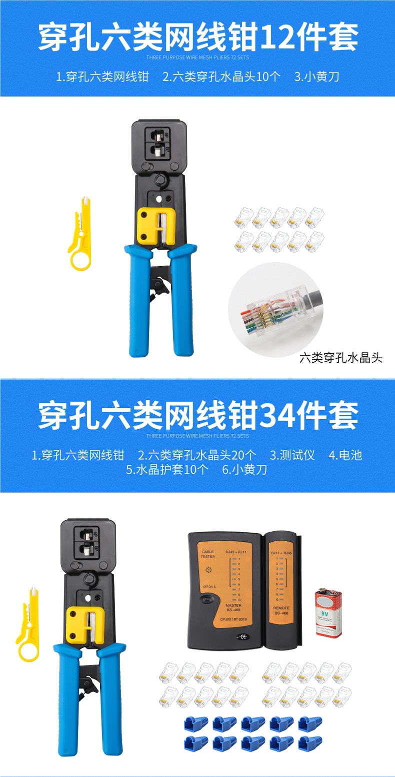 Акция - 1 тройное кусачки для сетевых кабелей (без подарков); Трехцелевые клещи для сетевых кабелей + 10 кристаллических головок (набор из 12 шт.); Трехцелевые клещи для сетевых кабелей + 50 кристаллических головок + 20 оболочек (набор из 72 предметов); Трехцелевые клещи для сетевых кабелей (набор из 98 предметов), рекомендованные для ежедневного домашнего использования.; Трехцелевые клещи для сетевых кабелей (набор из 99 предметов) с набором инструментов для ремонта; Трехцелевые клещи для сетевых кабелей (комплект из 106 штук) с набором инструментов для ремонта; Трехцелевые клещи для сетевых кабелей (комплект из 108 штук) с набором инструментов для ремонта; Плоскогубцы для сетевых кабелей с храповым механизмом + 10 кристаллических головок (набор из 12 шт.); Плоскогубцы для сетевых кабелей с храповым механизмом + 50 кристаллических головок + 20 оболочек (набор из 72 предметов); Плоскогубцы для сетевых кабелей с храповым механизмом (набор из 98 предметов), рекомендованные для ежедневного домашнего использования.; Плоскогубцы для сетевых кабелей с храповым механизмом (набор из 99 предметов) с сумкой для инструментов для ремонта; Плоскогубцы для сетевых кабелей с храповым механизмом (набор из 106 шт.) с сумкой для инструментов для ремонта; Плоскогубцы для сетевых кабелей с храповым механизмом (набор из 108 шт.) с набором инструментов для ремонта; Перфорированные плоскогубцы для сетевых кабелей категории 6 + 10 перфорированных кристаллических головок (набор из 12 шт.); Перфорированные плоскогубцы для сетевых кабелей категории 6 (набор из 34 шт.); Перфорированные клещи для сетевых кабелей категории 6 (набор из 57 предметов); Клещи для сетевых кабелей категории 7 + нож для зачистки проводов + крестовая отвертка (набор из 3 предметов); Клещи для сетевых кабелей категории 7 + 10 кристаллических головок + 10 оболочек + нож для зачистки проводов + крестовая отвертка (набор из 23 предметов); Клещи для сетевых кабелей категории 7 (набор из 25 шт.); Клещи для сетевых кабелей категории 7 (набор из 48 шт.); тестер
