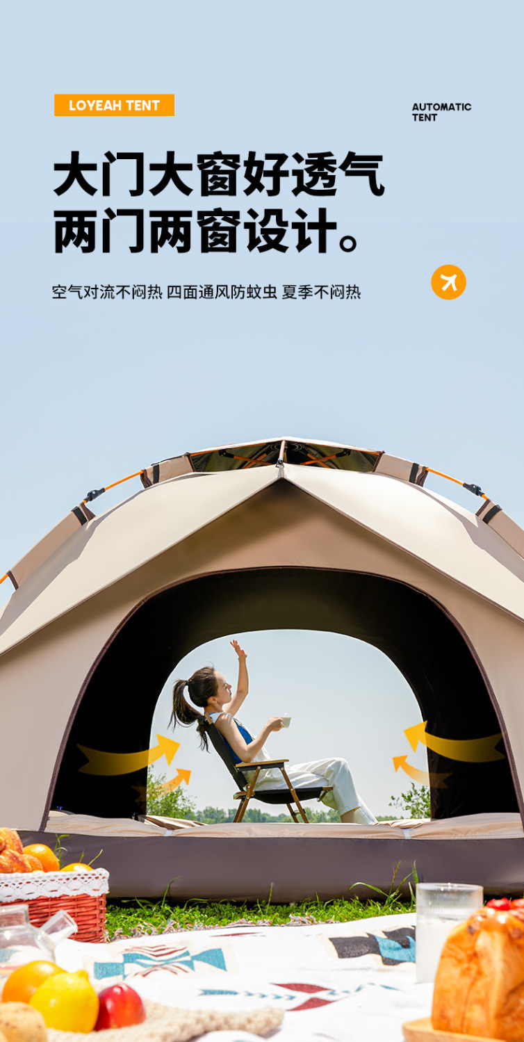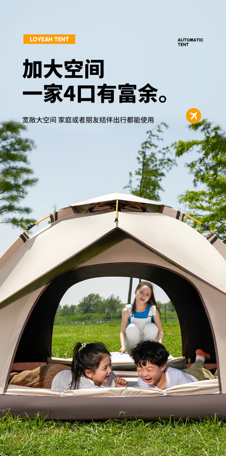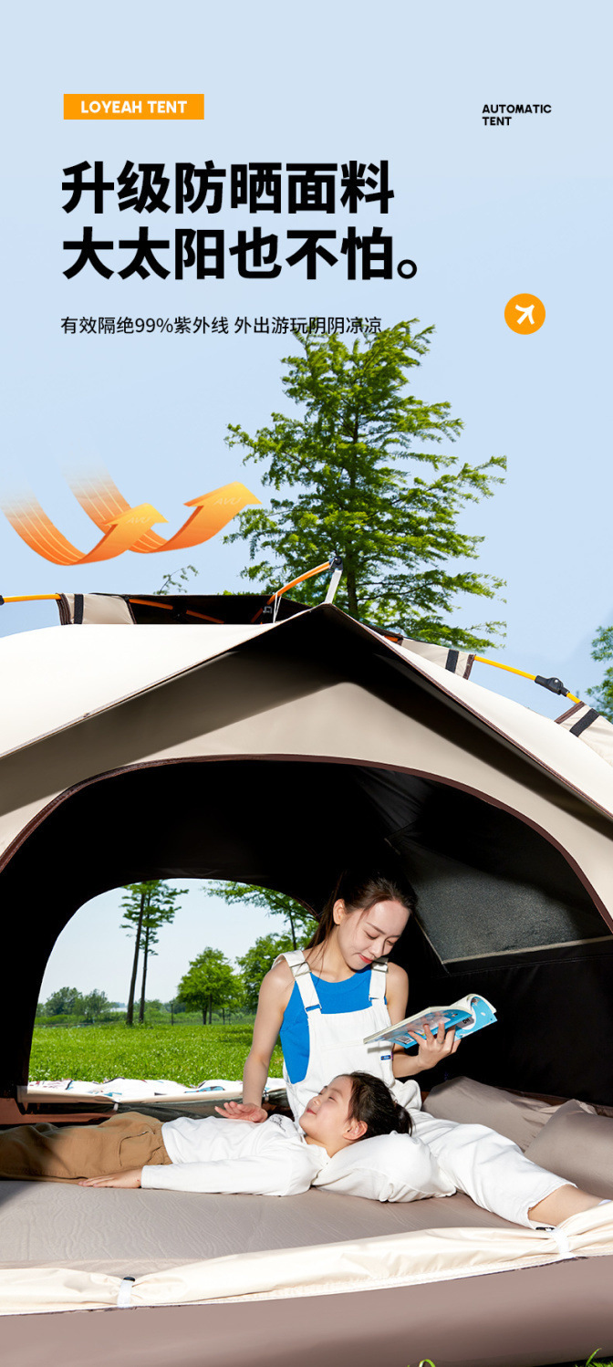 Полностью автоматический быстрооткрывающийся, водонепроницаемый и солнцезащитный пляжный кемпинговый утолщенный комплект палаток, подходящий для 3-4 семей