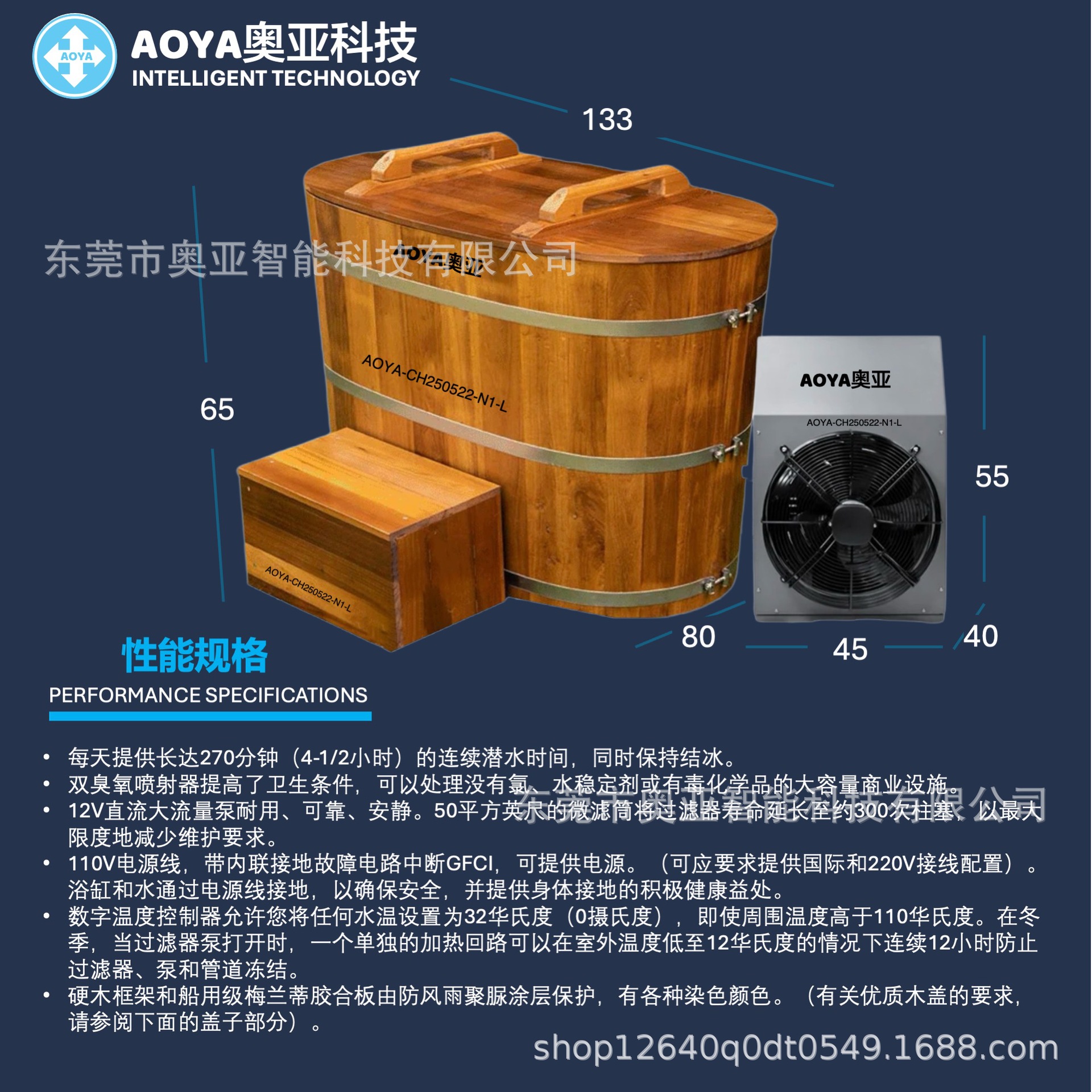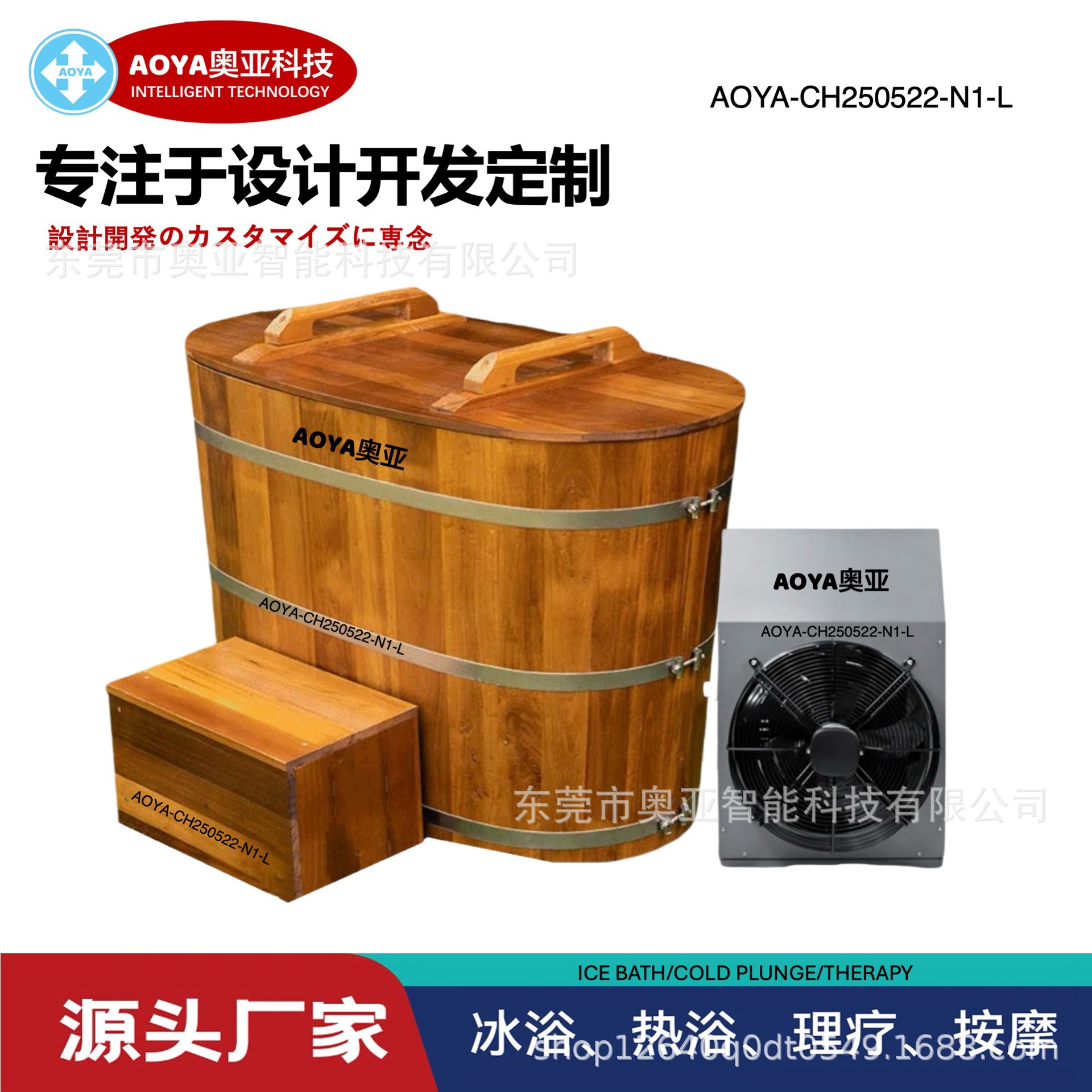 东莞市奥亚智能科技有限公司,主要开发设计运动员专用冰浴制冷设备浴缸,浴缸主要进口原木和不锈钢316材质组合合成,内部具有完善的冷却制冰系统,和低温水质循环系统,包括电压控制系统,手机控制系统和水质优化系统,完全按照运动员需求设计,