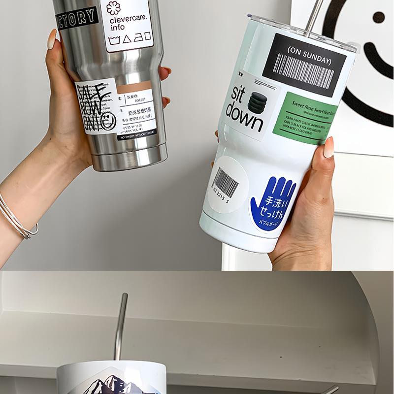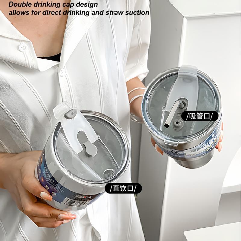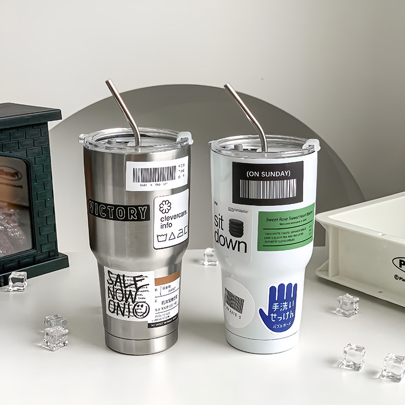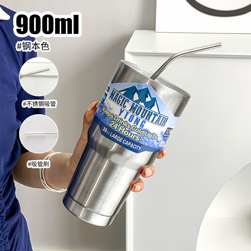Чашка с соломинкой из нержавеющей стали 304, чашка-термос большой емкости, офисная чашка для питья, чашка для льда, удобная автомобильная кофейная чашка