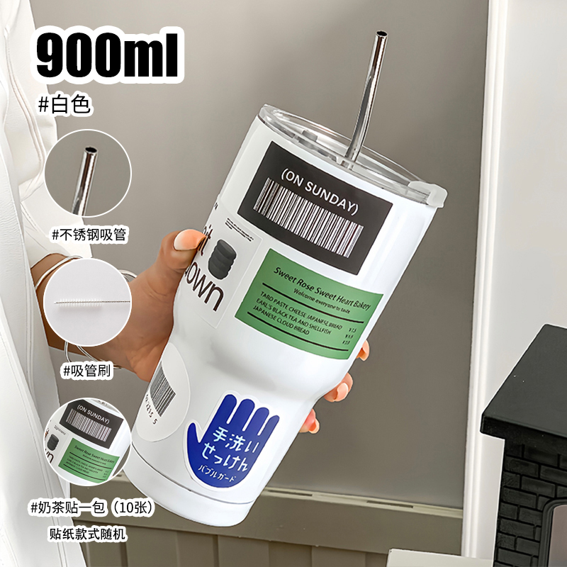 900 мл/стальной цвет + двойная крышка для питья + соломинка из нержавеющей стали для сохранения тепла и холода; 900 мл/белый + двойная крышка для питья + соломинка из нержавеющей стали для сохранения тепла и холода; 900 мл/стальная соломенная чашка натурального цвета + наклейка «сделай сам», чтобы сохранять тепло и холод; 900 мл/белая соломенная чашка + наклейка «сделай сам», чтобы сохранять тепло и холод; Однослойная соломенная чашка из нержавеющей стали без изоляции.