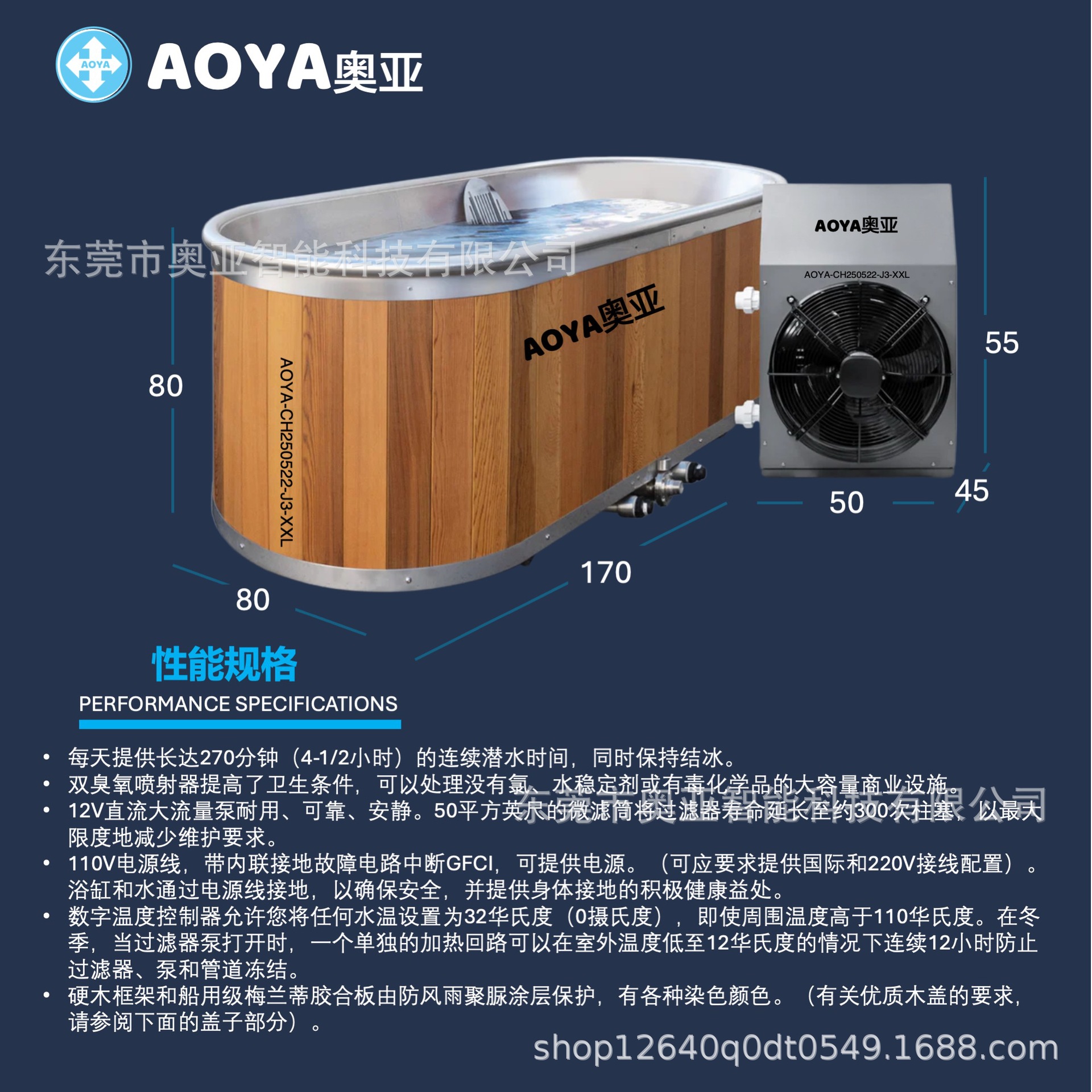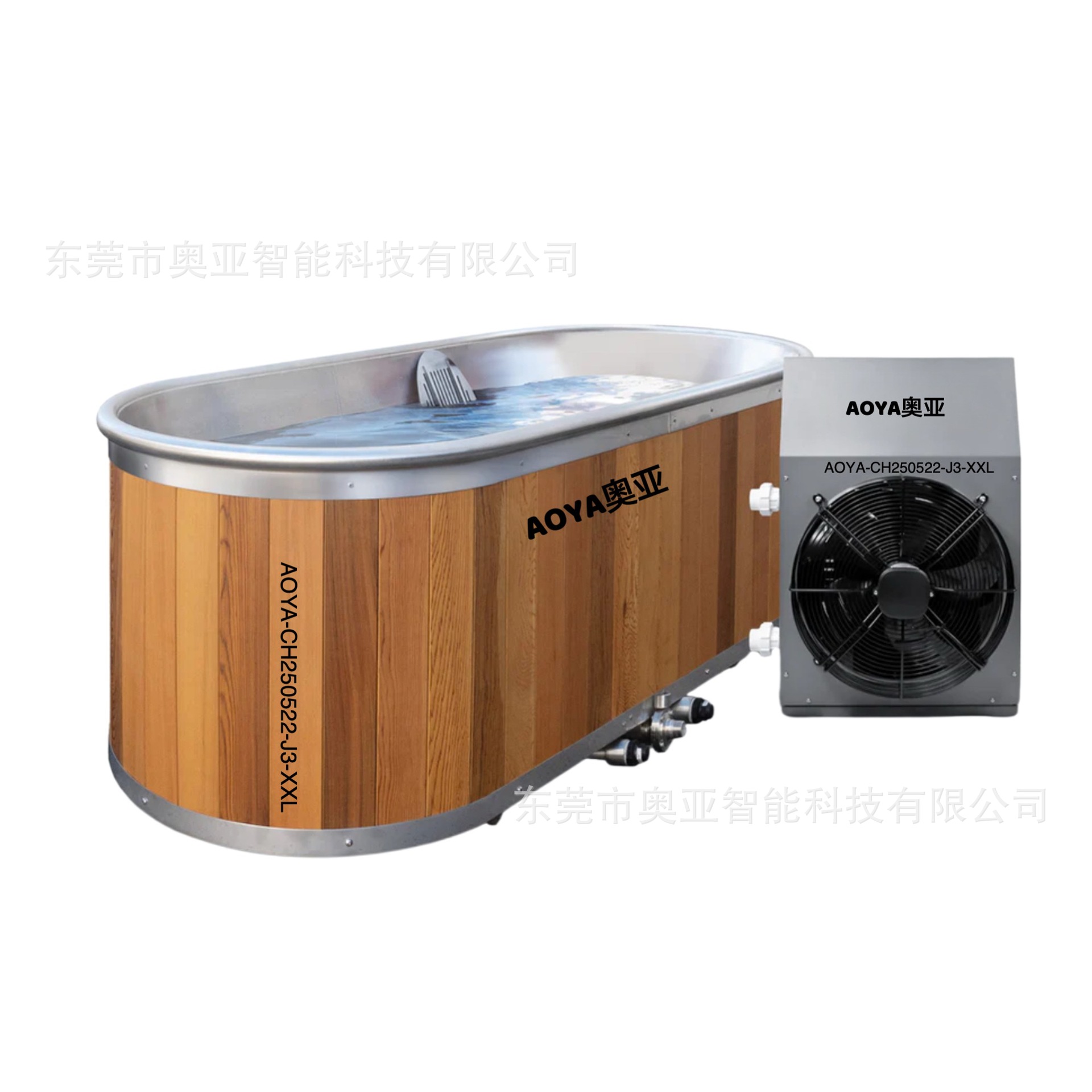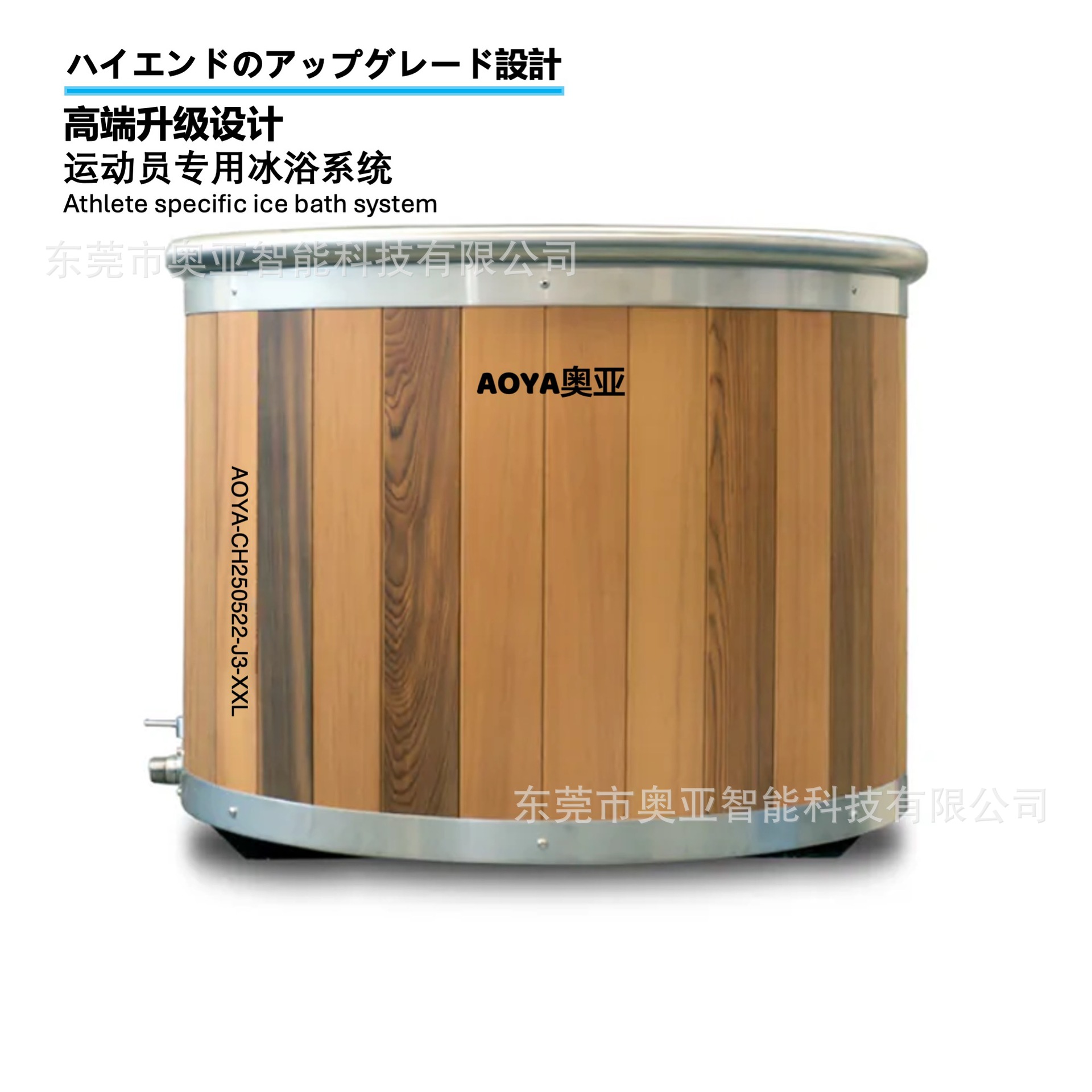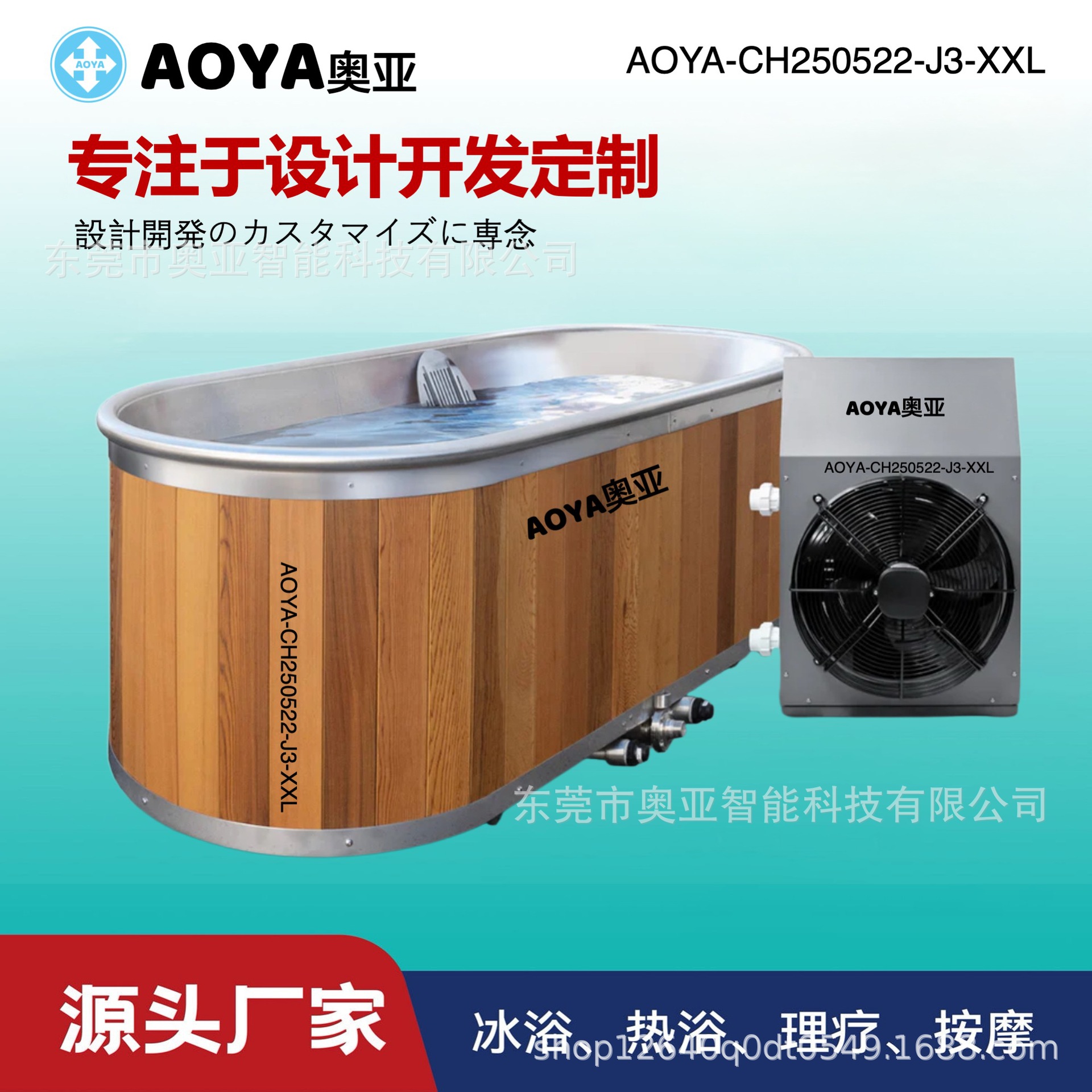 东莞市奥亚智能科技有限公司,主要开发设计运动员专用冰浴制冷设备浴缸,浴缸主要进口原木和不锈钢316材质组合合成,内部具有完善的冷却制冰系统,和低温水质循环系统,包括电压控制系统,手机控制系统和水质优化系统,完全按照运动员需求设计,