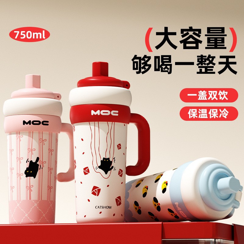 Керамическая чашка-термос для девочек, новинка 2025 года, чашка для льда, большая чашка для воды, гигантская соломенная чашка