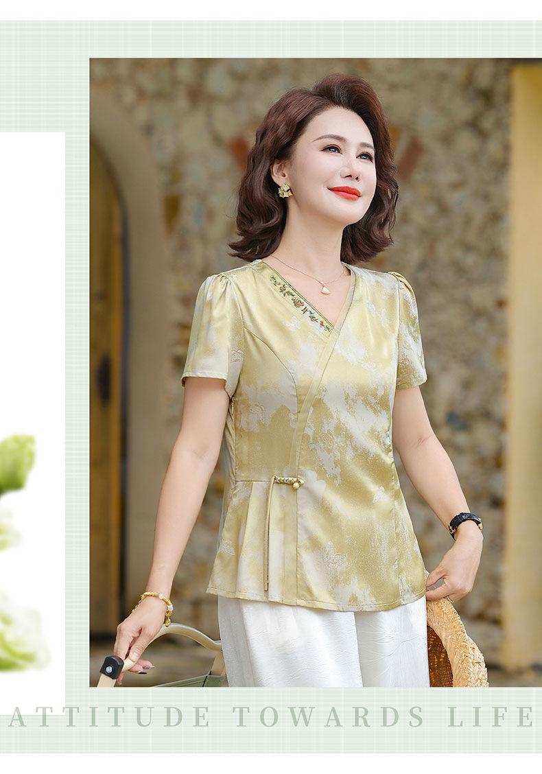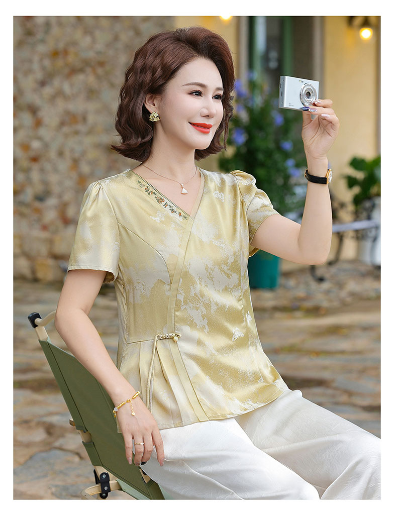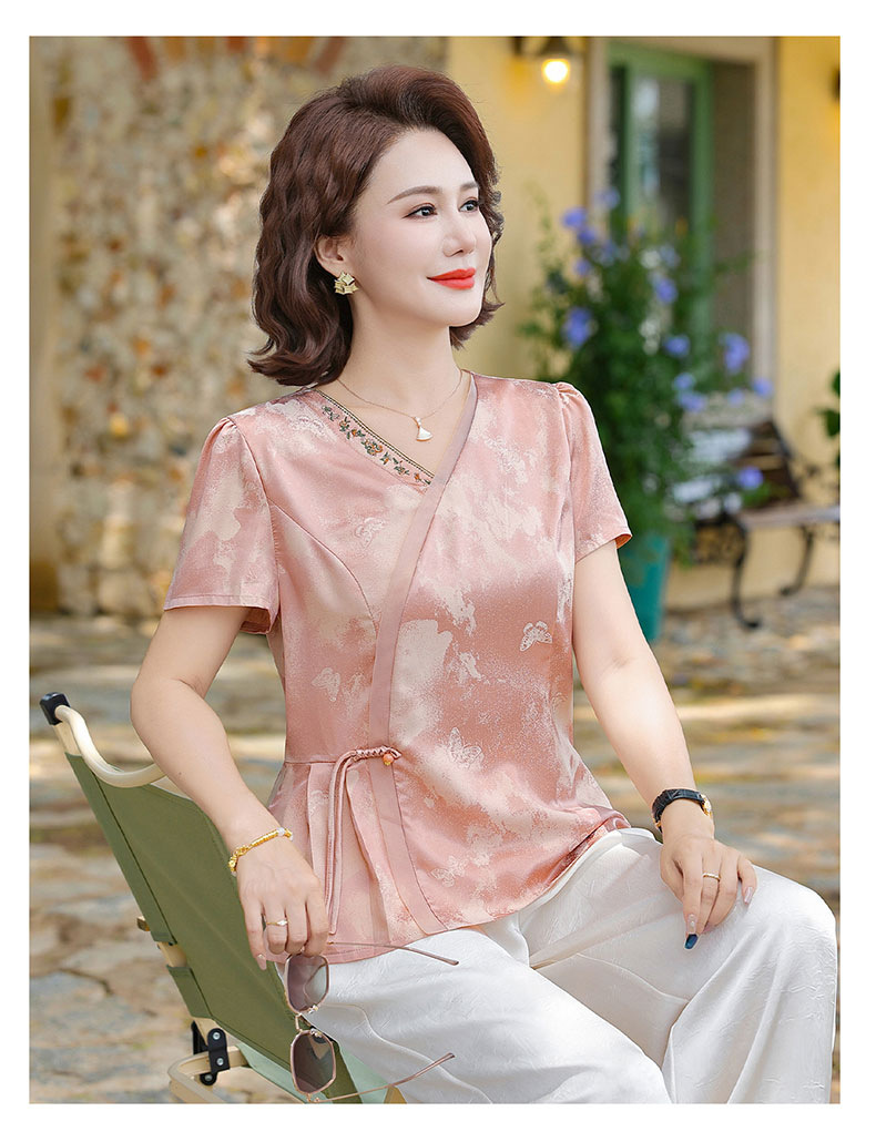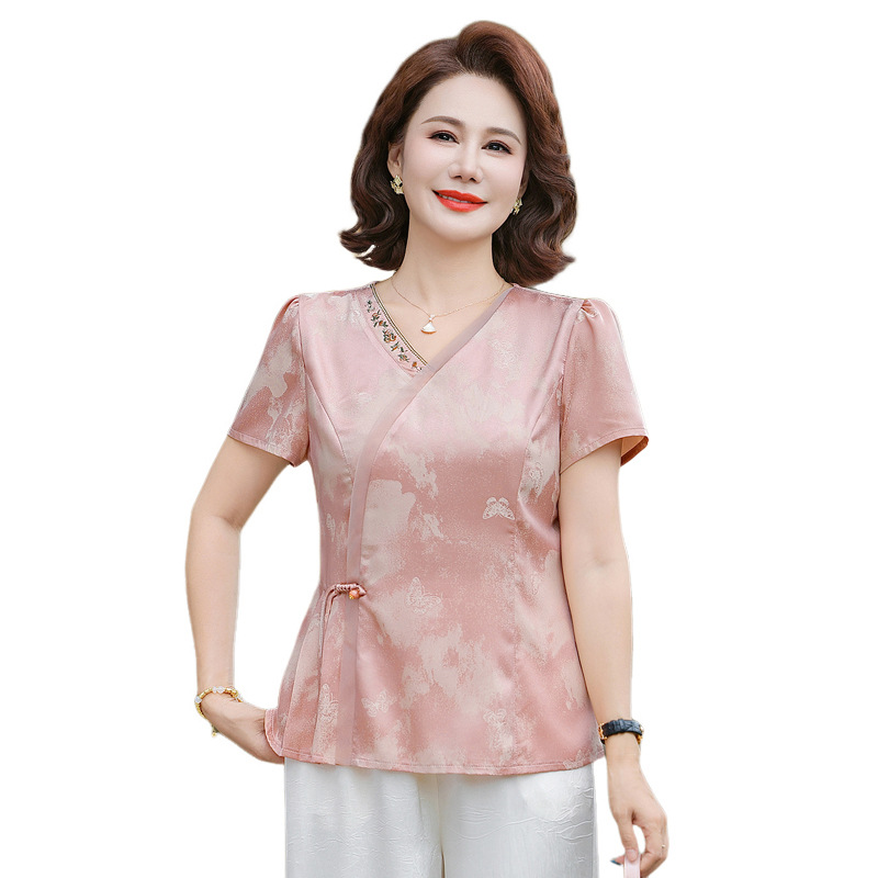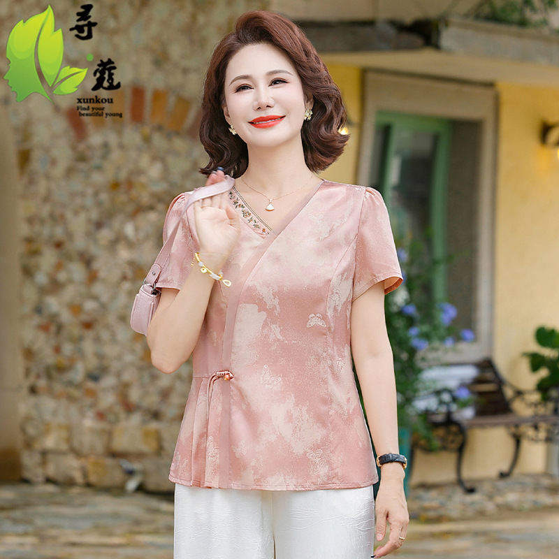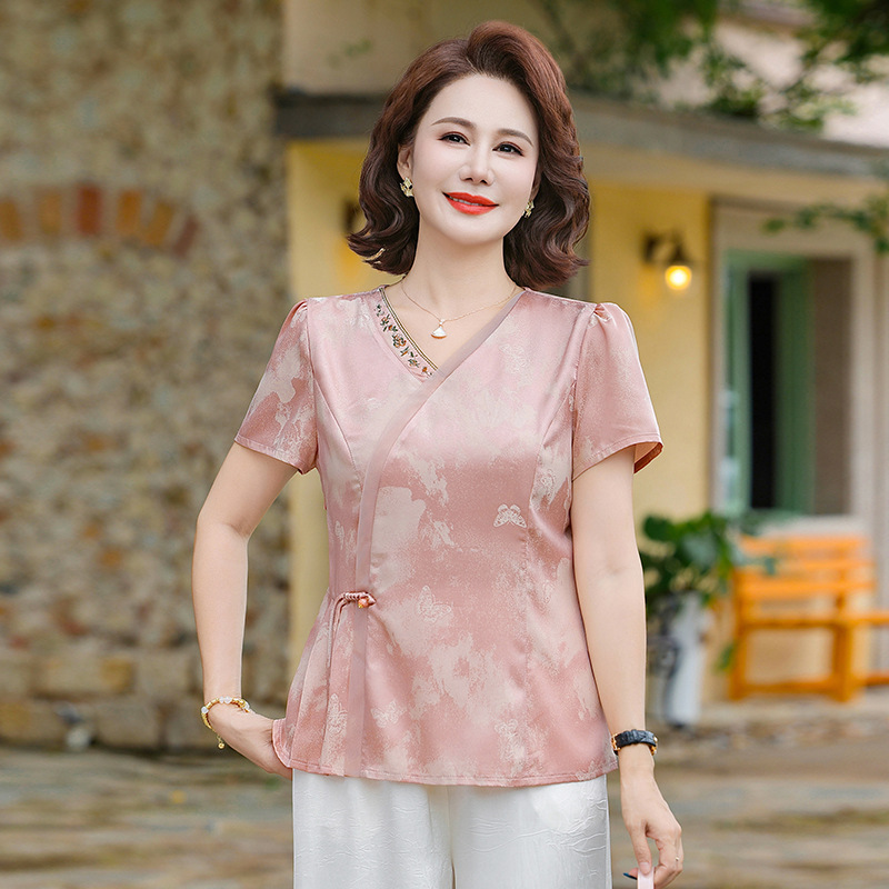 Модные вышитые летние топы для женщин среднего и старшего возраста, летняя одежда в китайском стиле для женщин среднего возраста.