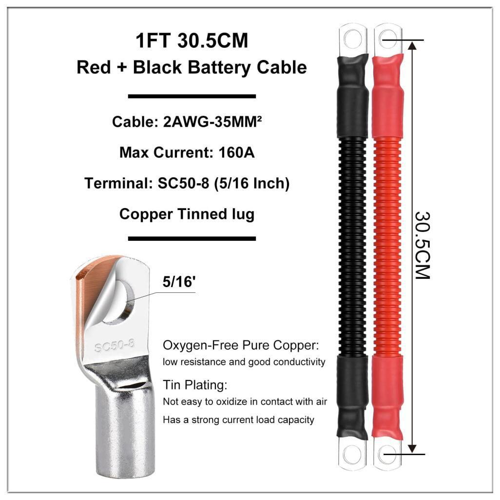 Проводка инвертора аккумулятора Морской силовой аккумуляторный кабель 2AWG 1FT 12 дюймов 30 см Аккумуляторный кабель
