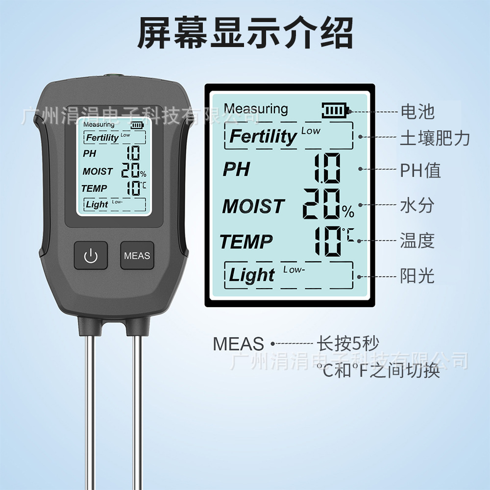 Двойной игольчатый тестер почвы 5-в-1 (не заряжен)