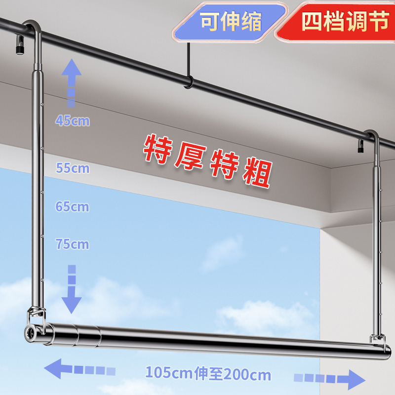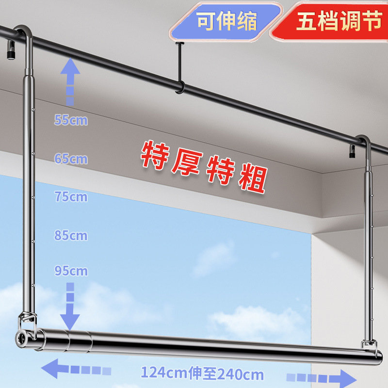 Выдвижная сушилка для одежды для домашнего балкона, регулируемая штанга для одежды, подвесная стойка из нержавеющей стали, инструмент для сушки одеял без сверления.