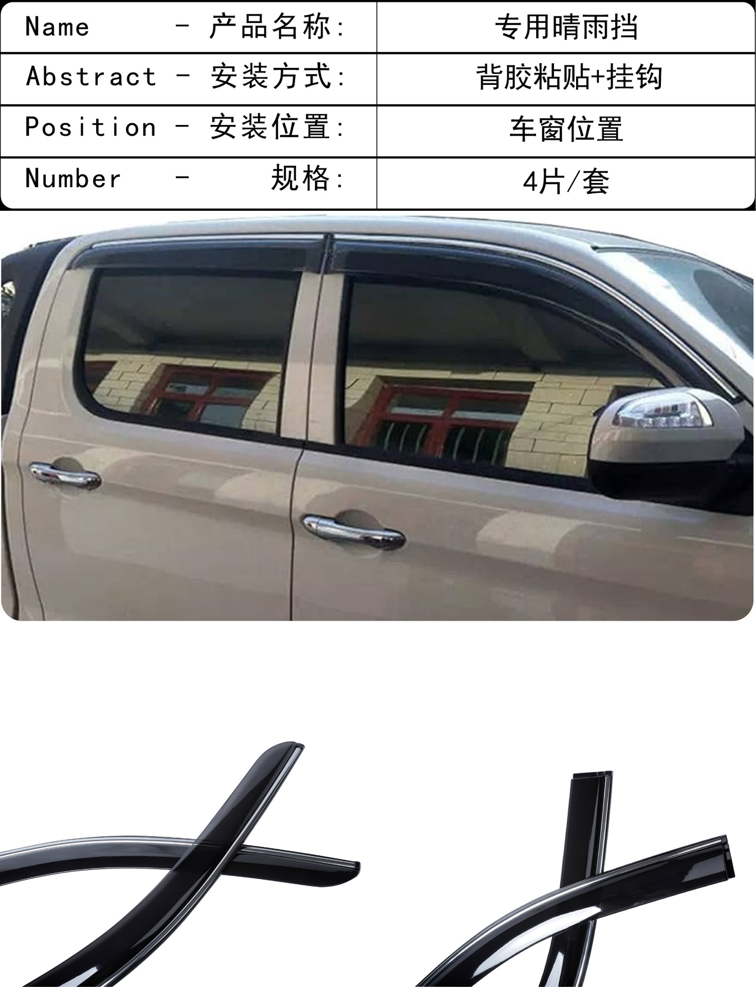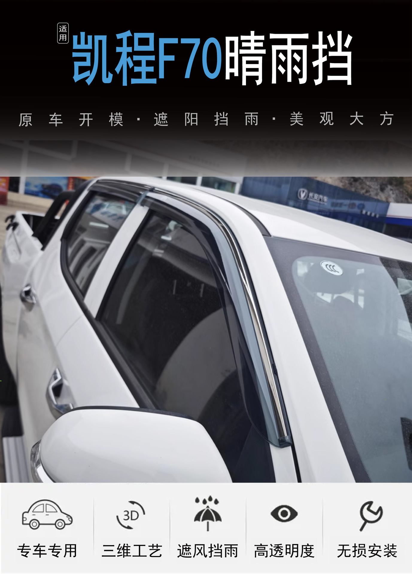 Применимый за рубежом 2020 Changan Kaicheng F70, оконный дождевик, 4-х предметный акриловый дождевик для пикапа, автомобильный дождевик