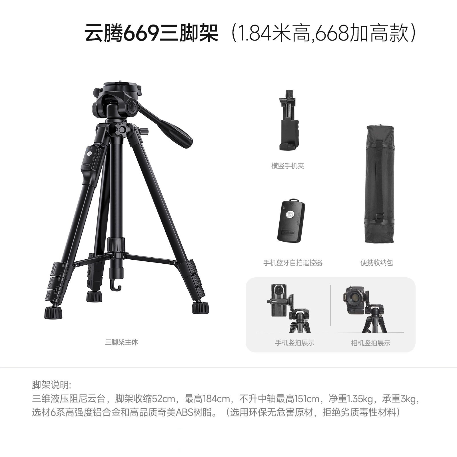 抖音直播vlog视频相机支架云腾669 211N三脚架手机蓝牙自拍三角架
