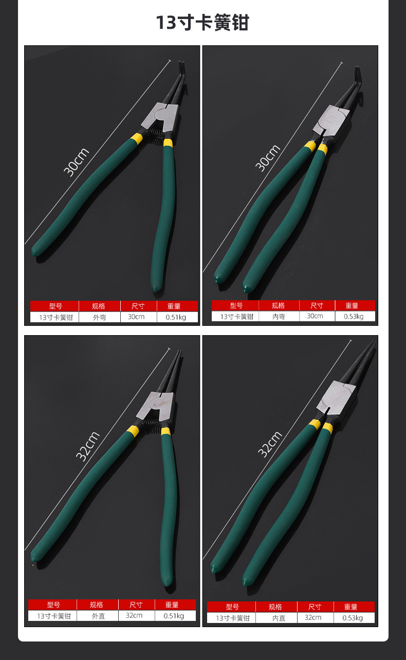 7inch Плоскогубцы для стопорных колец, внутренний изгиб; 7inch Клещи для стопорных колец, прямые; 7inch Плоскогубцы для стопорных колец, изогнутые наружу; 7inch Клещи для стопорных колец, прямые; 9inch Плоскогубцы для стопорных колец, внутренний изгиб; 9inch Клещи для стопорных колец, прямые; 9inch Плоскогубцы для стопорных колец, изогнутые наружу; 9inch Клещи для стопорных колец, прямые; 13inch Плоскогубцы для стопорных колец, внутренний изгиб; 13inch Клещи для стопорных колец, прямые; 13inch Плоскогубцы для стопорных колец, изогнутые наружу; 13inch Клещи для стопорных колец, прямые