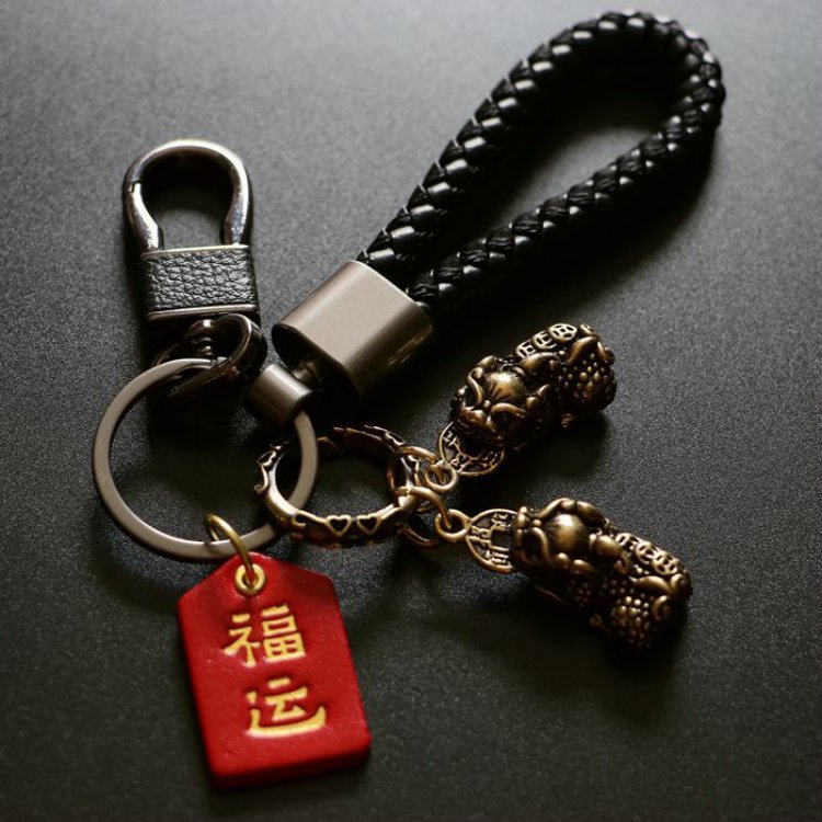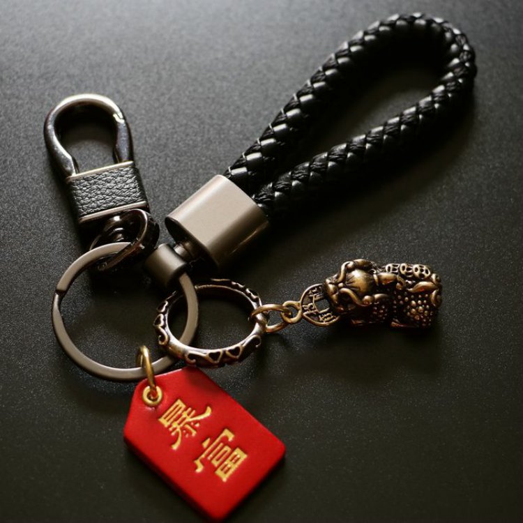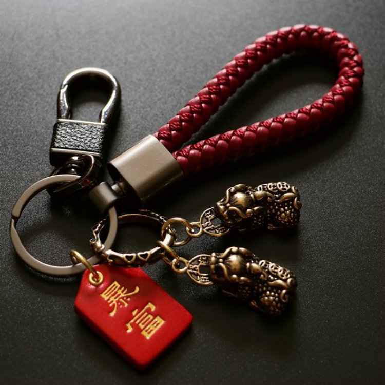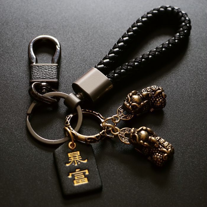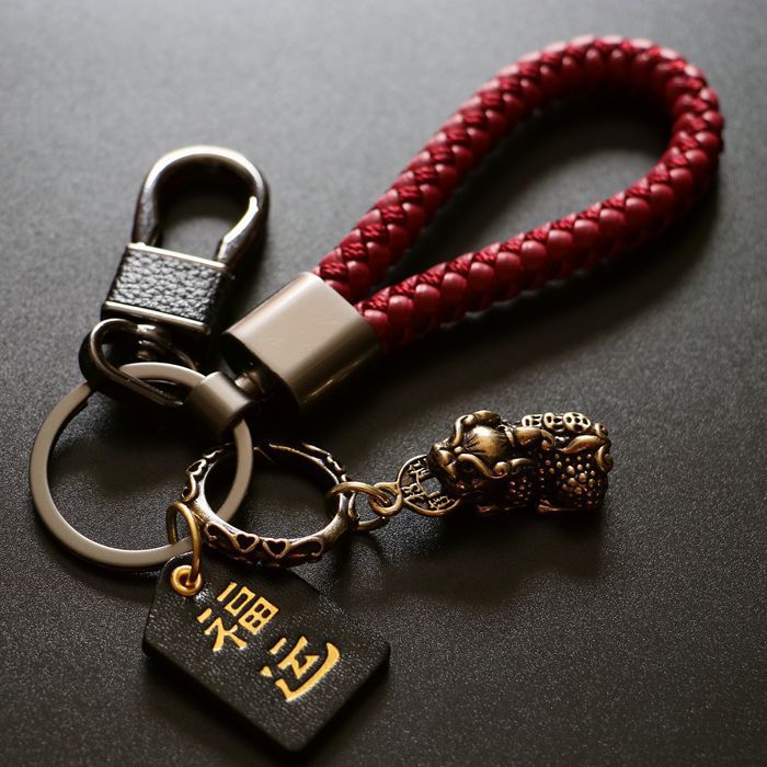 Брелок для ключей из латуни с изображением Пиксиу, креативный персонализированный подарок, плетеный шнур, мужской и женский брелок для ключей от машины, кольцо для ключей