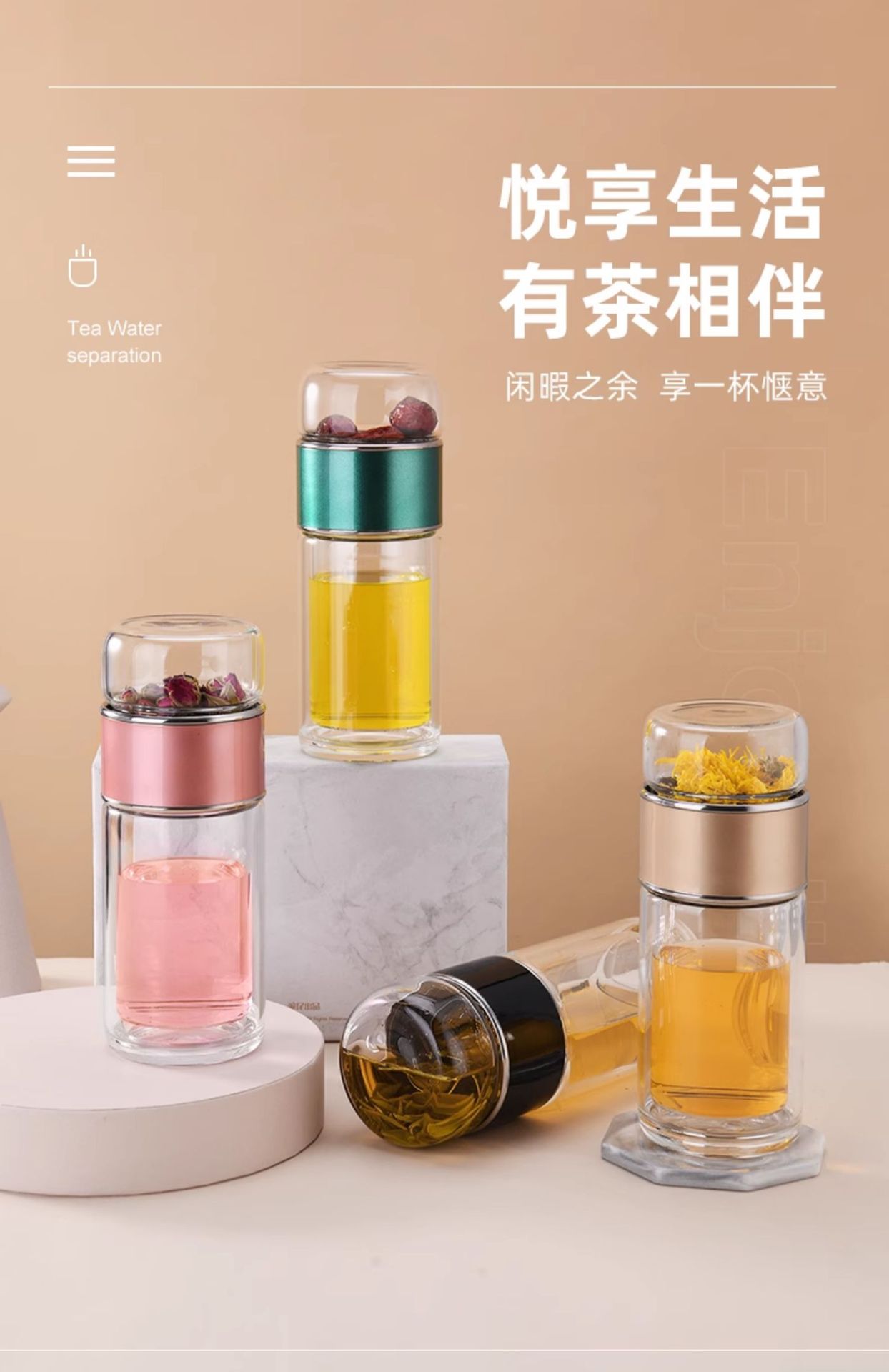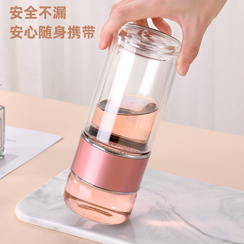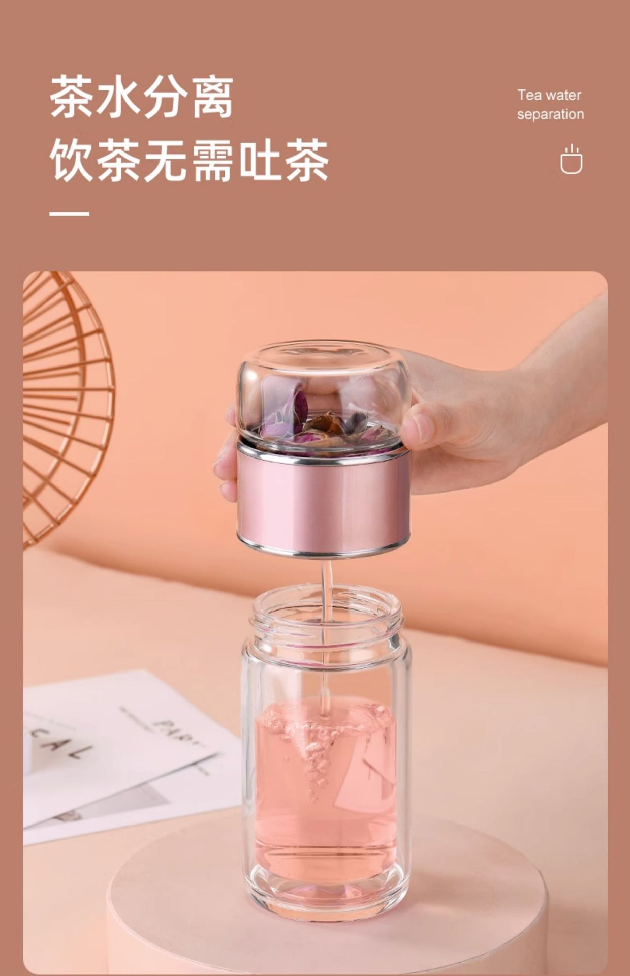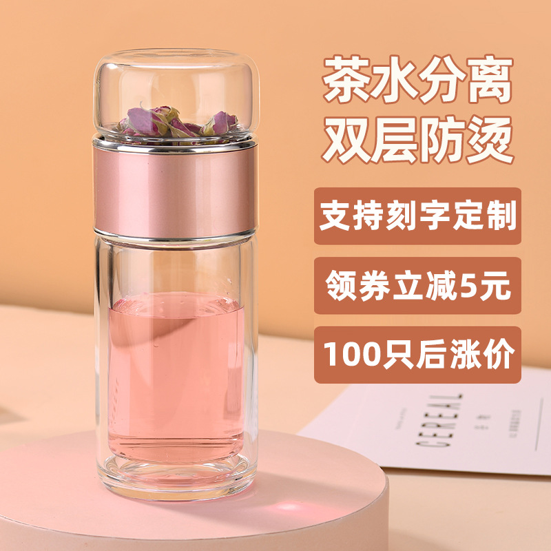 Двухслойная стеклянная утолщенная высококачественная чашка для чая и воды с разделением, портативная женская кружка с гравировкой