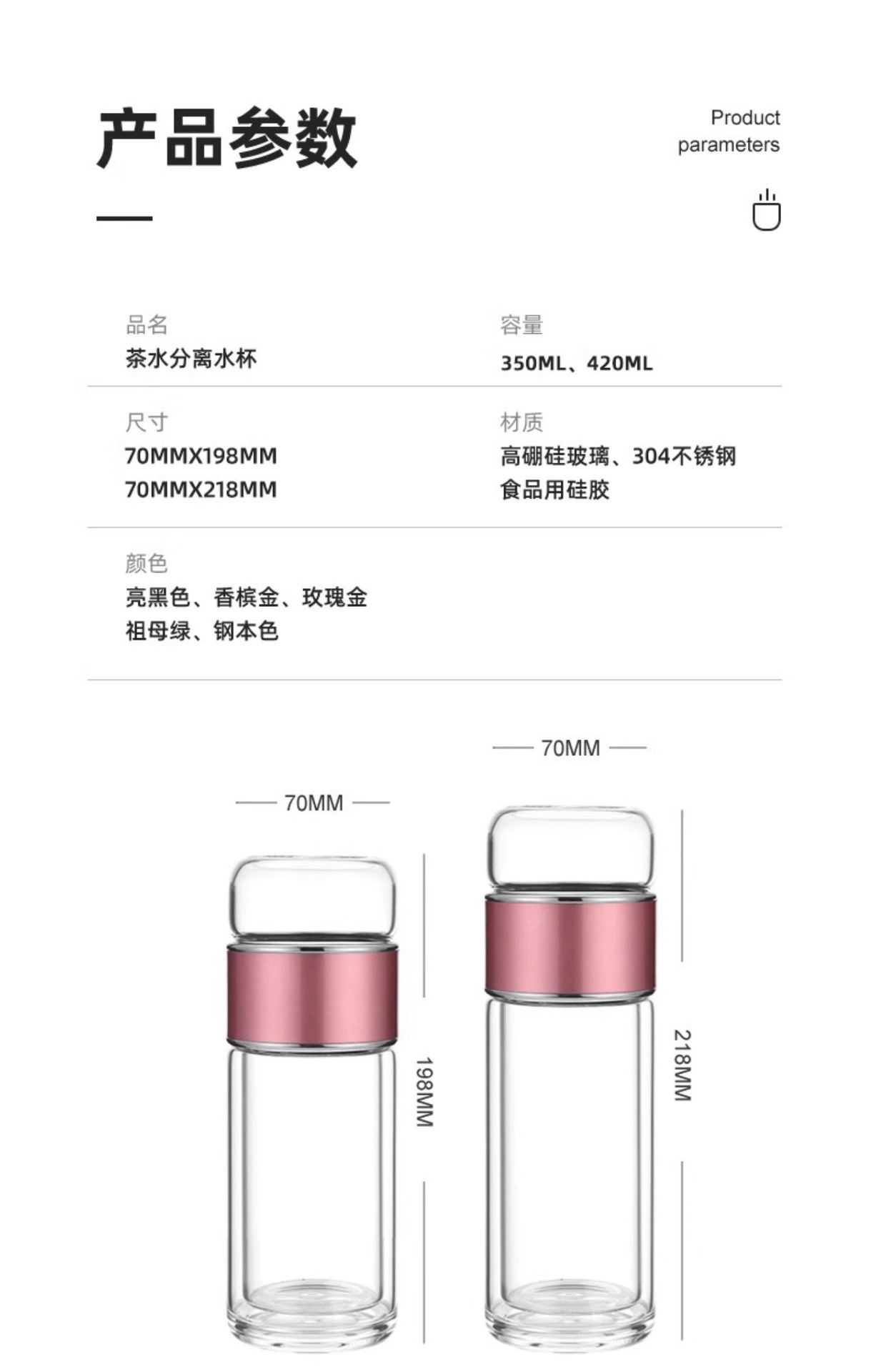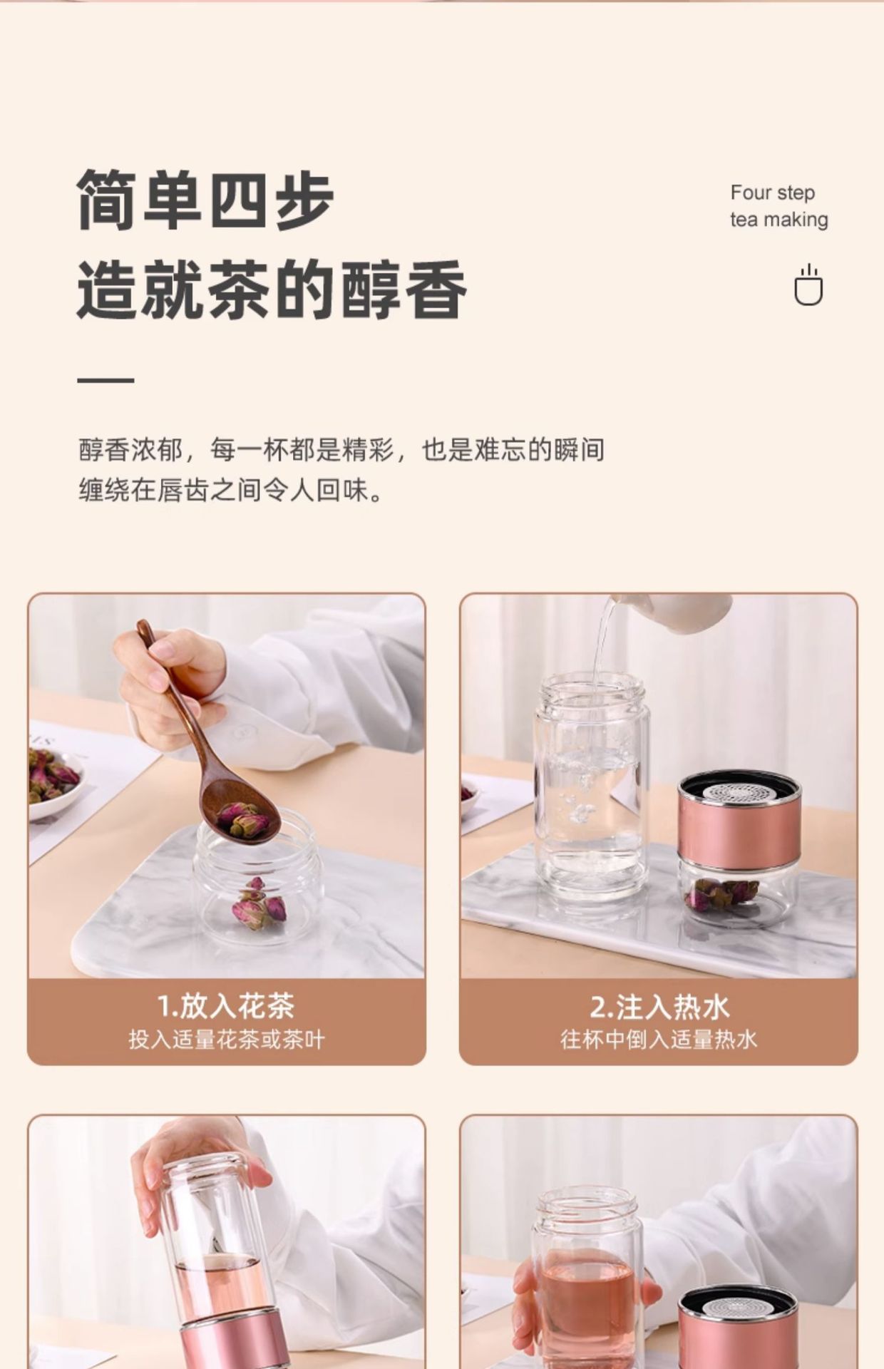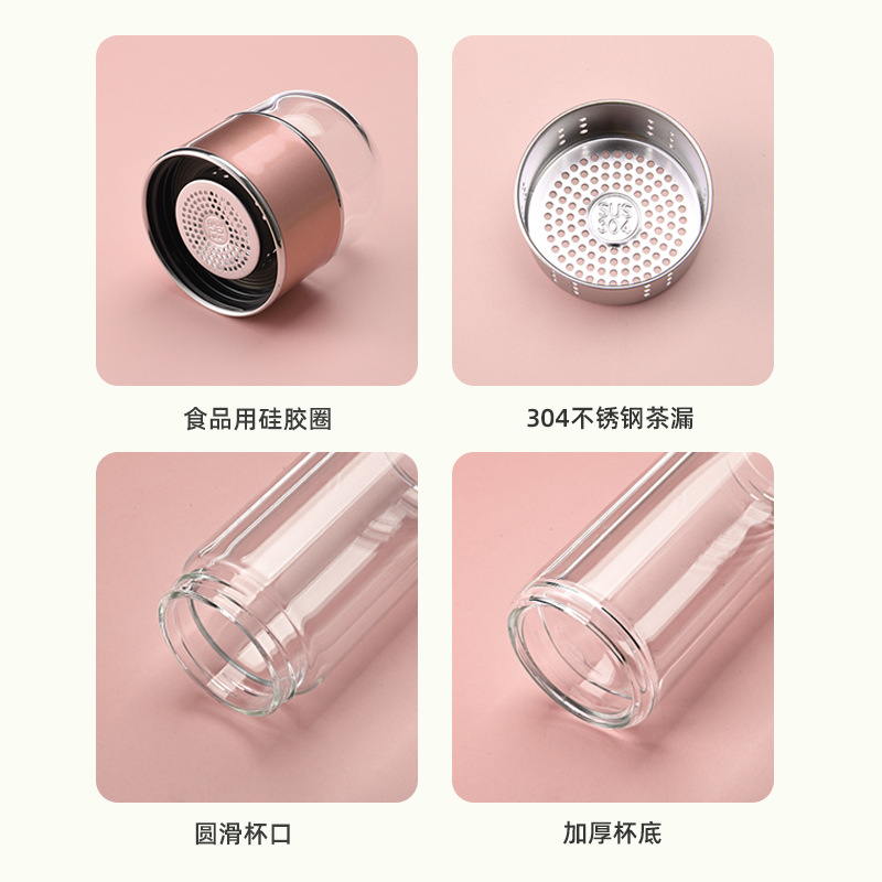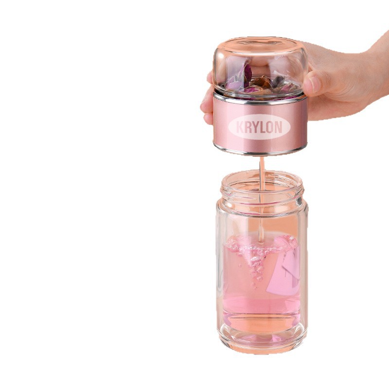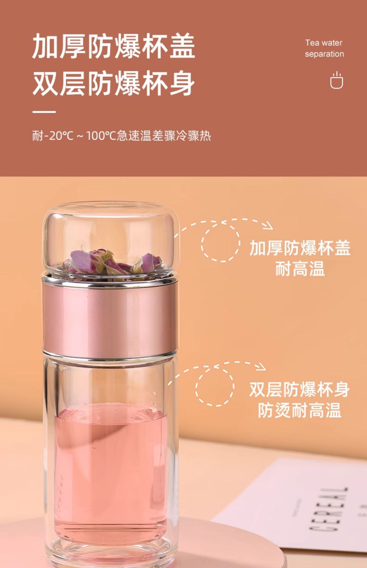 Двухслойная стеклянная утолщенная высококачественная чашка для чая и воды с разделением, портативная женская кружка с гравировкой