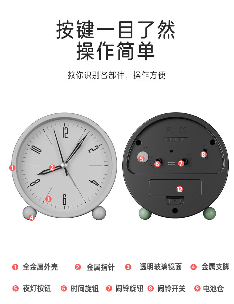 Будильник для студентов, новая модель 2024 года, прикроватный мини-будильник, детские часы, аналог Amazon, хит продаж для трансграничной торговли