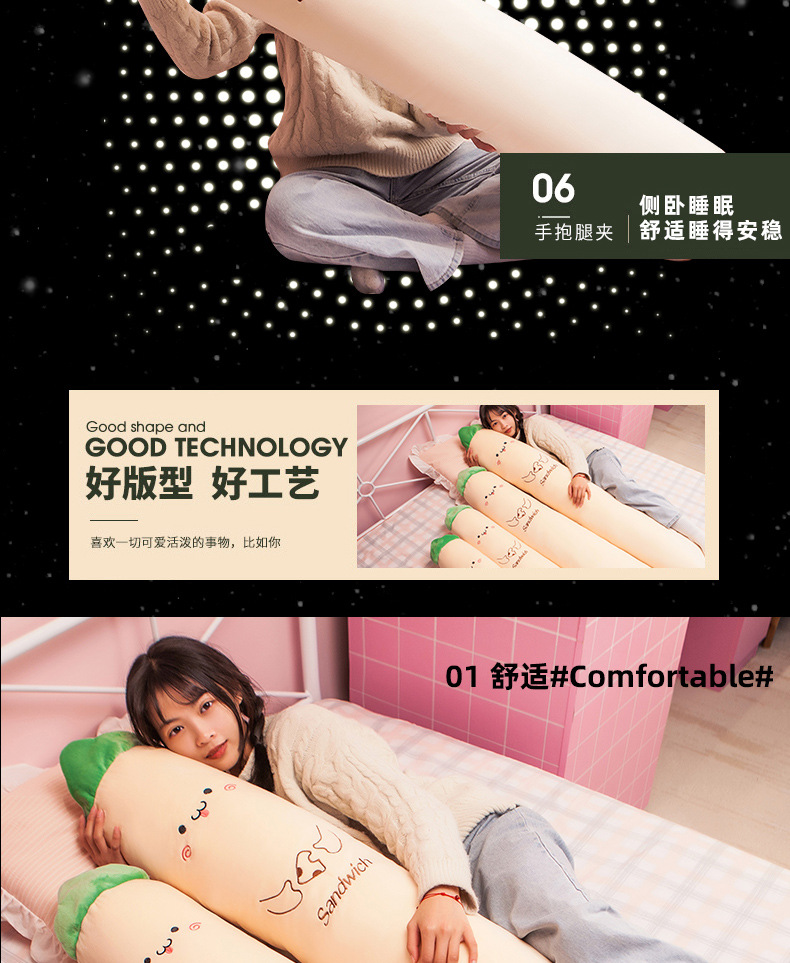 Милая длинная подушка для девочек, чтобы спать на боку со сложенными ногами для мальчиков, для спальни беременных женщин, спящих на подушке на кровати