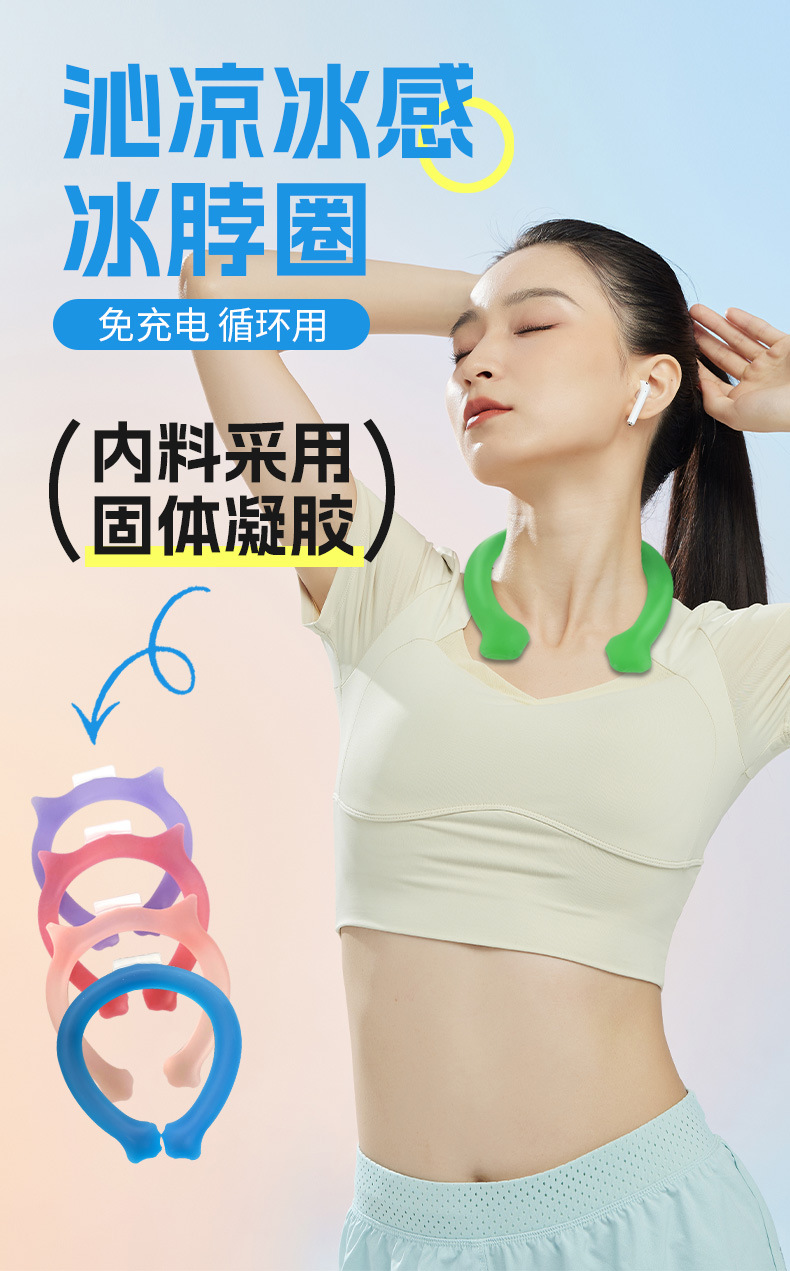 Лето 2025, однотонный гель, герметичный ледяной воротник, долговечное охлаждающее охлаждающее кольцо, ледяное кольцо, трансграничное охлаждающее кольцо