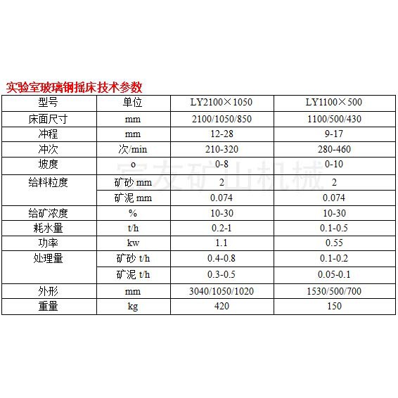 摇床面结构有矿砂和矿泥,材质有玻璃钢和铝合金。