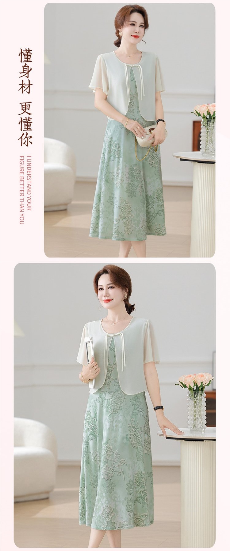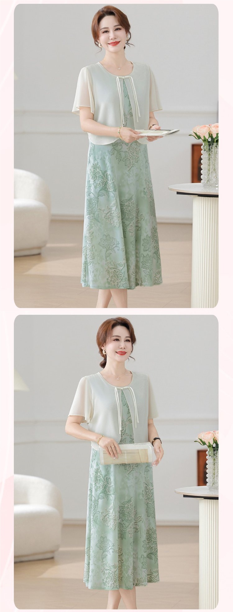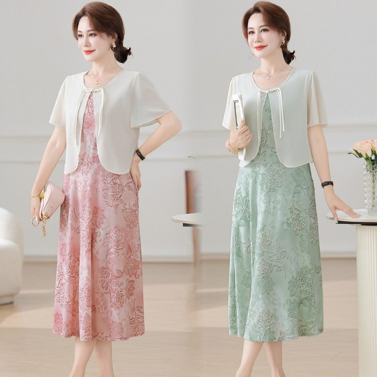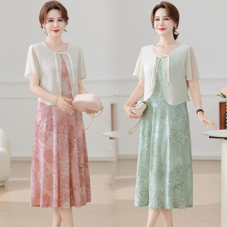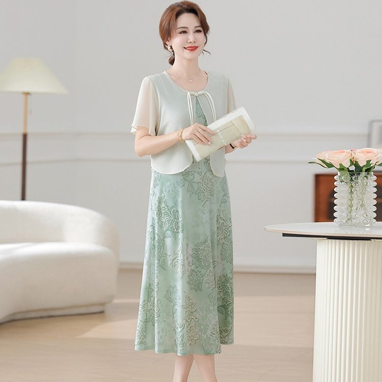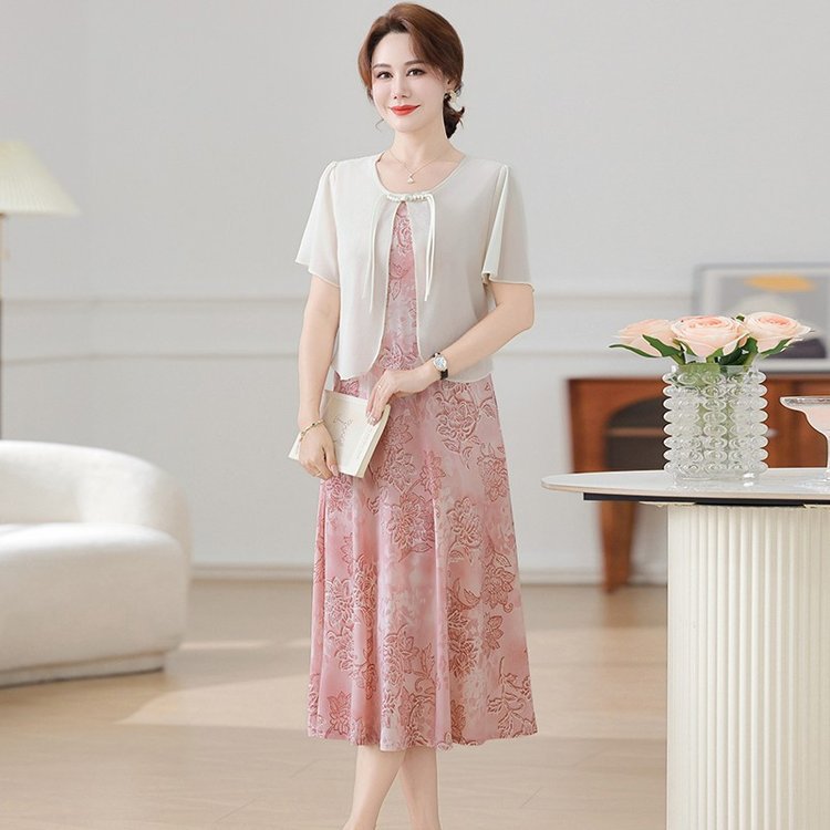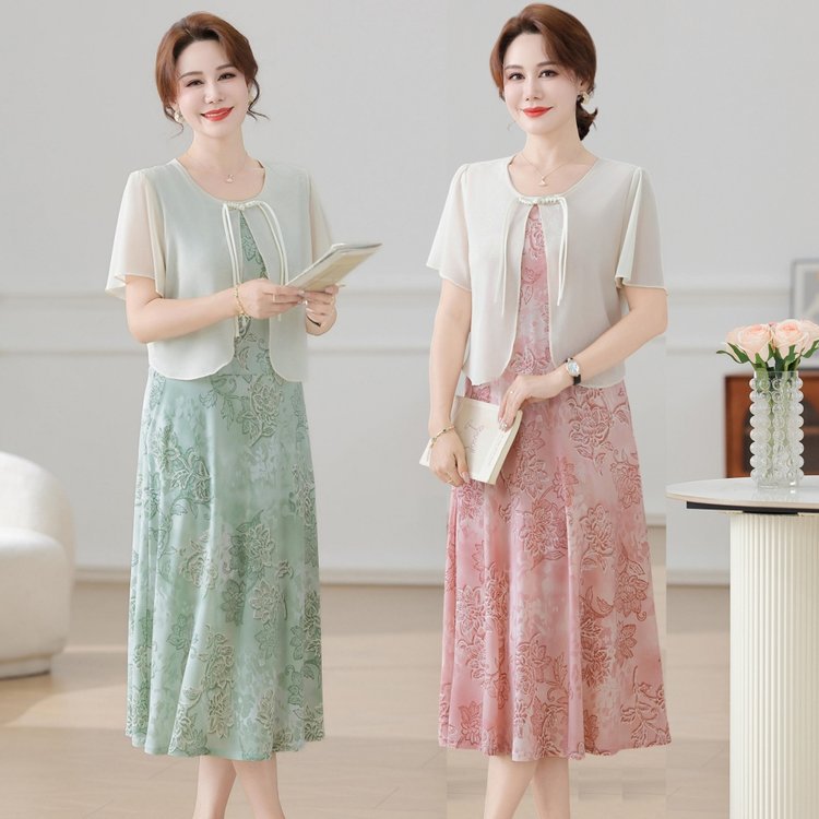 Летнее платье для мамы 2025, новинка для женщин среднего и старшего возраста, модная шифоновая юбка средней длины с завышенной талией, универсальная юбка