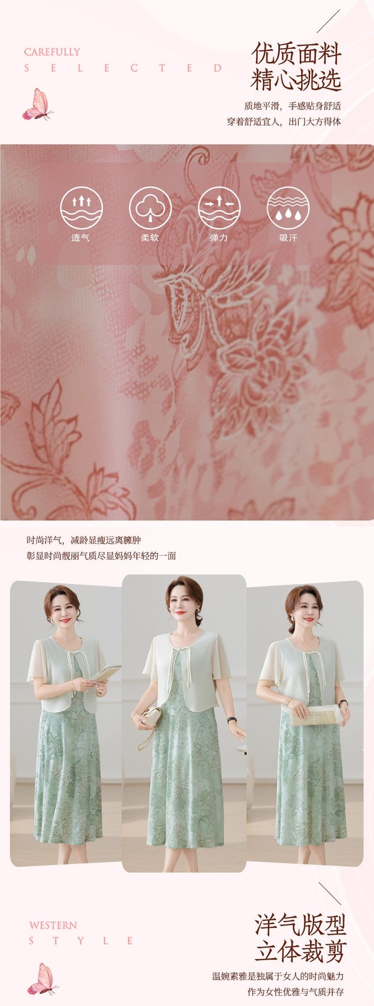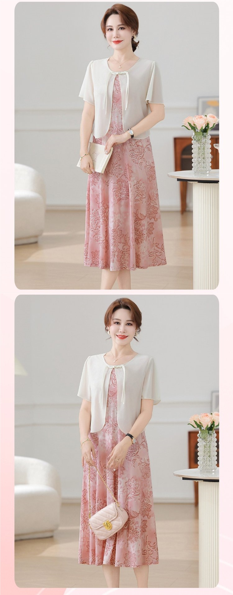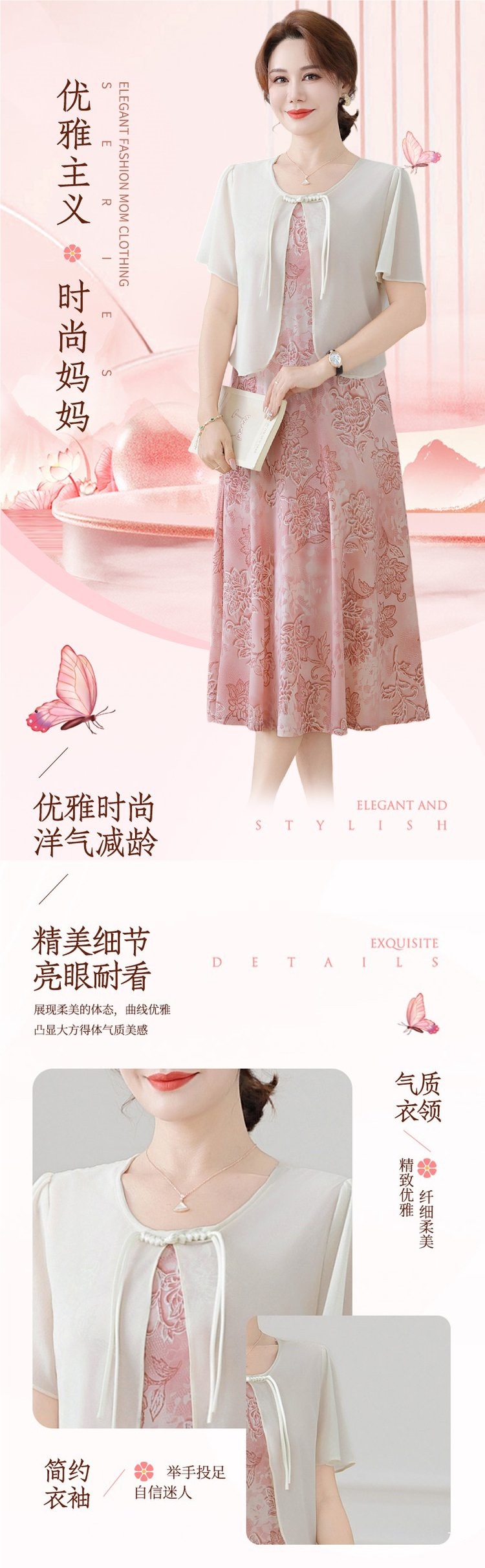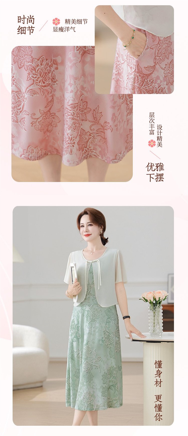 Летнее платье для мамы 2025, новинка для женщин среднего и старшего возраста, модная шифоновая юбка средней длины с завышенной талией, универсальная юбка
