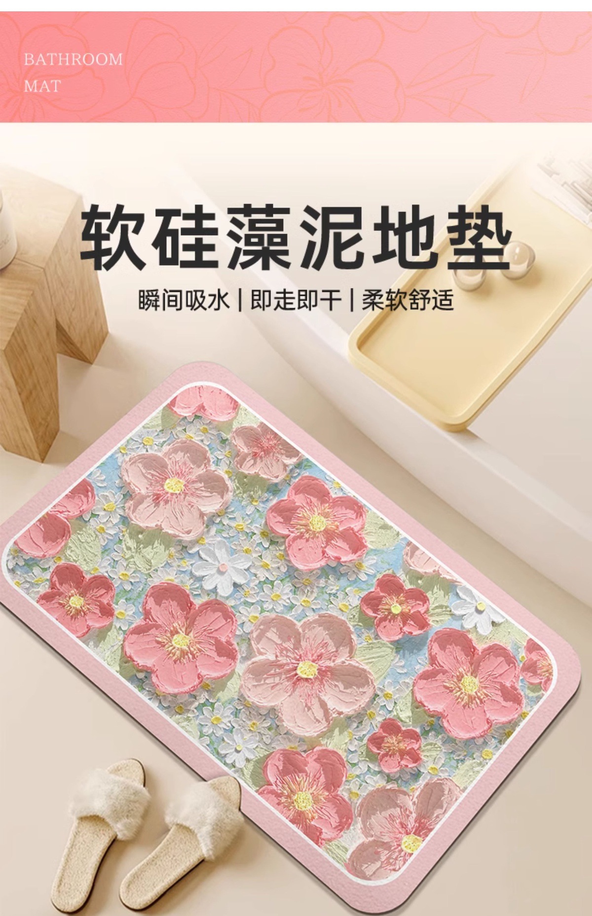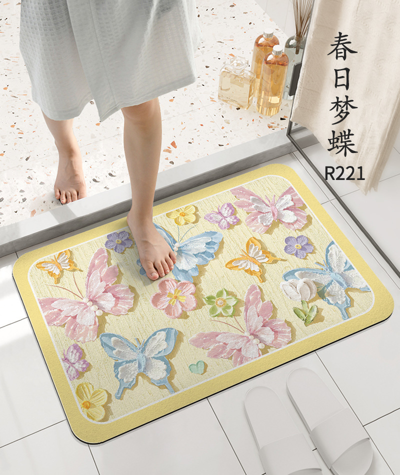 Быстросохнущий мягкий коврик для ванной комнаты из диатомовой грязи, впитывающий нескользящий коврик для туалета, двери, маленький ковер