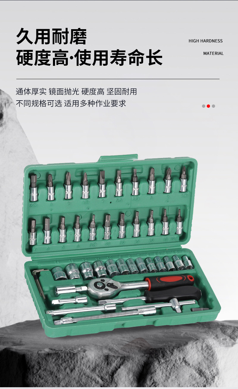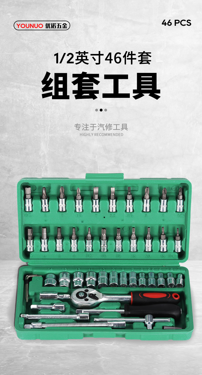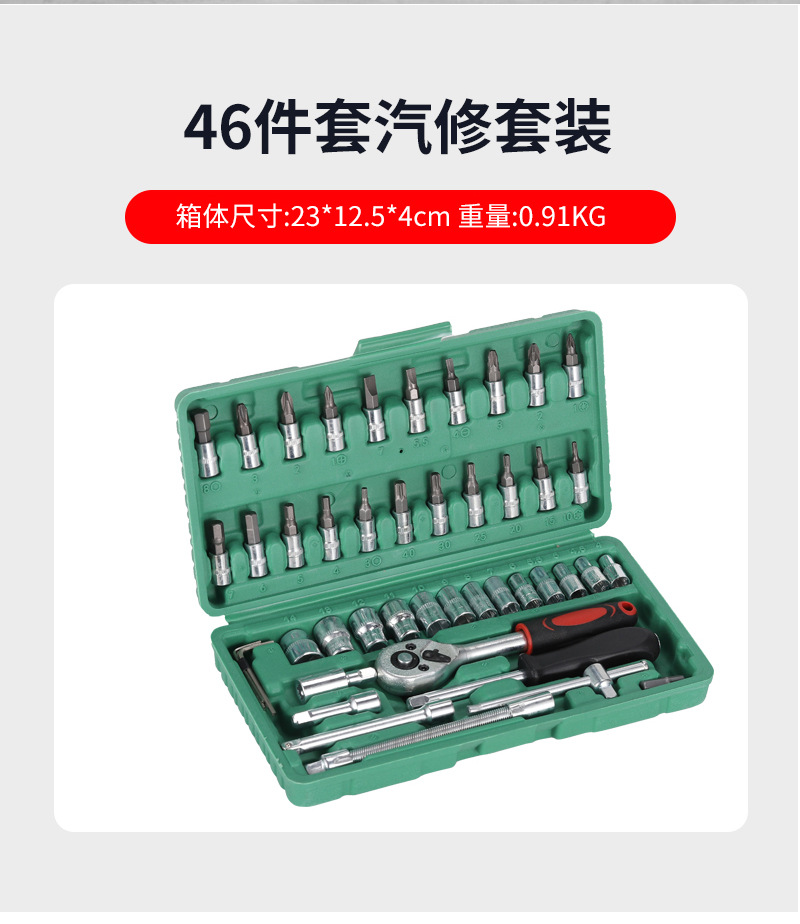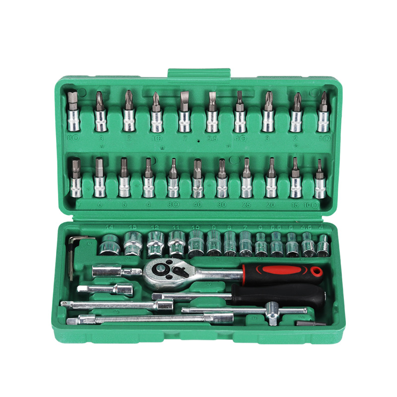 Оцинкованный набор гаечных ключей с трещоткой, 46 предметов, в кейсе, для ремонта мотоциклов и автомобилей, многофункциональный набор инструментов