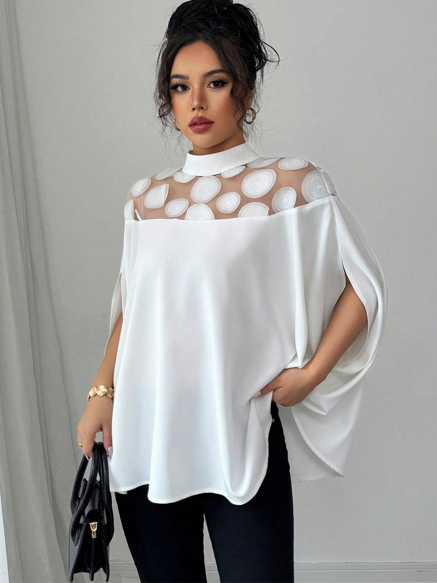Трансграничная рубашка Amazon в европейском и американском стиле, новая летняя рабочая одежда 2025 года, свободная сетчатая рубашка с открытыми плечами для женщин YDX1119