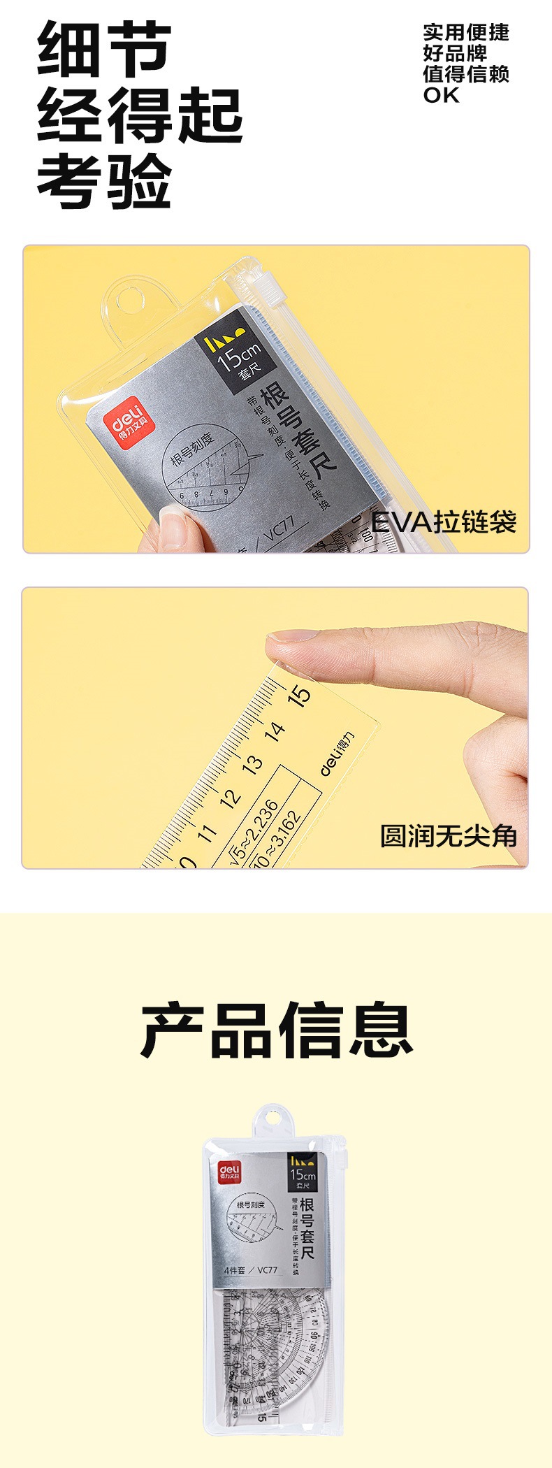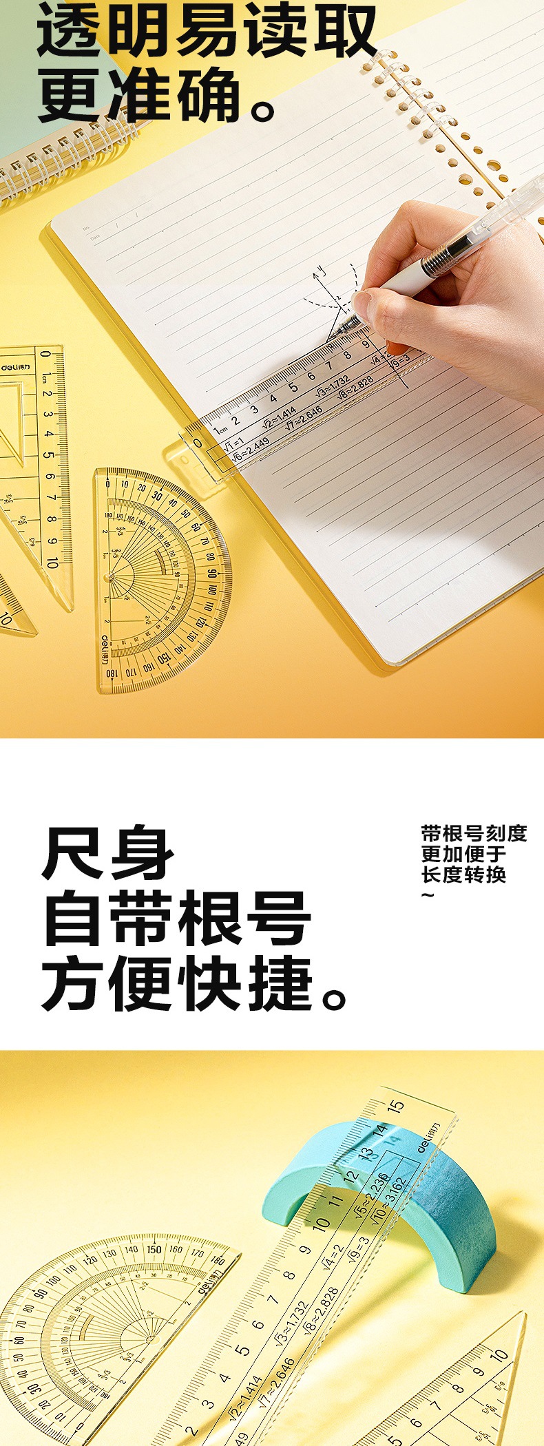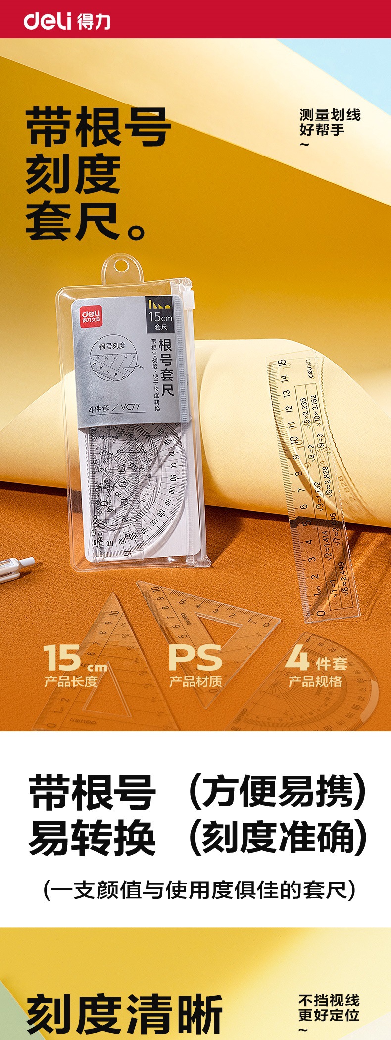 Набор линеек квадратного корня Deli VC77 (прозрачный) (набор)
