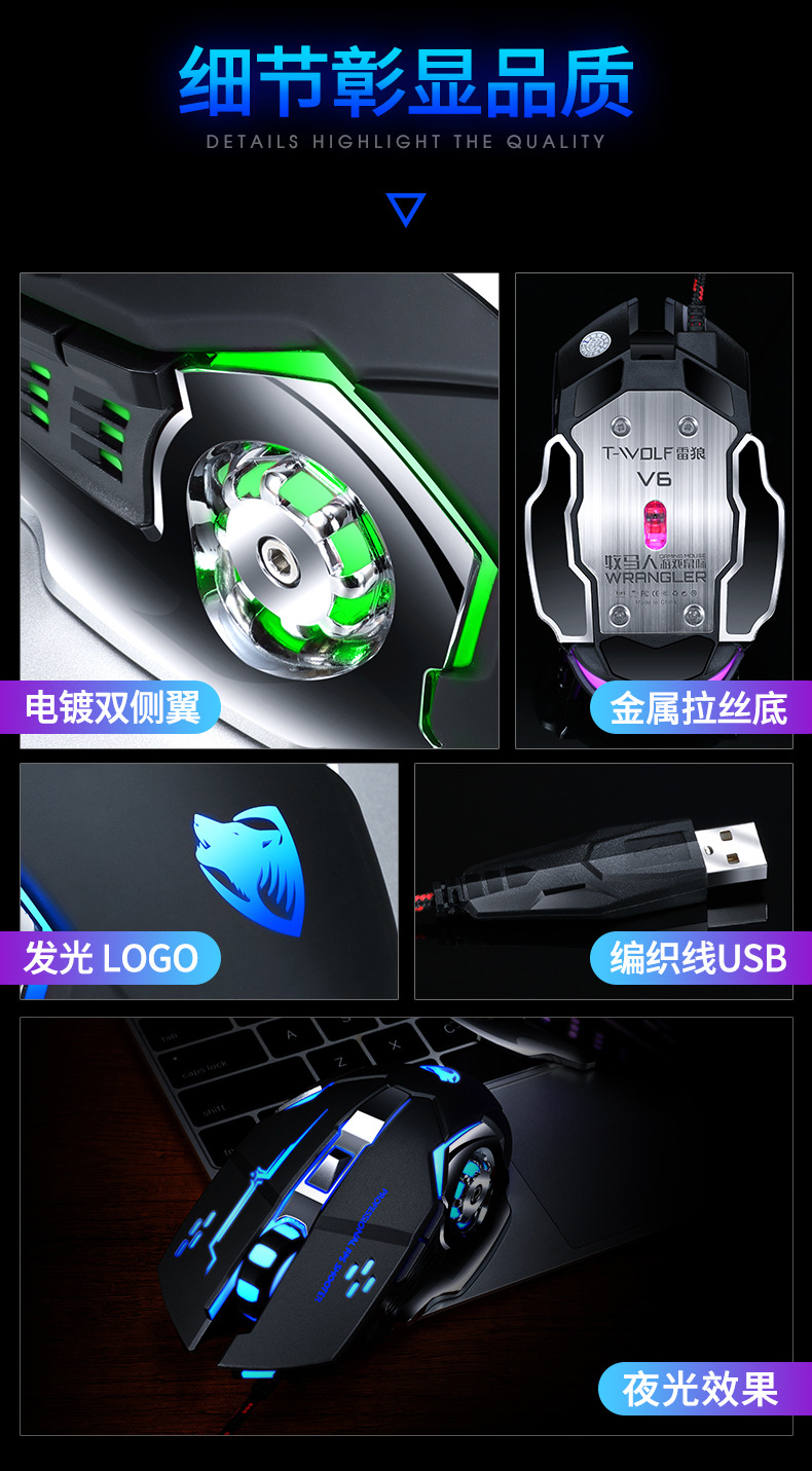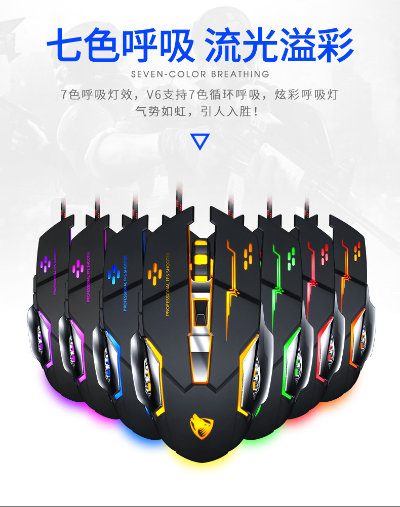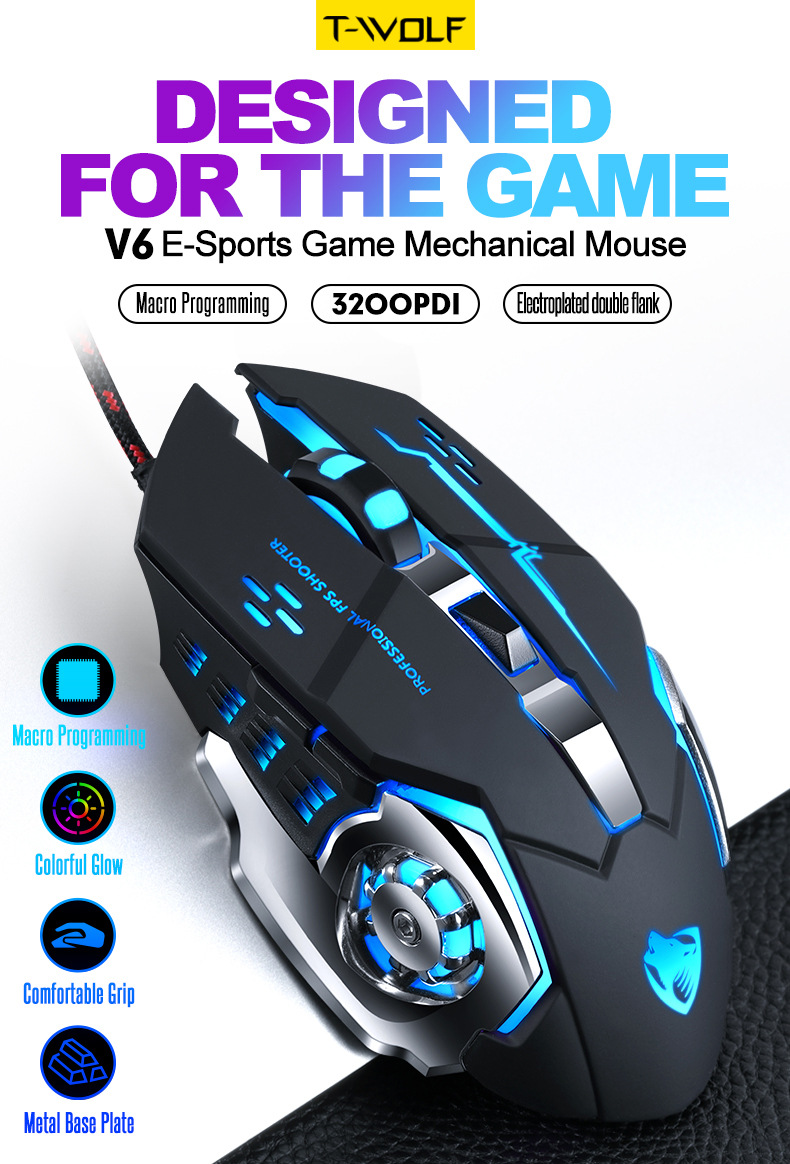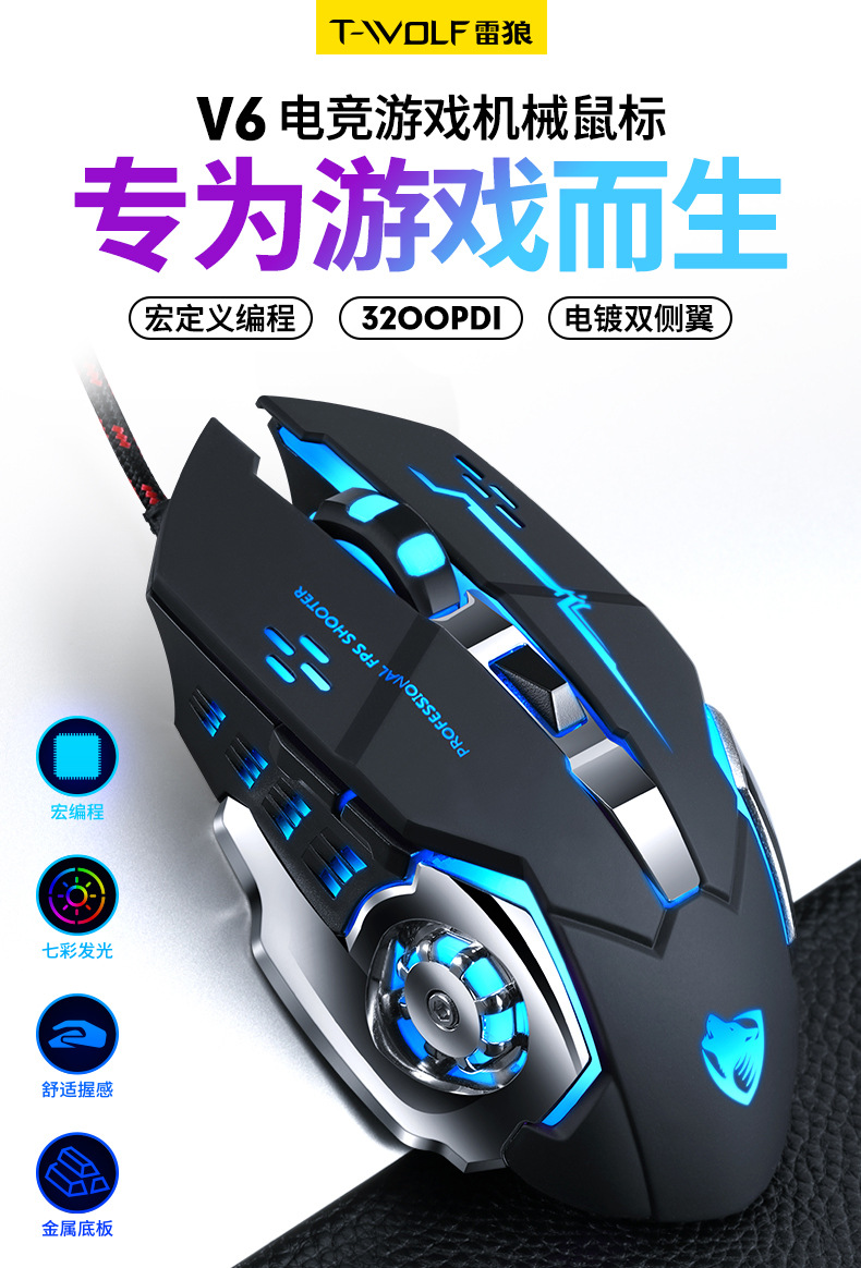 Механическая игровая мышь Cross-border Thunder Wolf V6, программирование макросов, мышь для киберспорта, пресс-пистолет Amazon, оптовая продажа
