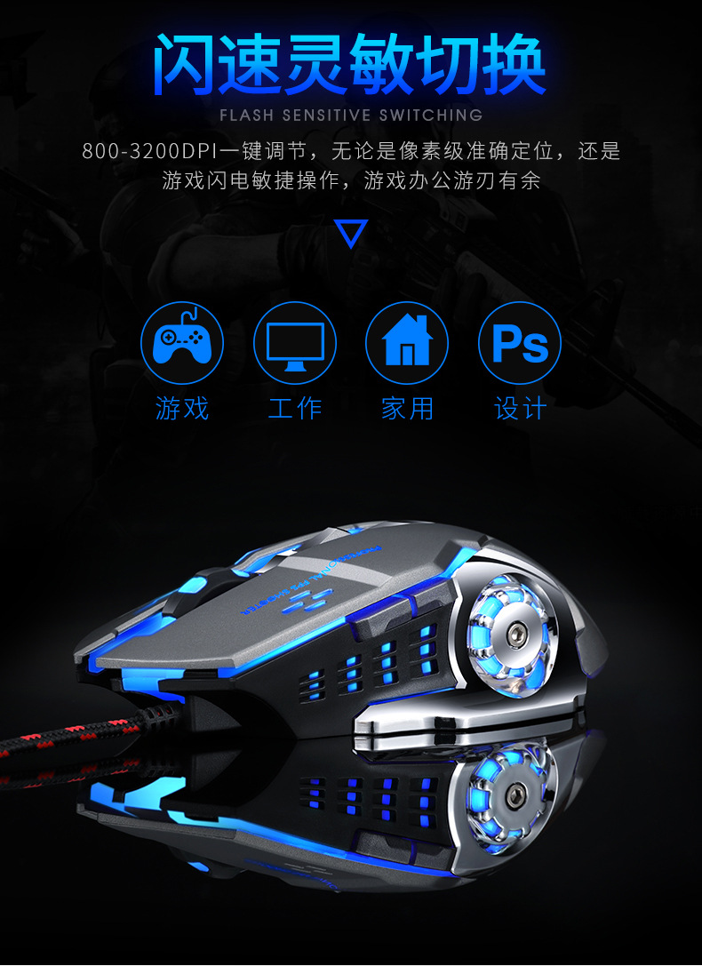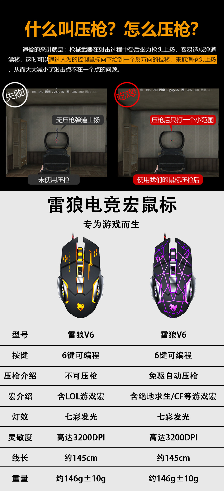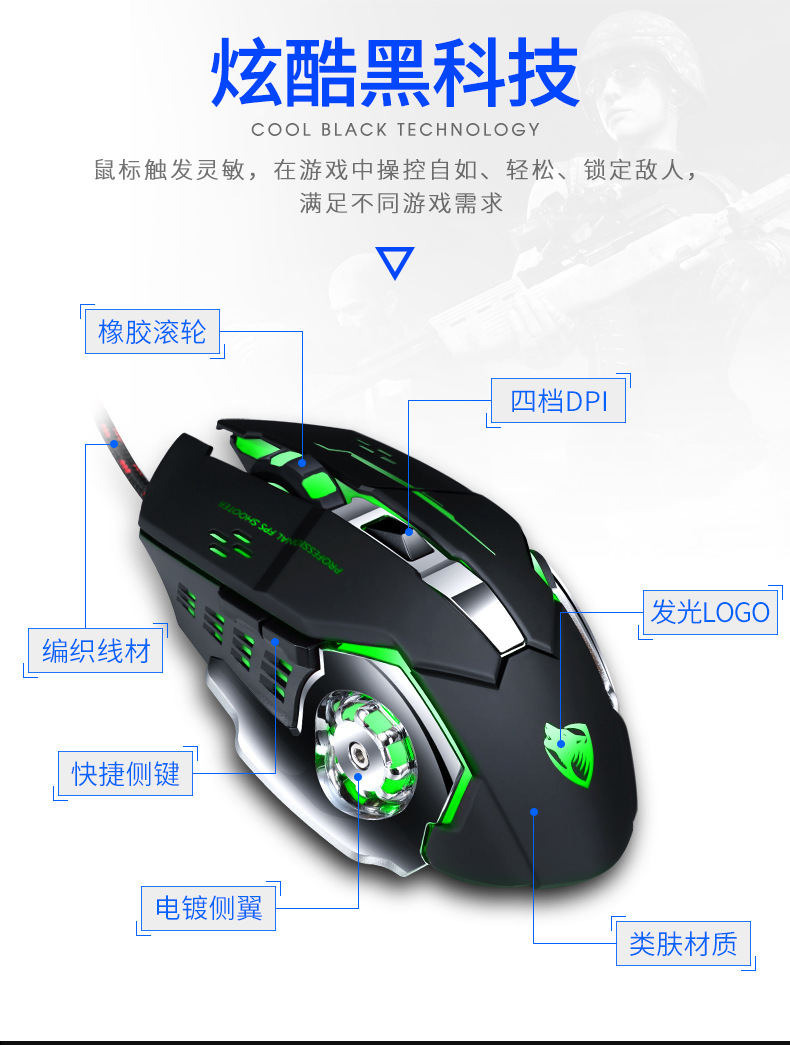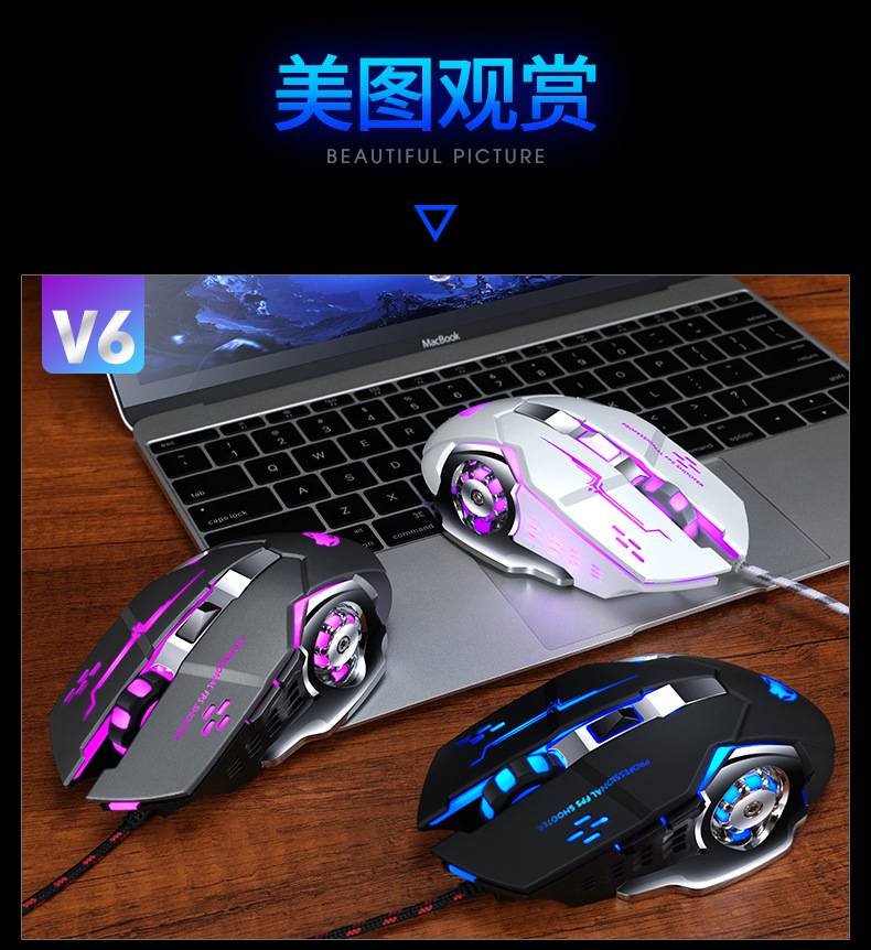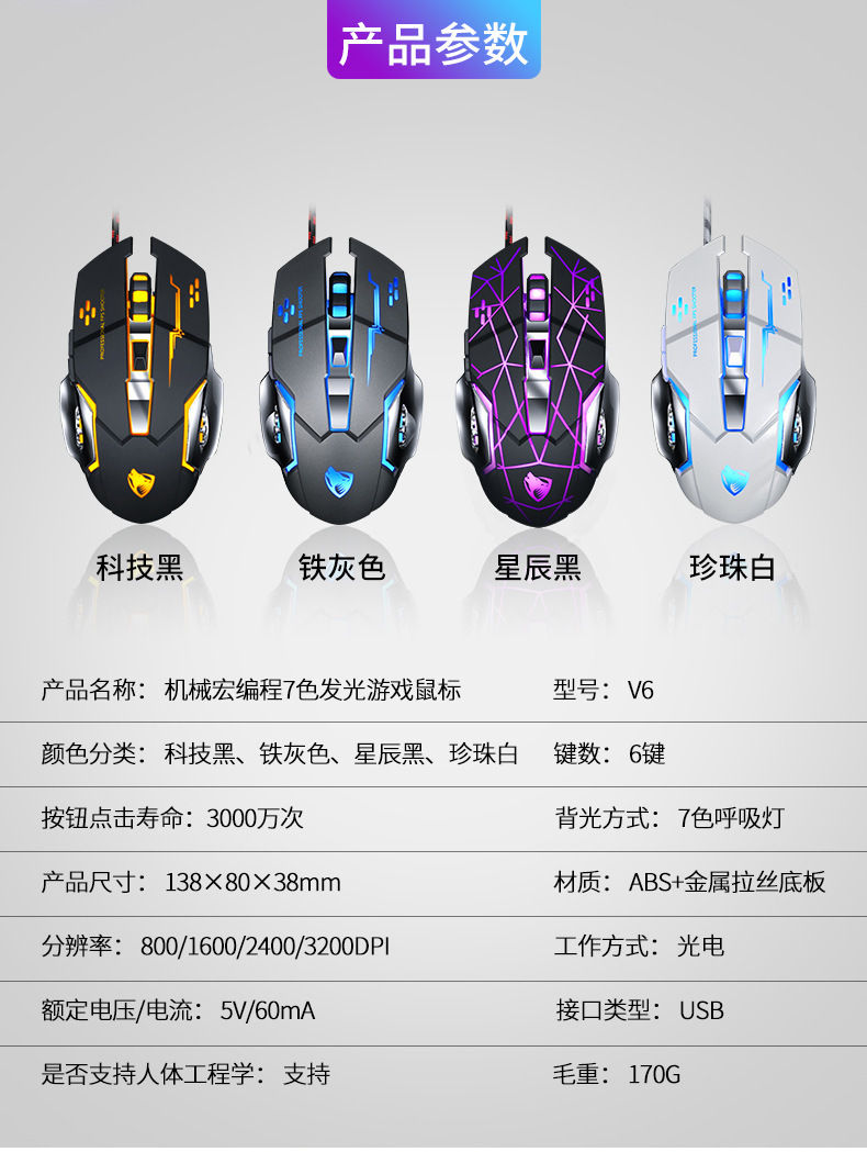 Механическая игровая мышь Cross-border Thunder Wolf V6, программирование макросов, мышь для киберспорта, пресс-пистолет Amazon, оптовая продажа