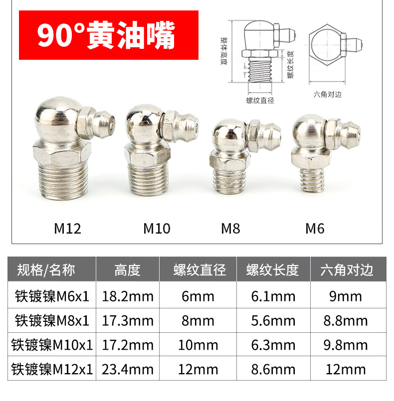Производитель оптом национальный стандарт железное никелированное масляное сопло M6M8M10 прямое изогнутое масляное сопло аксессуары для масляного пистолета масляное сопло смазочное сопло