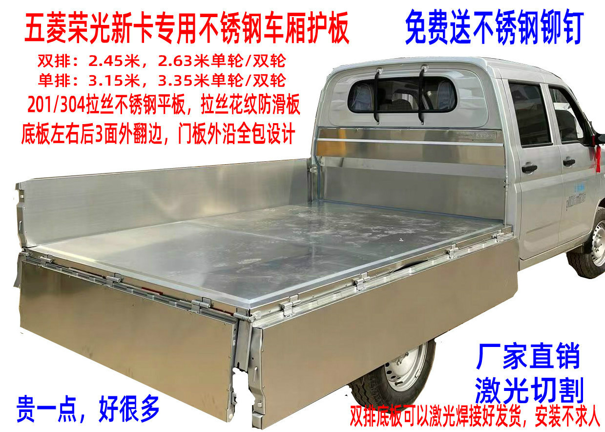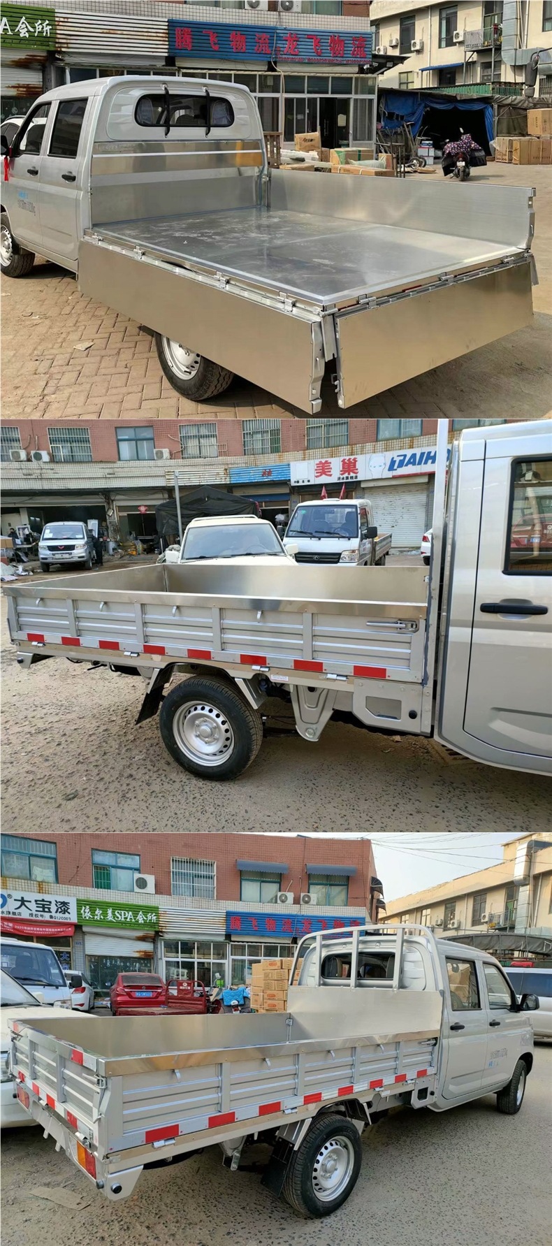 Новый грузовик Wuling Rongguang с двухрядной и одинарной стальной защитной решеткой, бортовой платформой из нержавеющей стали и грузовым кузовом из нержавеющей стали.