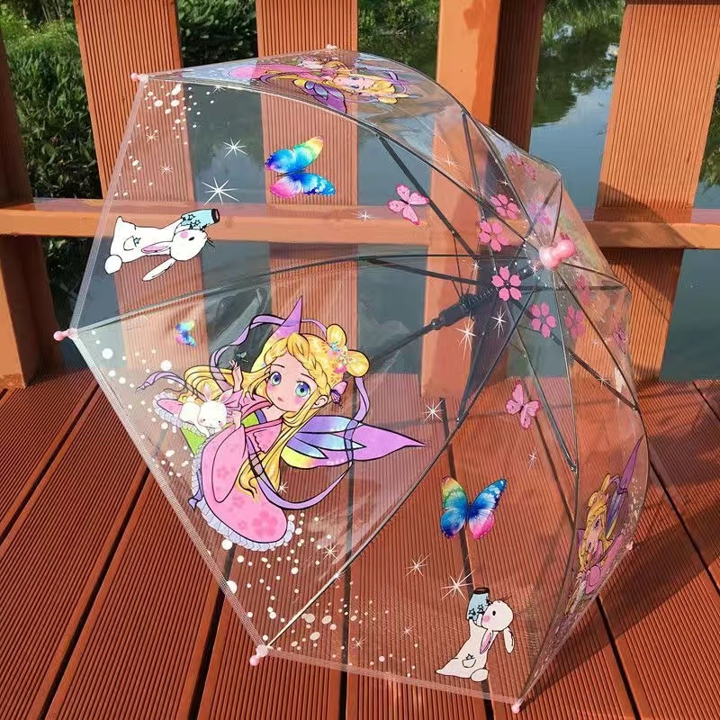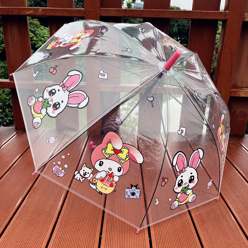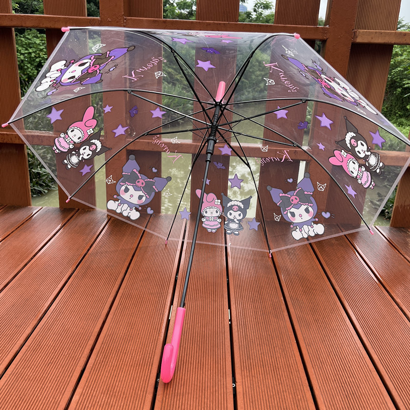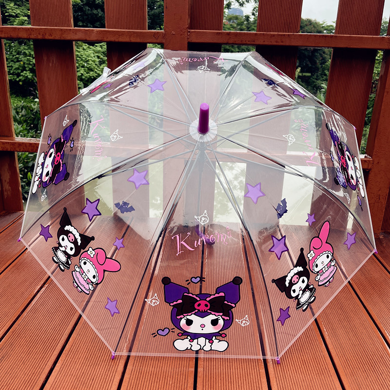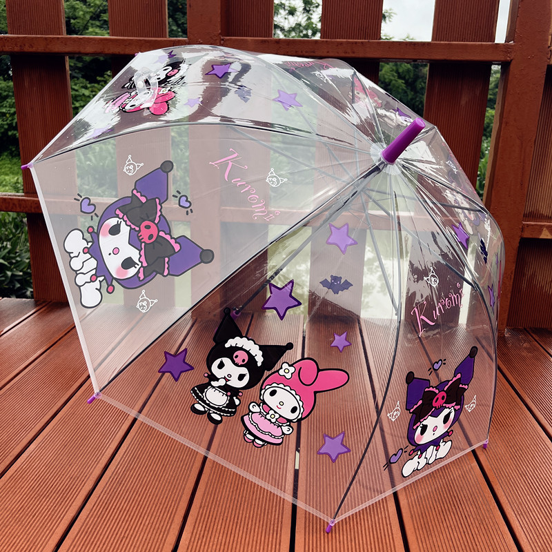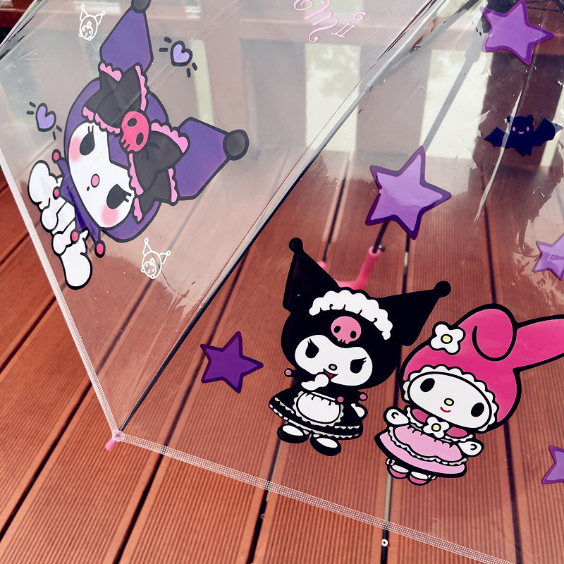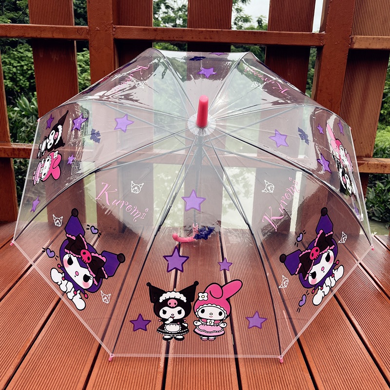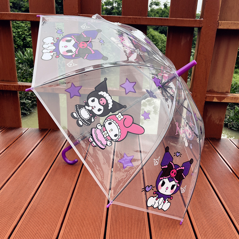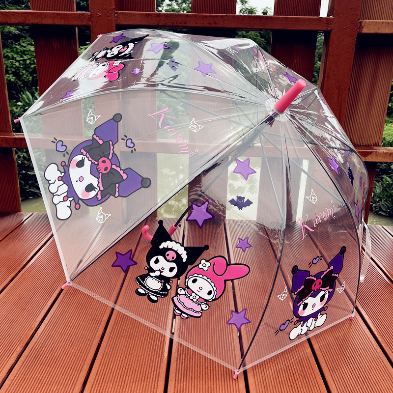 Прозрачный детский зонтик Kuromi, новый прочный автоматический детский зонтик принцессы для учащихся начальной школы, детского сада, пластиковый зонтик