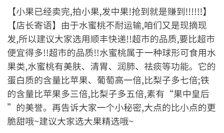 Вес нетто 2.5kg (доступная упаковка) маленькие фрукты; Вес нетто 2.5kg (выбранная упаковка) средние фрукты; Вес нетто 2.5kg (отборные крупные плоды); С коробкой 4.8-5kg выбранных крупных фруктов, высокая экономичность.; Коробка 4.8-5kg (отборные крупные плоды); В упаковке 4.8-5kg (выбранный пакет) Средние фрукты; С коробкой 4.8-5kg [Отобранные маленькие фрукты, будьте осторожны при фотографировании]; С коробкой 1.5kg [Нерентабельно] Слишком маленький; Коробка 0.5kg [100 г мелких фруктов]